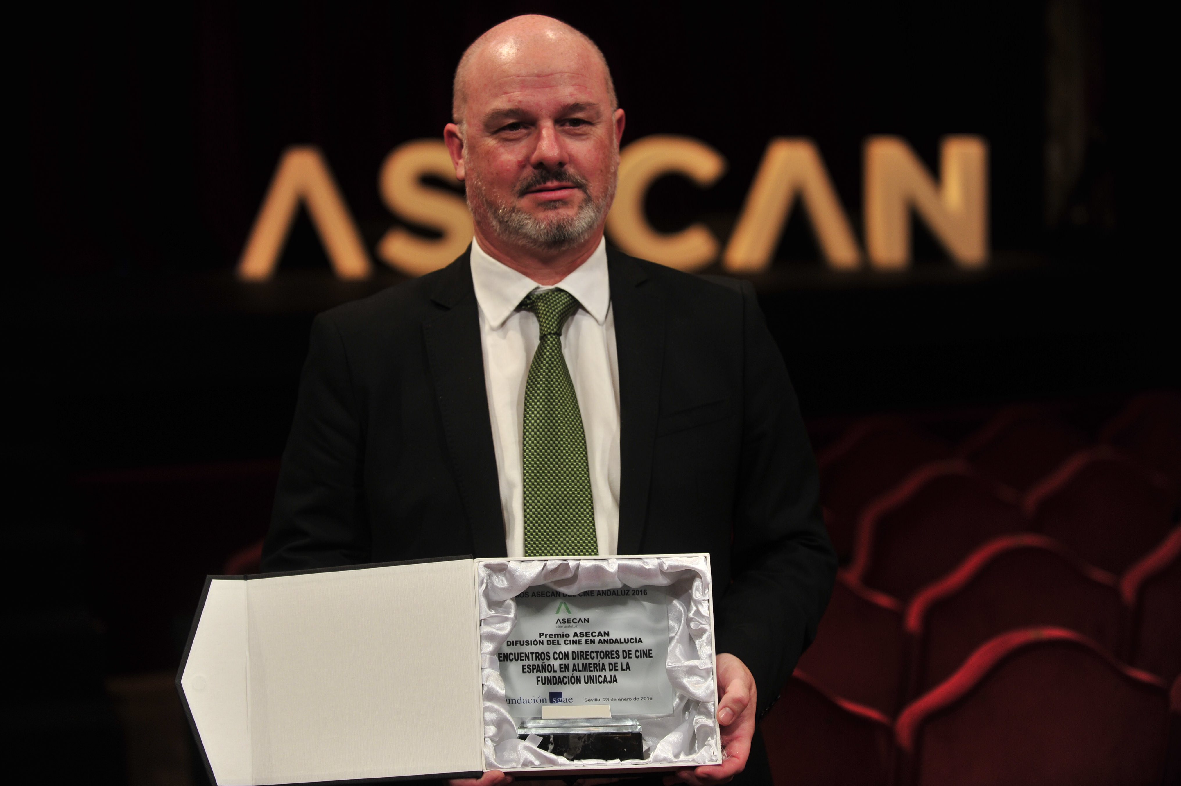 Unicaja ha sido galardonada en los Premios ASECAN del Cine Andaluz 2016 en la categoría a la Labor de Difusión por las jornadas “Encuentros con Directores de Cine”, una actividad que la Fundación Unicaja viene celebrando en Almería desde hace más de 15 años y que pretende acercar a los ciudadanos las últimas realizaciones del cine español y dar a conocer a los nuevos valores cinematográficos nacionales y andaluces. El Premio a la Fundación Unicaja le fue entregado el pasado sábado, en el Teatro Lope de Vega de Sevilla, durante la celebración de la Gala de entrega de los Premios ASECAN del Cine Andaluz 2016, galardones que además cuentan con la colaboración de Unicaja.
