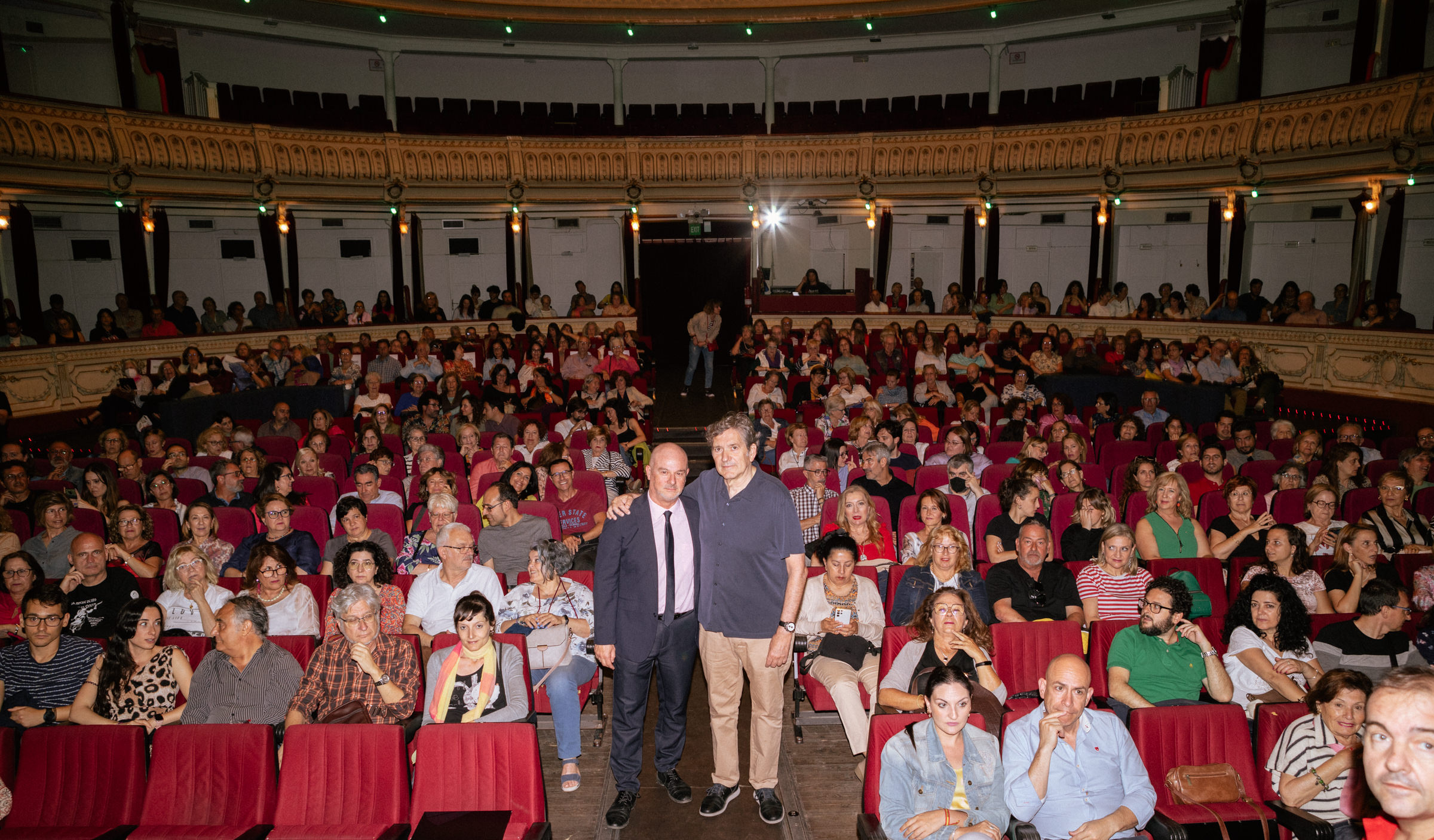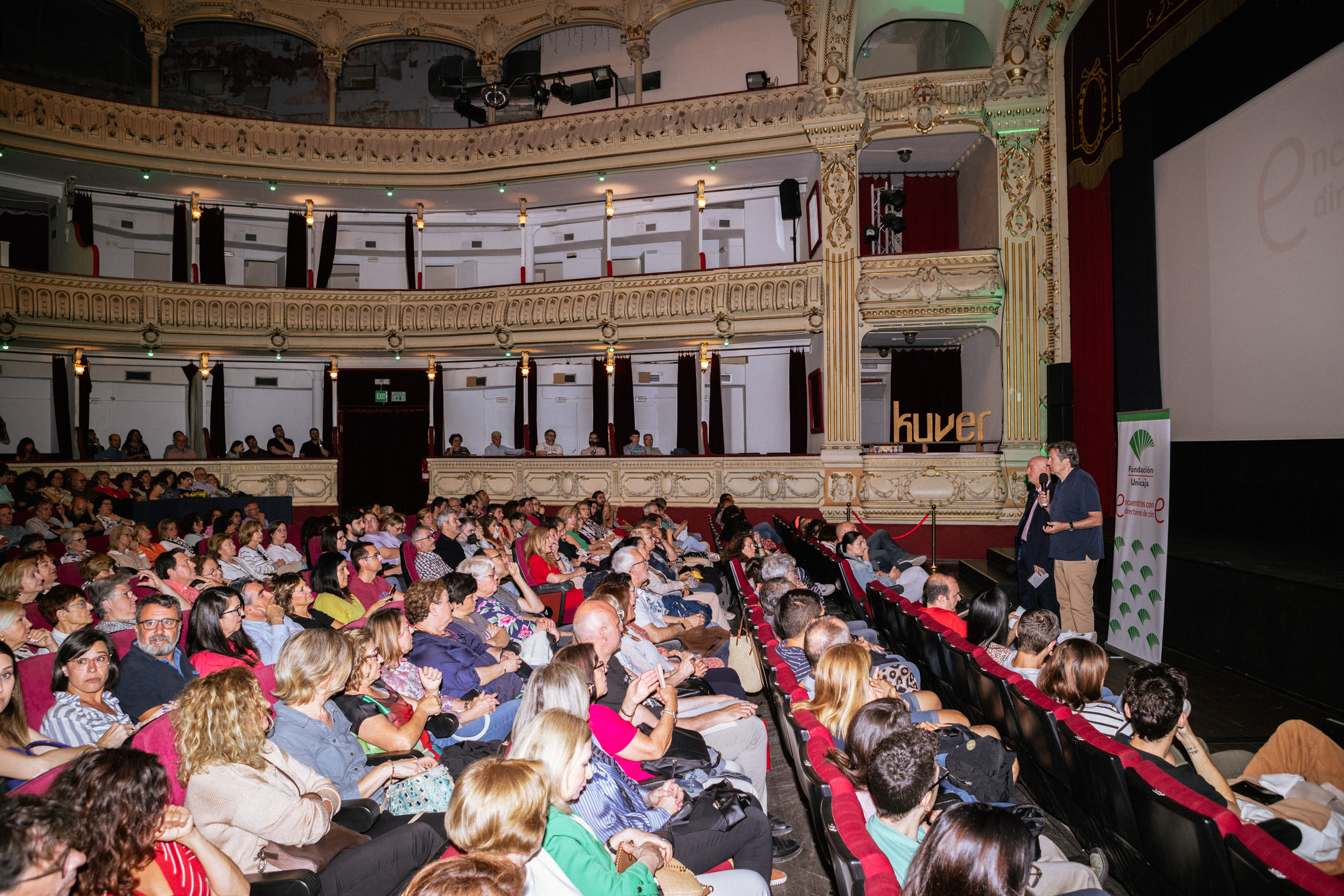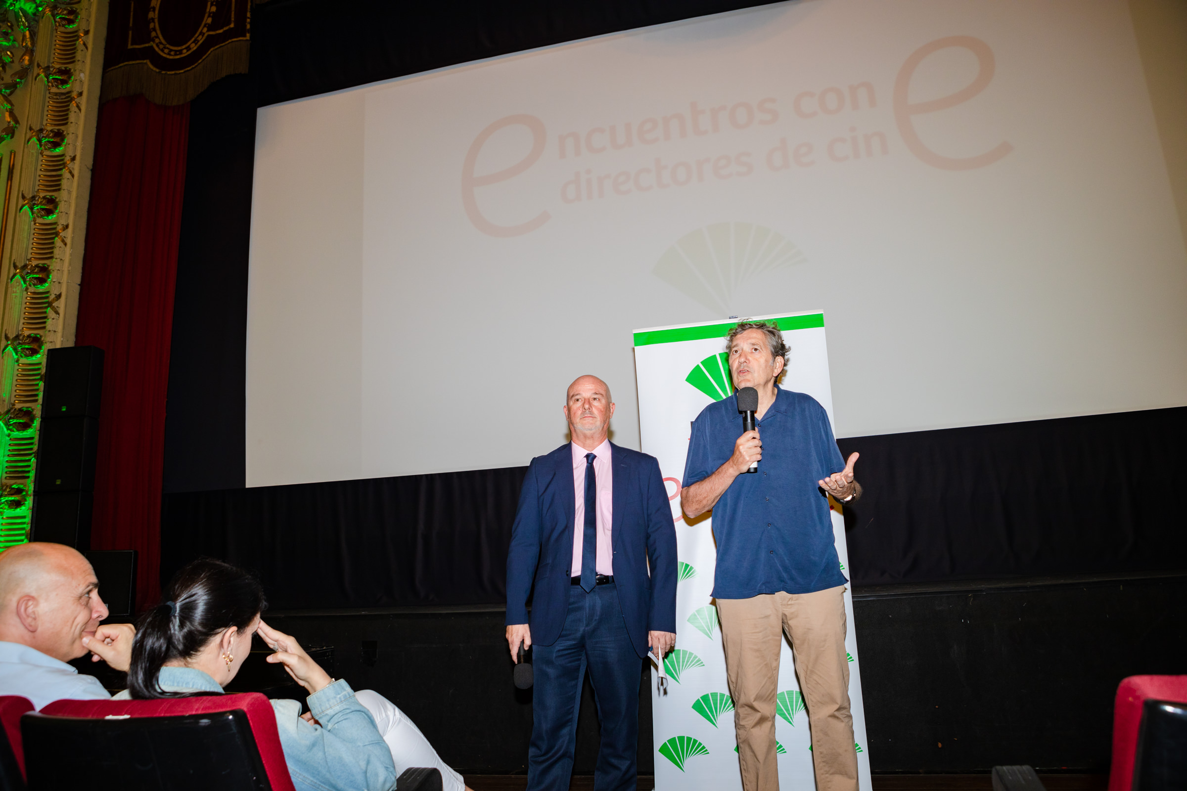 Fundación Unicaja organizó este lunes una nueva cita de su ciclo ‘Encuentros con directores de cine’ con la proyección y coloquio de la película ‘Bajo terapia’, de Gerardo Herrero. El responsable de Literatura de la Fundación Unicaja, Francisco Cañadas, y el patrono de Fundación Unicaja Ignacio Ortega asistieron a la proyección del filme en el Teatro Cervantes Almería, tras el cual se desarrolló un coloquio en el que el público tuvo la oportunidad de dialogar con el director sobre la película y su carrera cinematográfica.