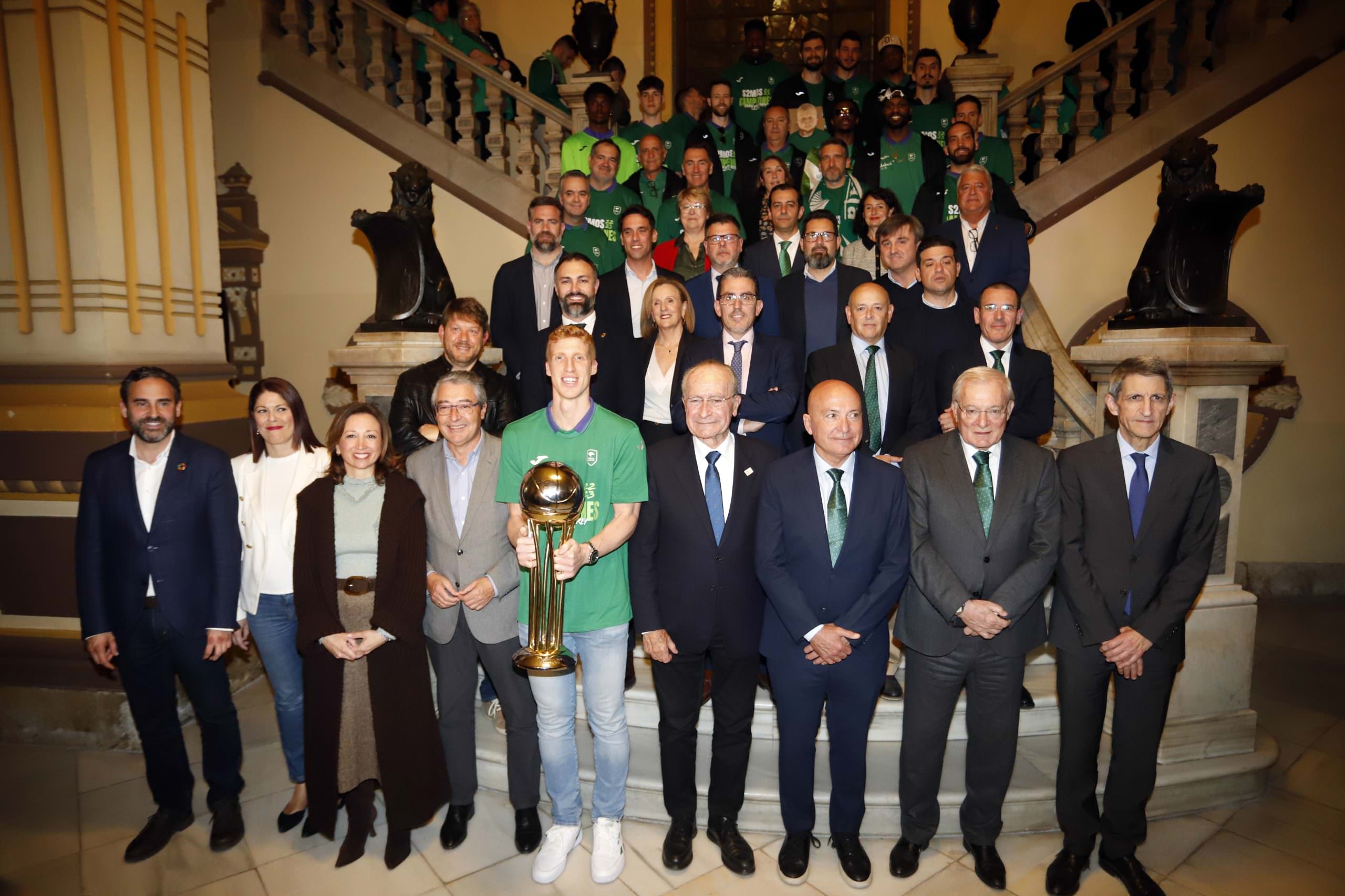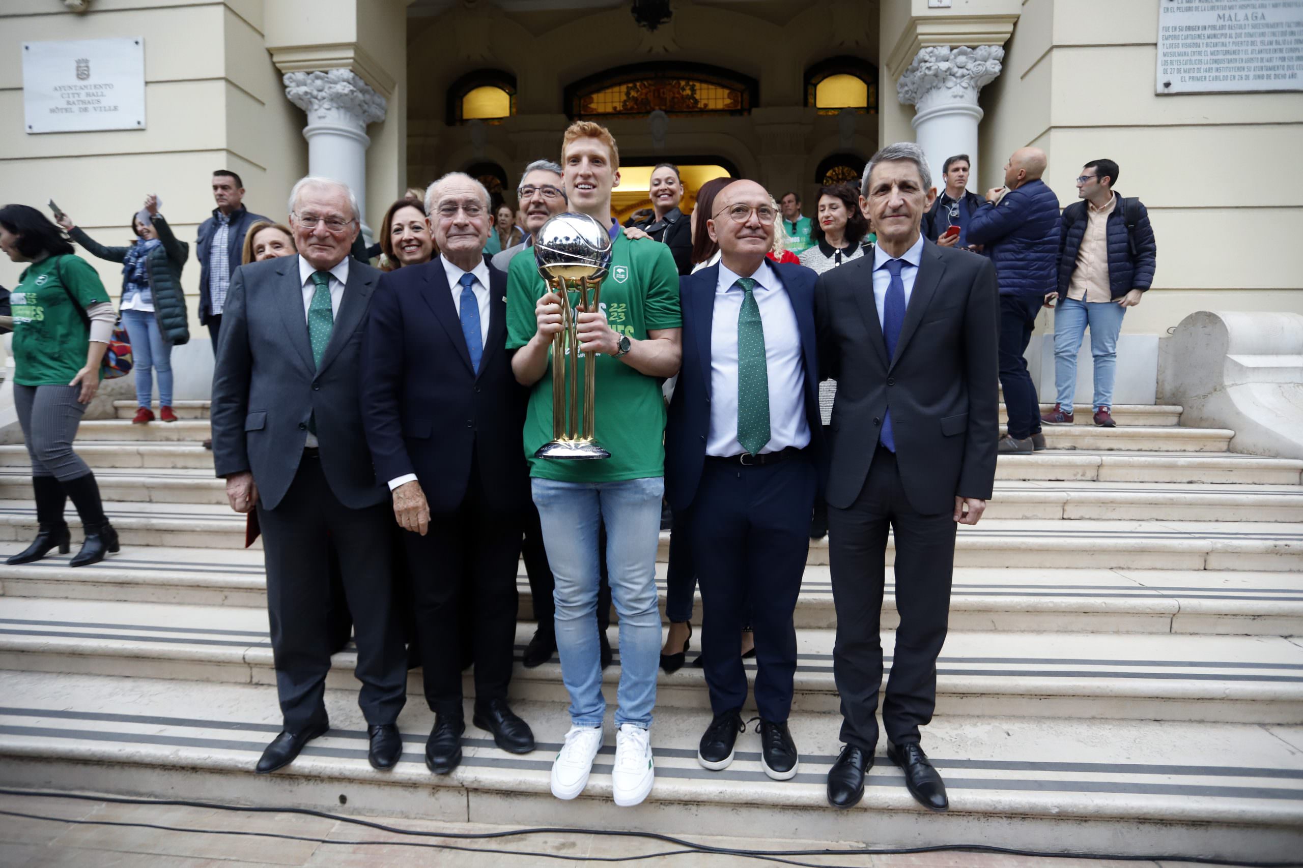 La siguiente parada fue el Ayuntamiento de Málaga, donde fueron recibidos por el alcalde de Málaga, Francisco de la Torre; el presidente de la Diputación, Francisco Salado, junto a directivos de Fundación Unicaja, Unicaja Banco y Unicaja Baloncesto, que dieron la enhorabuena al equipo cajista.