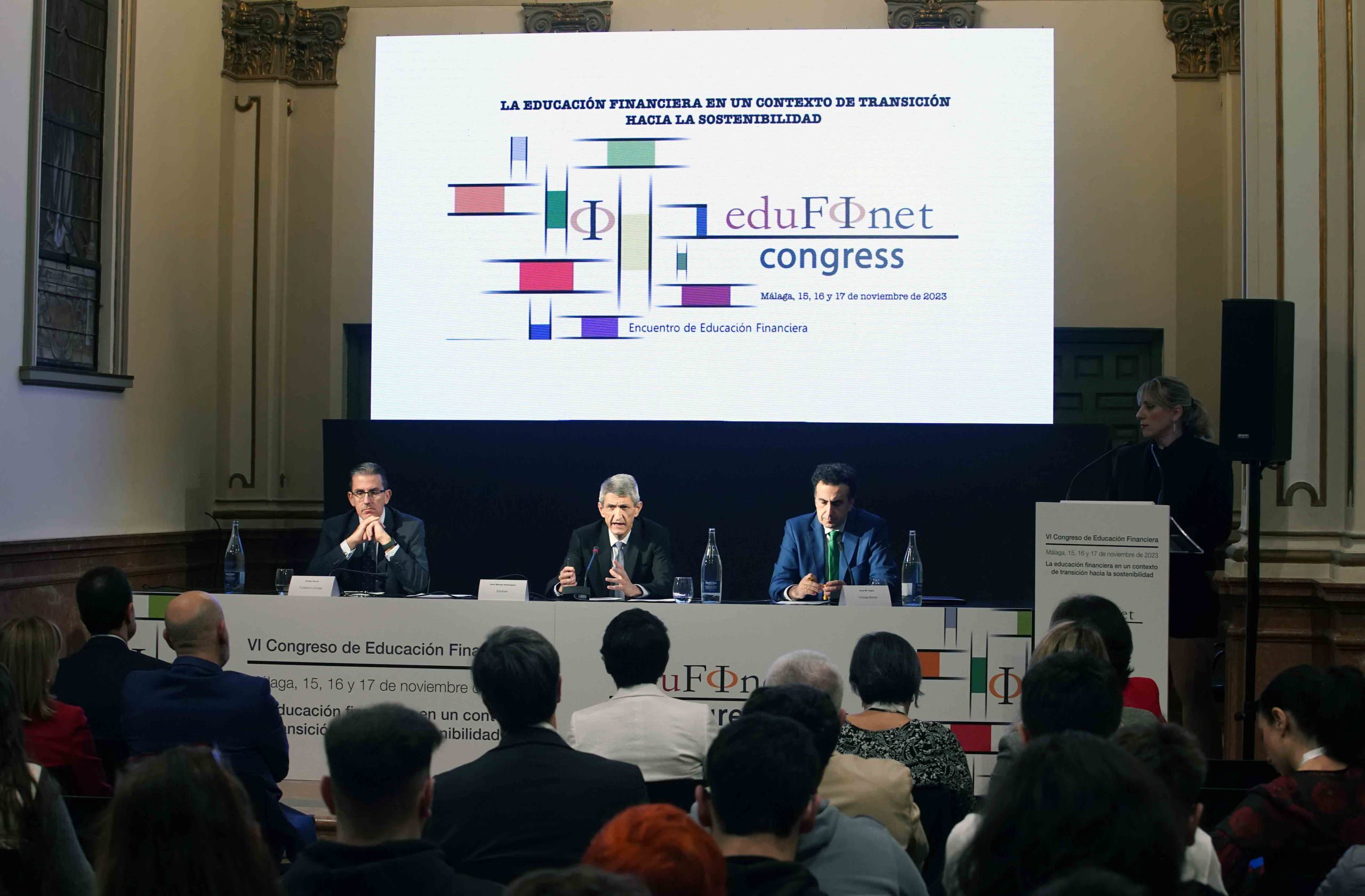Cerca de 40 expertos de diferentes disciplinas se dan cita desde este miércoles 15 de noviembre hasta el viernes 17 en el VI Congreso de Educación Financiera, organizado en Málaga por el Proyecto Edufinet de Unicaja y que tiene como eje central los retos a los que tiene que hacer frente esta disciplina en un contexto de transición hacia la sostenibilidad.