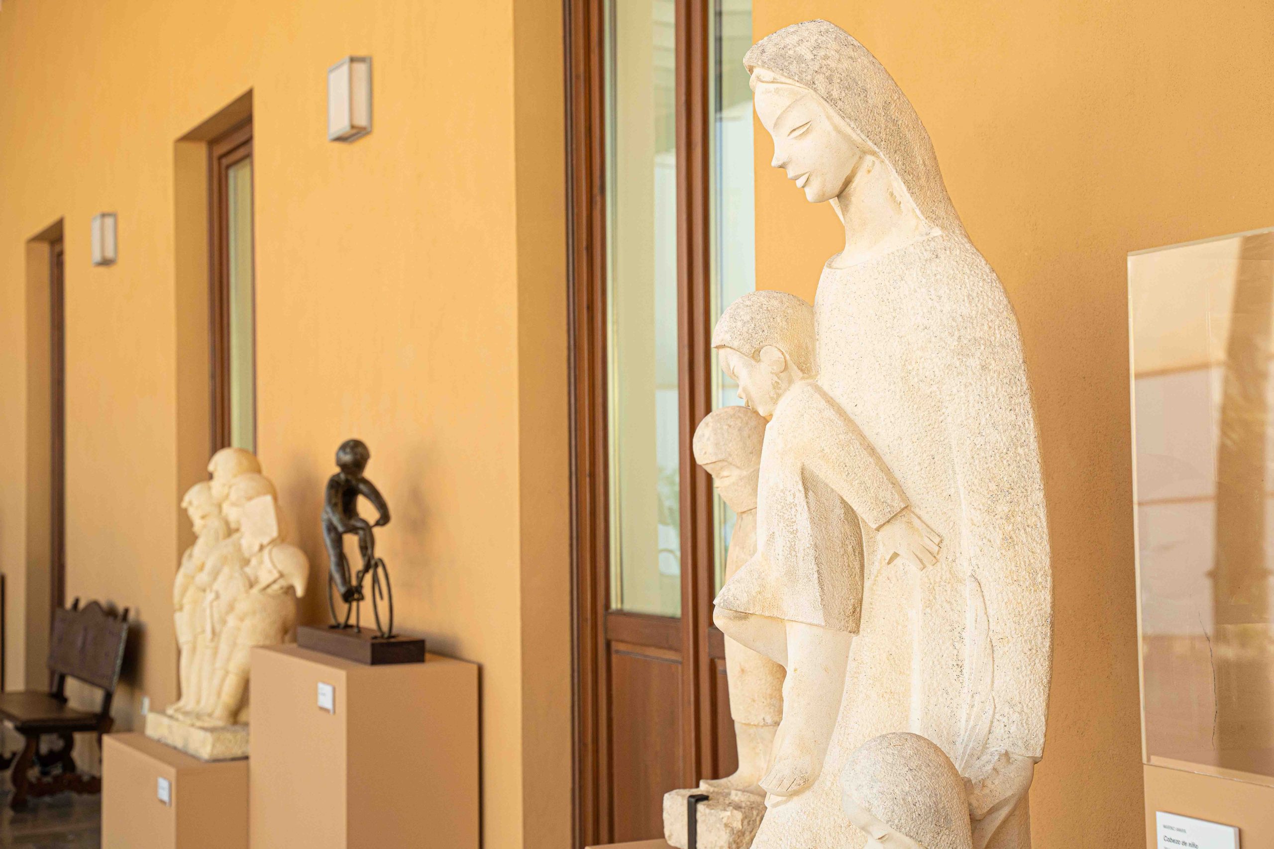 La exposición ‘El pastor que quiso ser escultor’ de Marino Amaya muestra una selección de 18 piezas, algunas de carácter religioso y de gran tamaño como La Inmaculada, y otras de grupos escultóricos como Niños jugando al corro o Niños jugando en un balancín. Obras pertenecientes en su totalidad a la colección de arte de la Fundación Unicaja, que han sido restauradas de forma integral para la ocasión y que representan, en muchos casos, las diferentes facetas de la vida infantil, en las que el autor articula escenas y figuras con las que busca evidenciar el amor por la vida, la familia y las cosas sencillas.