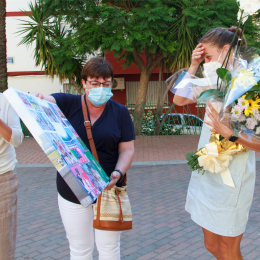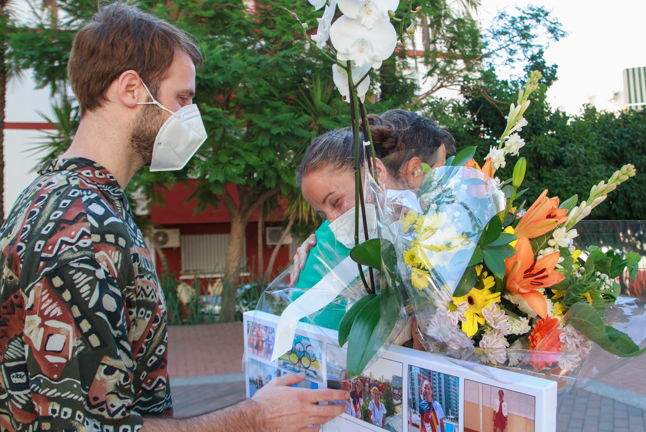 Romero fue agasajada este domingo por responsables del club y por sus compañeros, que quisieron darle un merecido homenaje tras su llegada de Tokio. La atleta recibió un ramo de flores y un collage de fotografías de su participación en los Juegos Olímpicos, y saludó feliz a los miembros de su club.