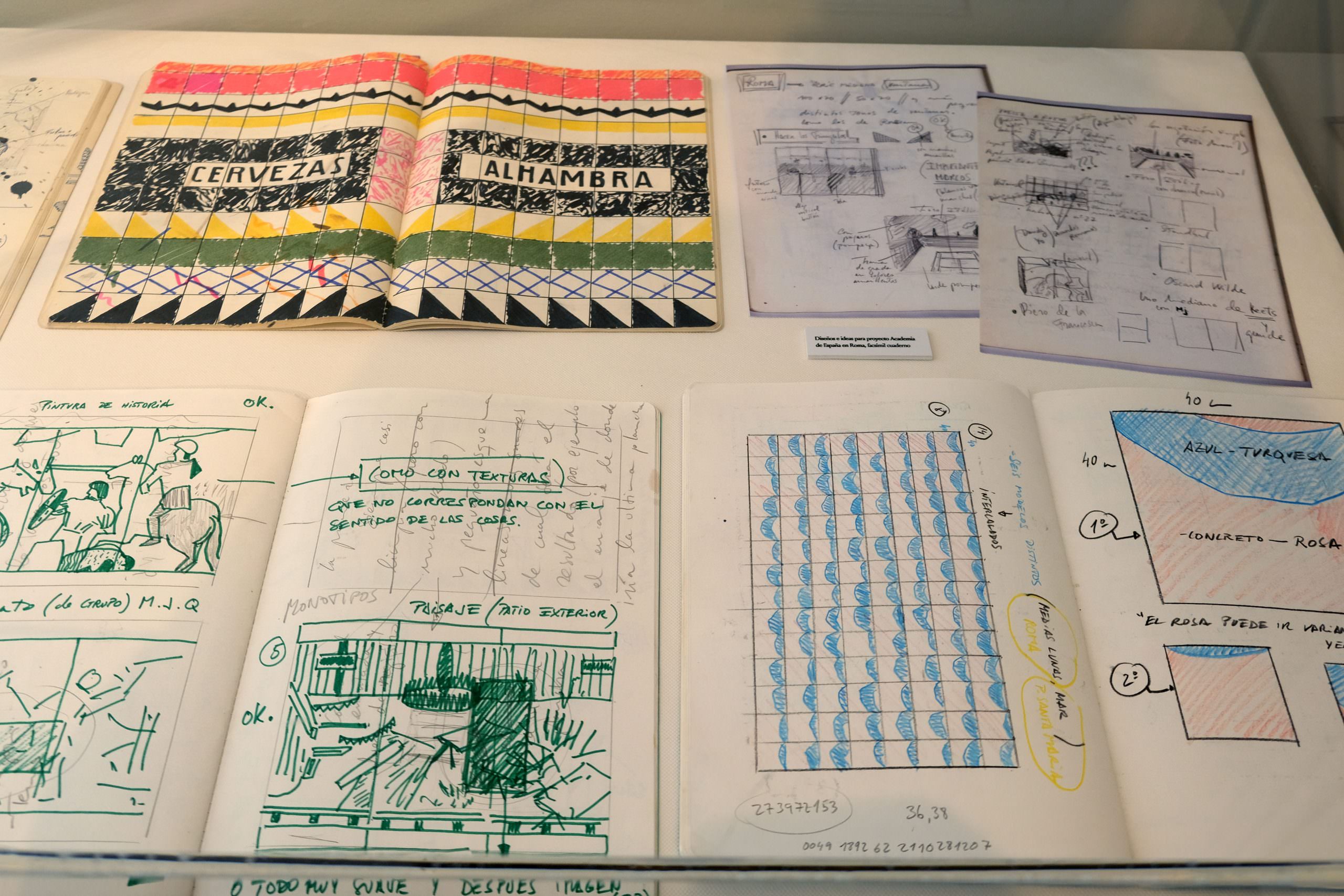 Además de mostrar piezas destacadas, la exposición indaga en su proceso creativo, enseñando por primera vez los cuadernos donde anota impresiones a modo de diario, dibuja ideas y esboza los futuros cuadros. Asimismo, se han recuperado de su estudio materiales inéditos, entre ellos papeles de gran formato o fotografías que ayudan a entender aspectos concretos de su progresión y modo de hacer.