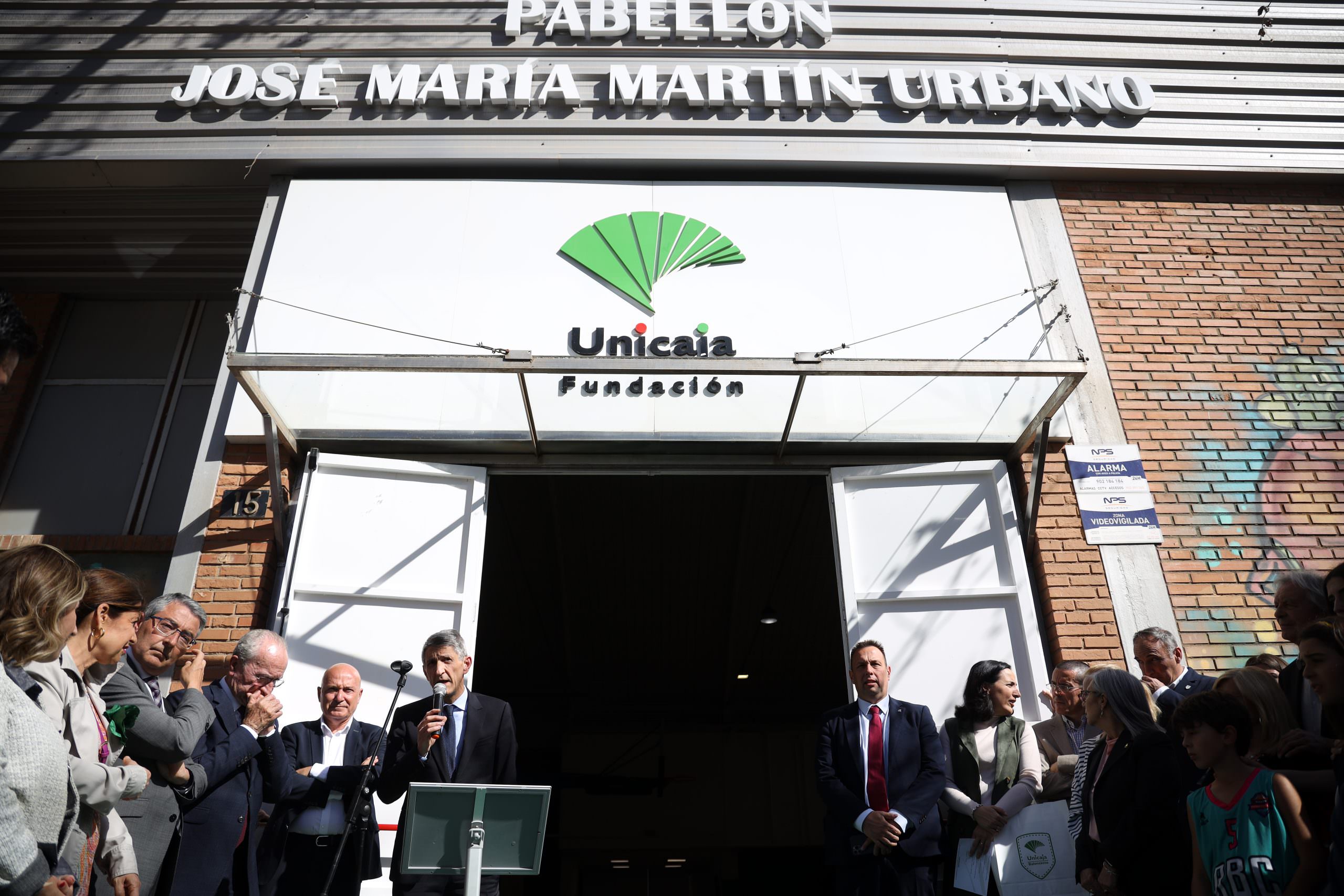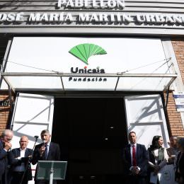 El presidente de la Fundación Bancaria Unicaja, José M. Domínguez, ha asistido este miércoles al acto de renombramiento del pabellón del complejo deportivo de Los Guindos de Málaga que, a partir de este 29 de marzo pasa a llamarse Pabellón ‘José María Martín Urbano’ en homenaje a esta figura clave del baloncesto malagueño y del club cajista que nos dejó el pasado octubre. En el acto estuvieron presentes la delegada de Turismo, Cultura y Deportes de la Junta de Andalucía en Málaga, Gemma del Corral; el alcalde de Málaga, Francisco de la Torre; la concejala de Cultura y Deporte del Ayuntamiento de Málaga, Noelia Losada; el presidente de la Diputación de Málaga, Francisco Salado; el presidente de Unicaja Baloncesto, Antonio Jesús López Nieto; el exjugador Rafa Pozo y Maribel Galindo, viuda de José María Martín Urbano.