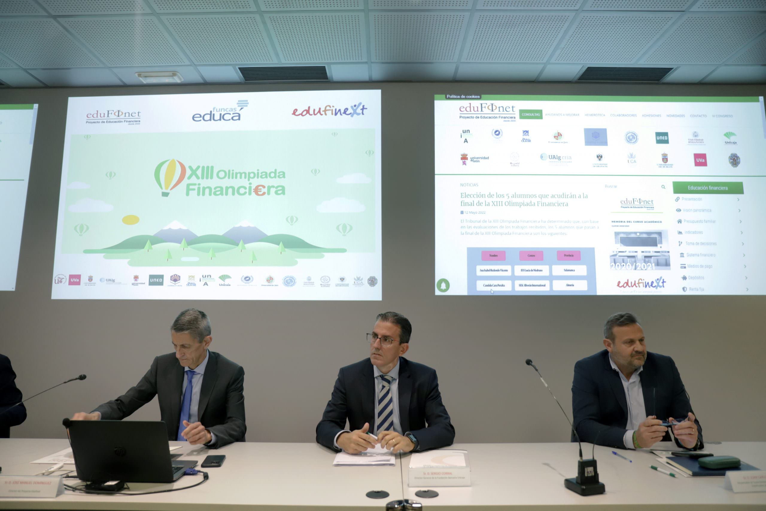 Por parte de las instituciones universitarias que colaboran con Edufinet, han formado parte también del jurado José Antonio Jurado Martín, Vicedecano de Ordenación Académica, Estudiantes y Asuntos Económicos de la Facultad de Ciencias Empresariales y Turismo de la Universidad de Huelva; Raúl Mata, Director de Secretariado de Empleabilidad y Emprendimiento del Alumnado en la Universidad de Jaén; Beatriz Rodríguez, Vicedecana de Relaciones Internacionales de la Facultad de Ciencias Económicas y Empresariales de la Universidad de Málaga; Luis Alberto Rivas, Decano de la Facultad de Ciencias del Seguro, Jurídica y de la Empresa de la Universidad Pontificia de Salamanca, e Ignacio Contreras, Profesor de la Universidad de Sevilla.