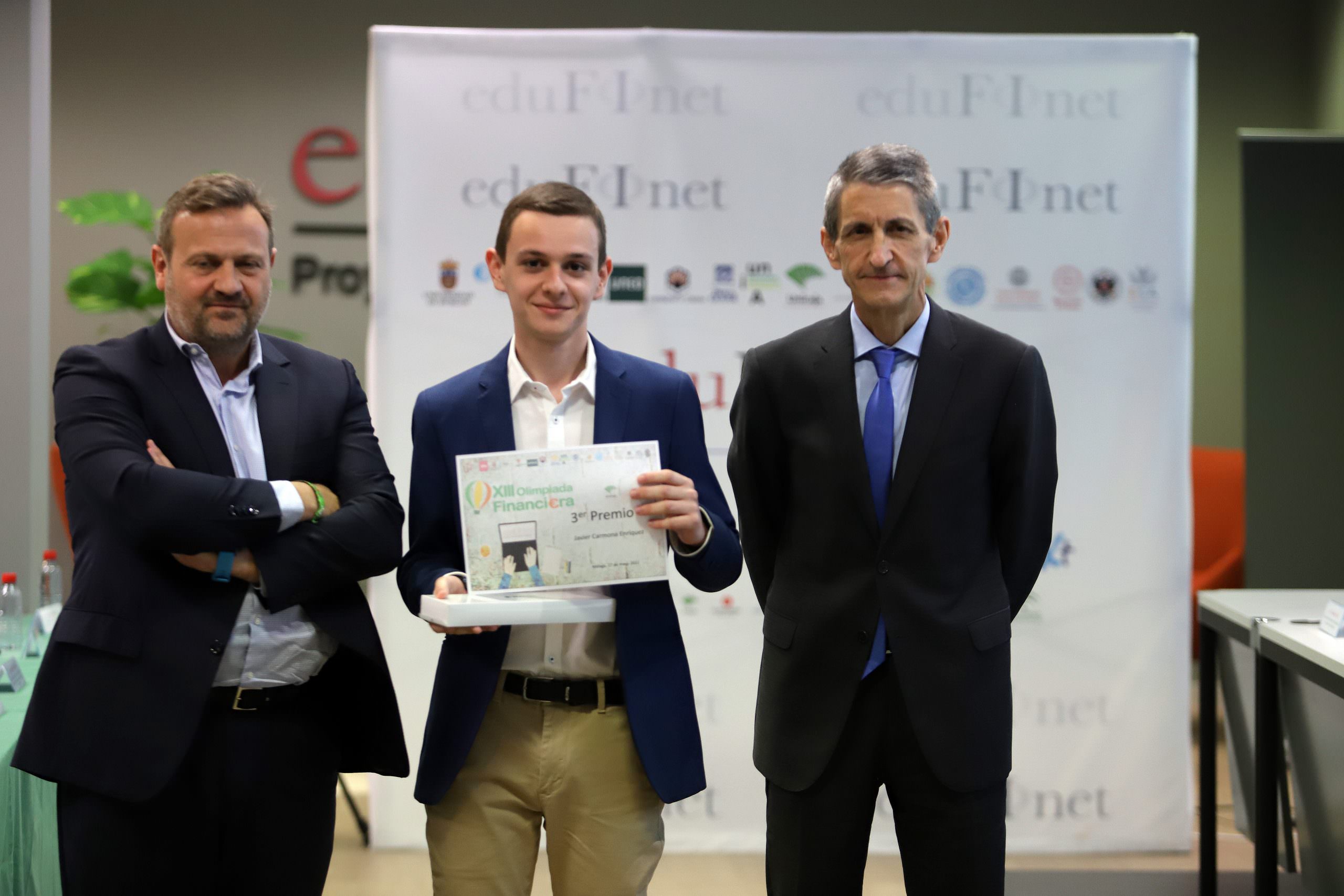 Los cinco finalistas de la XIII Olimpiada Financiera, concurso que contó inicialmente con 373 inscritos, han presentado hoy ante el jurado las conclusiones de sus trabajos. Los ganadores son Rebeca Guerrero García, del IES Severo Ochoa de Granada, que ha quedado en primer lugar; Pablo Sánchez Jerez, del IES Padre Manjón de Granada, en segundo puesto, y Javier Carmona Enríquez, del IES Azahar de Sevilla, en tercero.