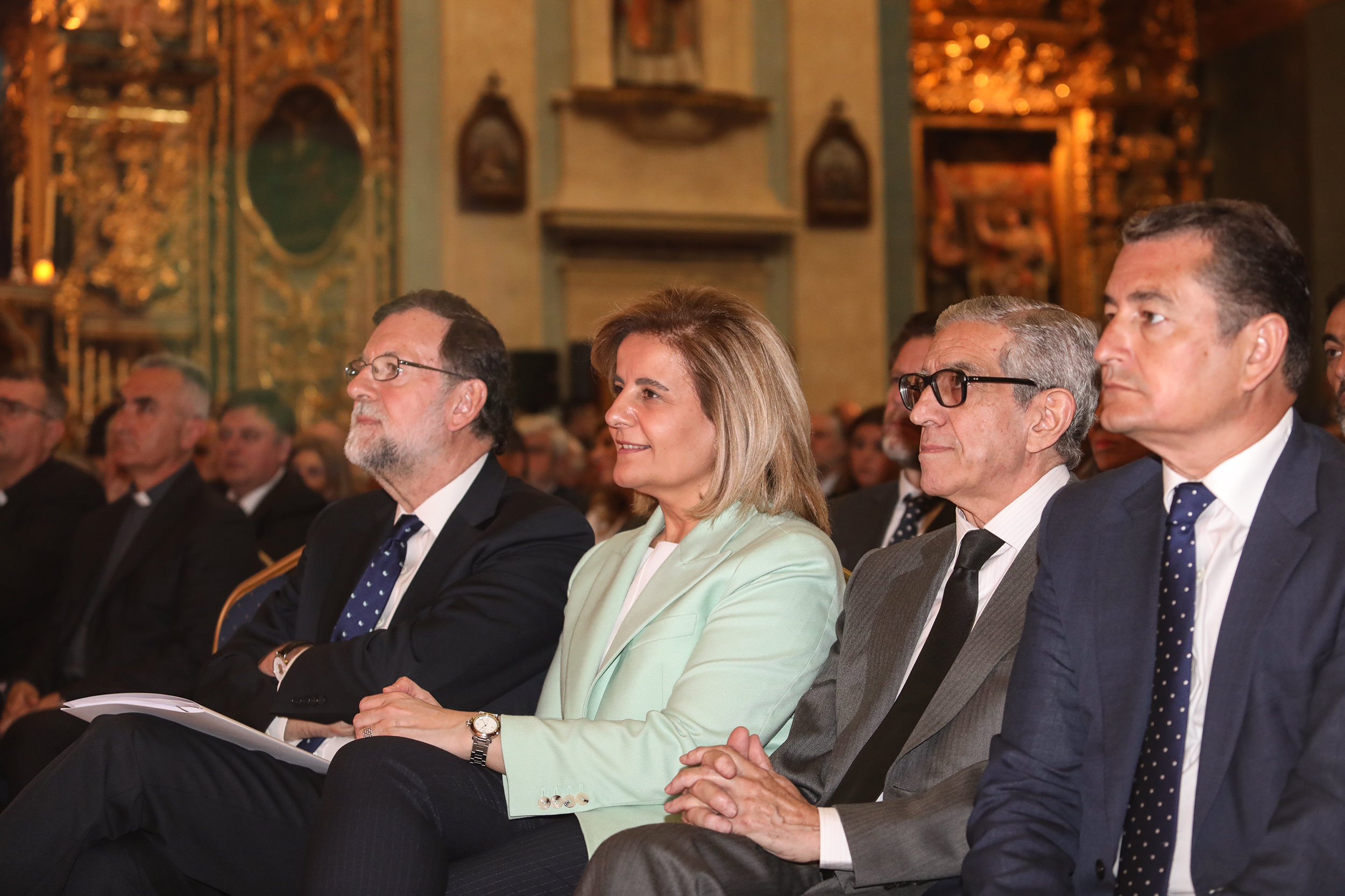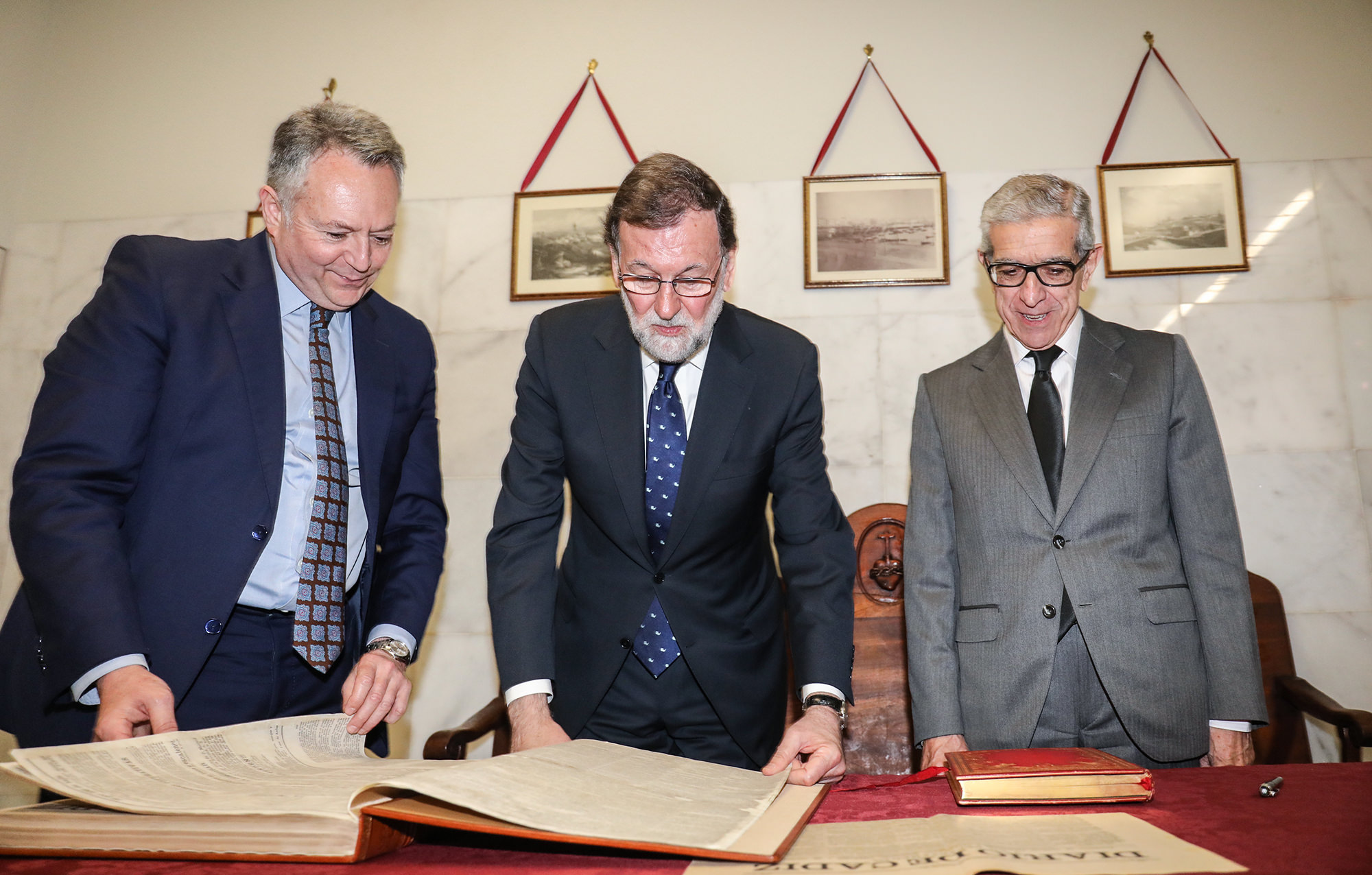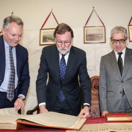 Al finalizar el acto, tanto Mariano Rajoy como el resto de autoridades públicas, acompañadas del presidente de Fundación Unicaja, Braulio Medel, han asistido a la sacristía del templo para firmar el libro conmemorativo de Diario de Cádiz, el decano de la prensa española, fundado en 1867.