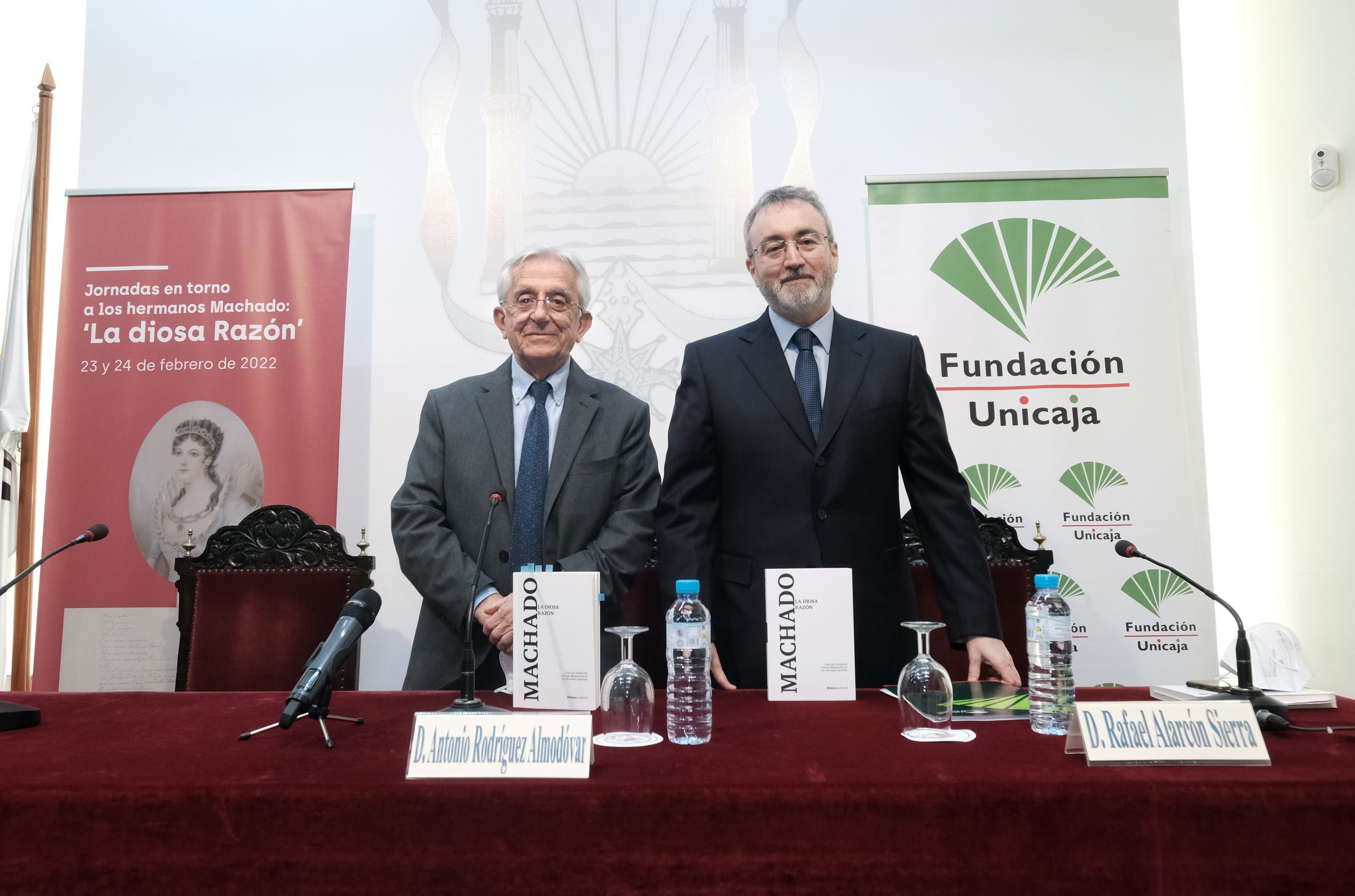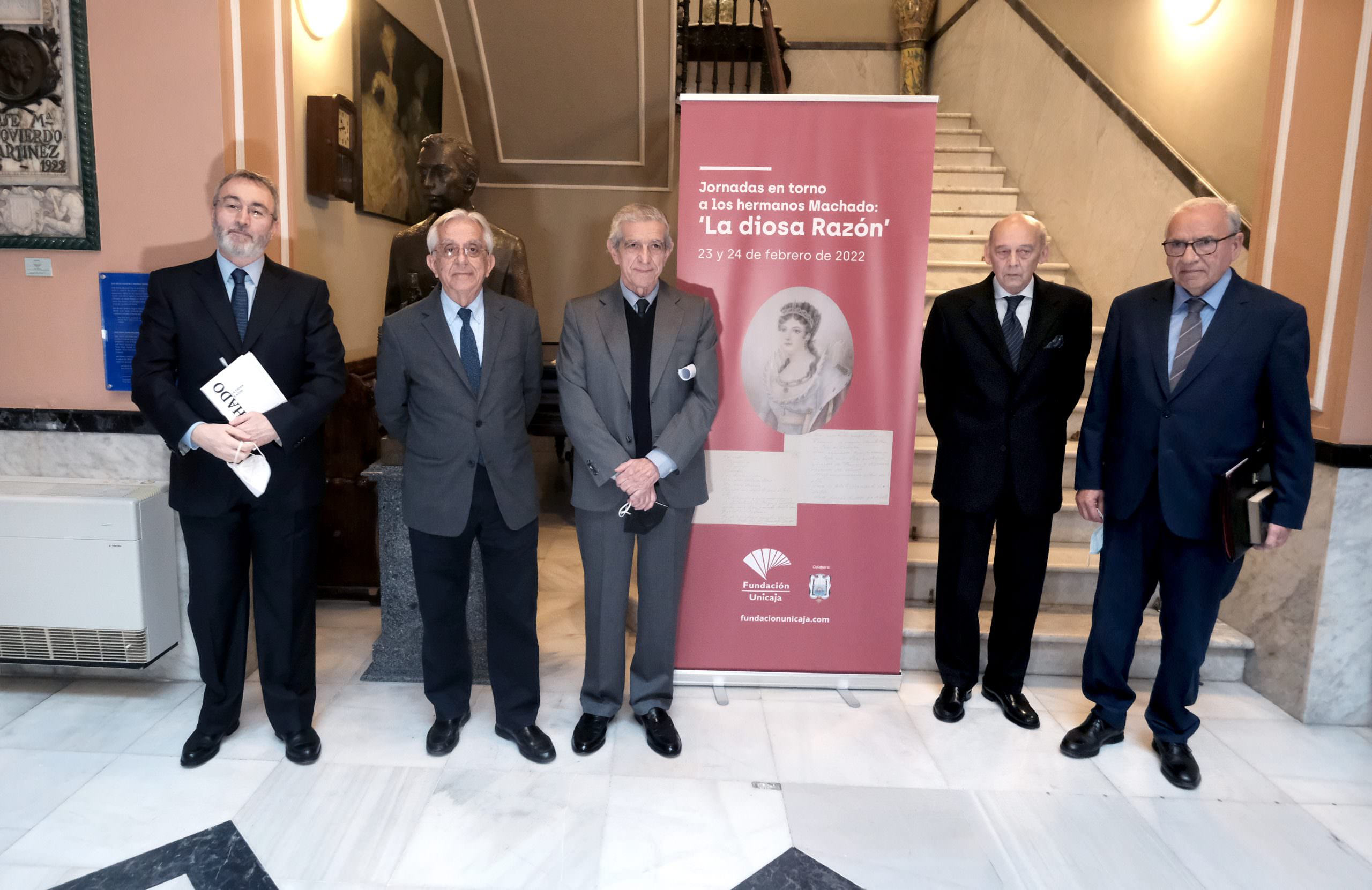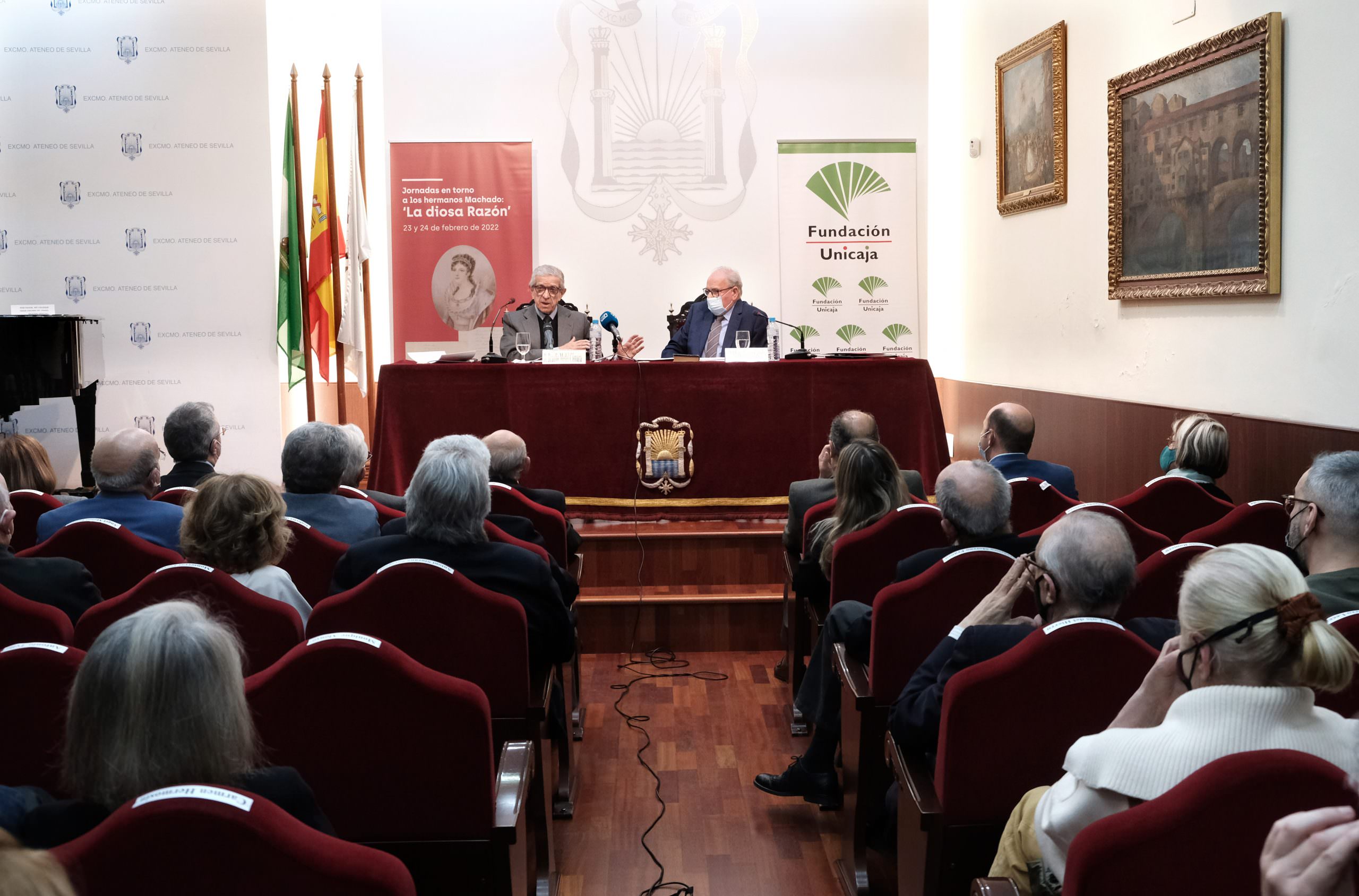 Fundación Unicaja organiza unas jornadas de divulgación literaria dedicadas a la vida y obra de los hermanos Machado, que se han inaugurado hoy en el Excelentísimo Ateneo de Sevilla y continuarán mañana con su segunda sesión. Estos encuentros están centrados en la obra de teatro inédita La diosa Razón, con edición de Antonio Rodríguez Almodóvar y Rafael Alarcón Sierra, recuperada a partir de los manuscritos del fondo machadiano de la Fundación Unicaja, y publicada recientemente por Alianza Editorial.
