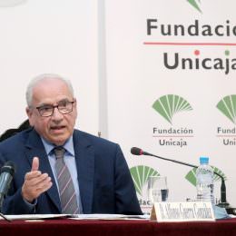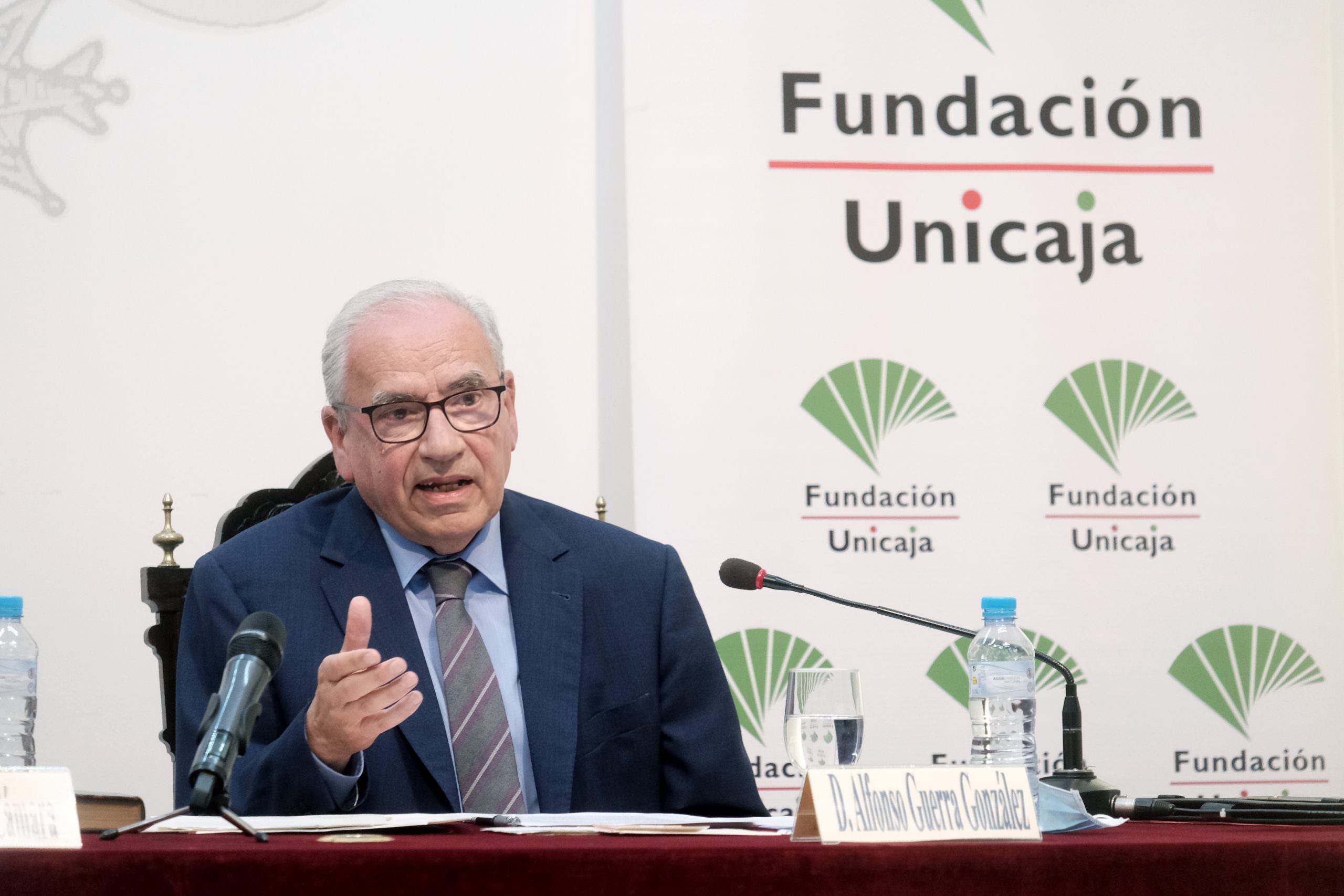 Las jornadas han comenzado esta tarde con la conferencia inaugural a cargo del exvicepresidente del Gobierno Alfonso Guerra, que ha sido presentada por el presidente de la Fundación Unicaja, Braulio Medel.