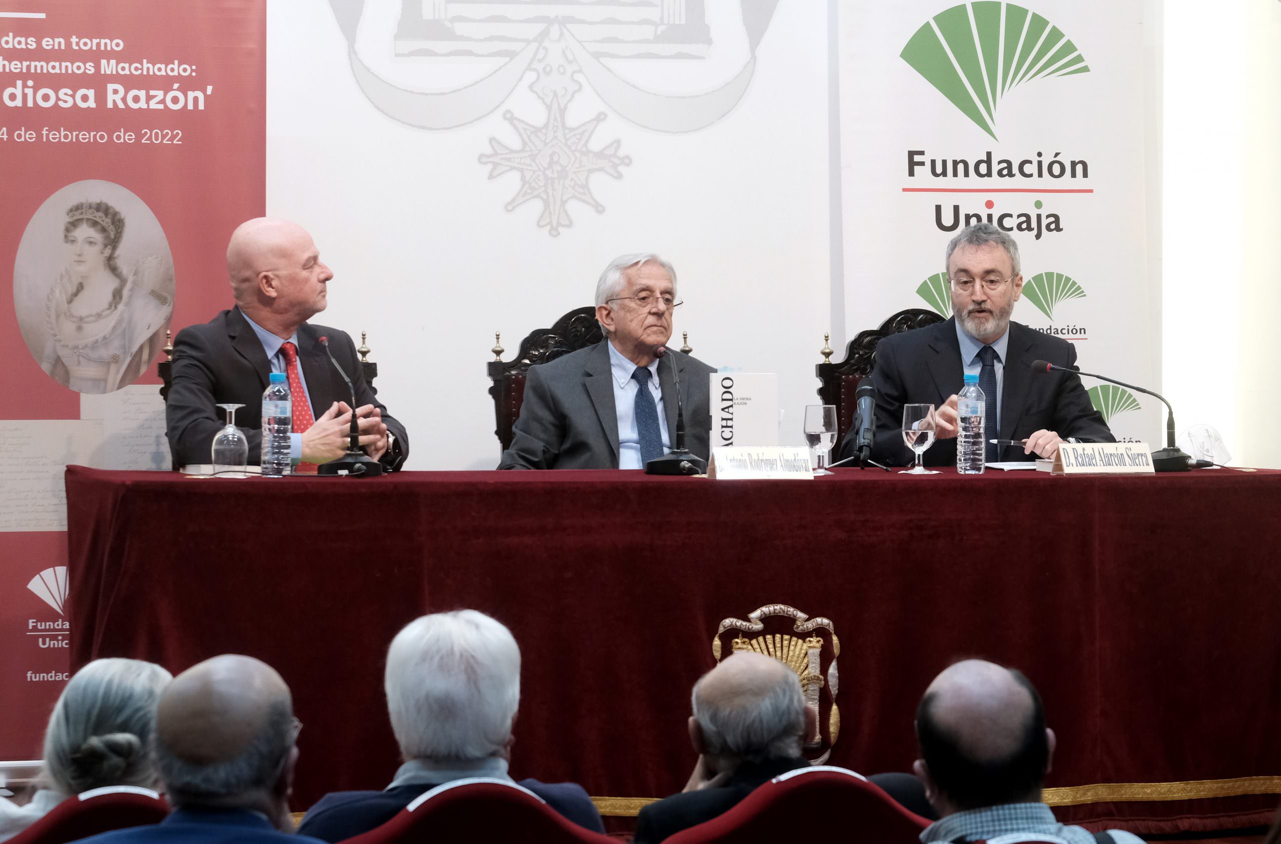 A esta ponencia inaugural le ha seguido un coloquio con el profesor de la Universidad de Jaén Rafael Alarcón Sierra y el filólogo Antonio Rodríguez Almodóvar, bajo el título ‘La última obra teatral de los hermanos Machado: reparación y edición’. En esta charla ambos han comentado el trabajo de investigación sobre más de setecientos documentos manuscritos que llevaron a cabo durante dos años y que dio como fruto la edición de un texto que se creía perdido.