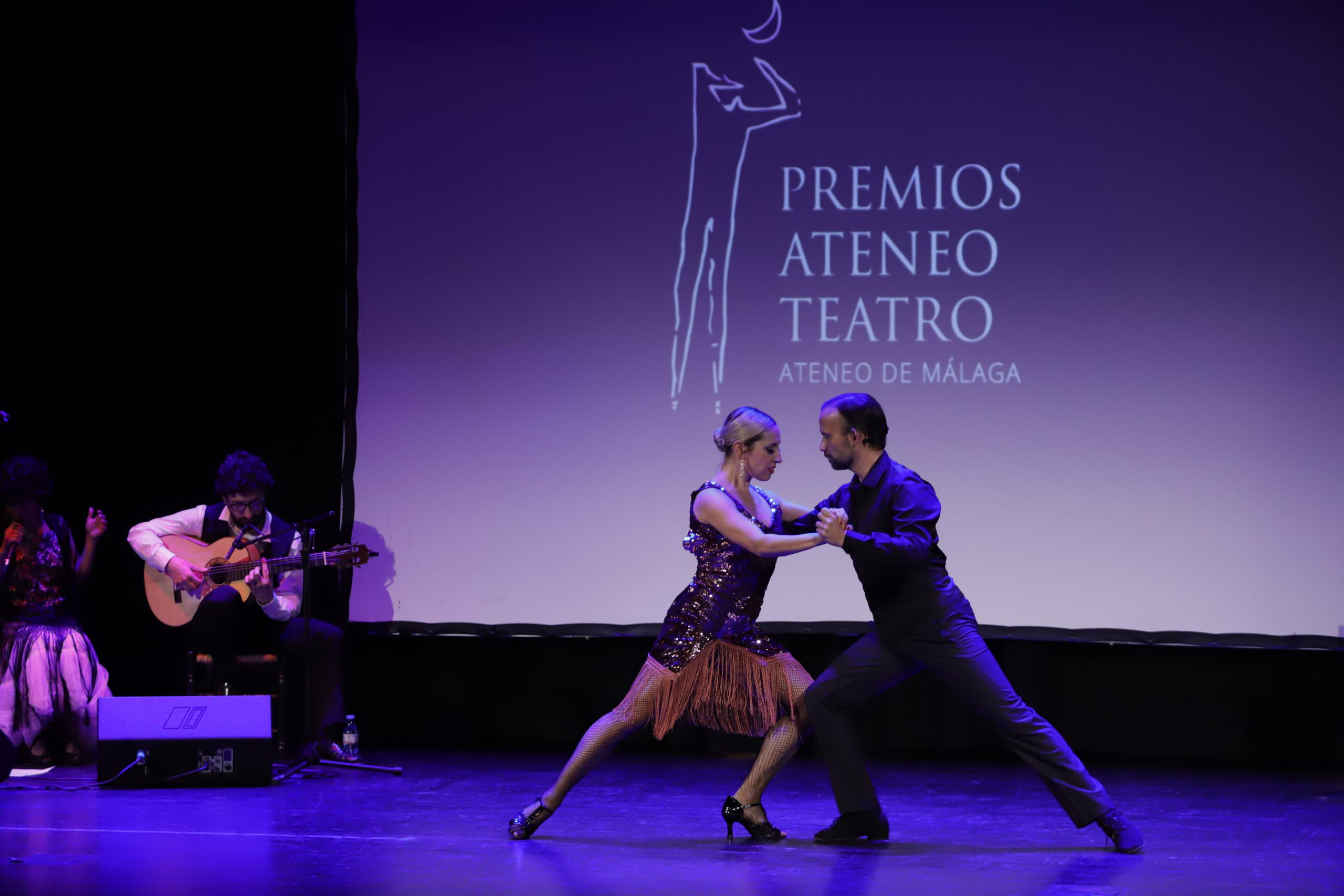 El Ateneo de Málaga entregó ayer sus VI Premios de Teatro en una gala celebrada en el Centro Cultural María Victoria Atencia de la Diputación de Málaga, que contó con diversas actuaciones y guiños al talento escénico local. La responsable de Artes Escénicas y Espacios Culturales de la Fundación Unicaja, Gema Domínguez, participó en la gala entregando el premio al mejor diseño de iluminación, que fue para Azael Ferrer.