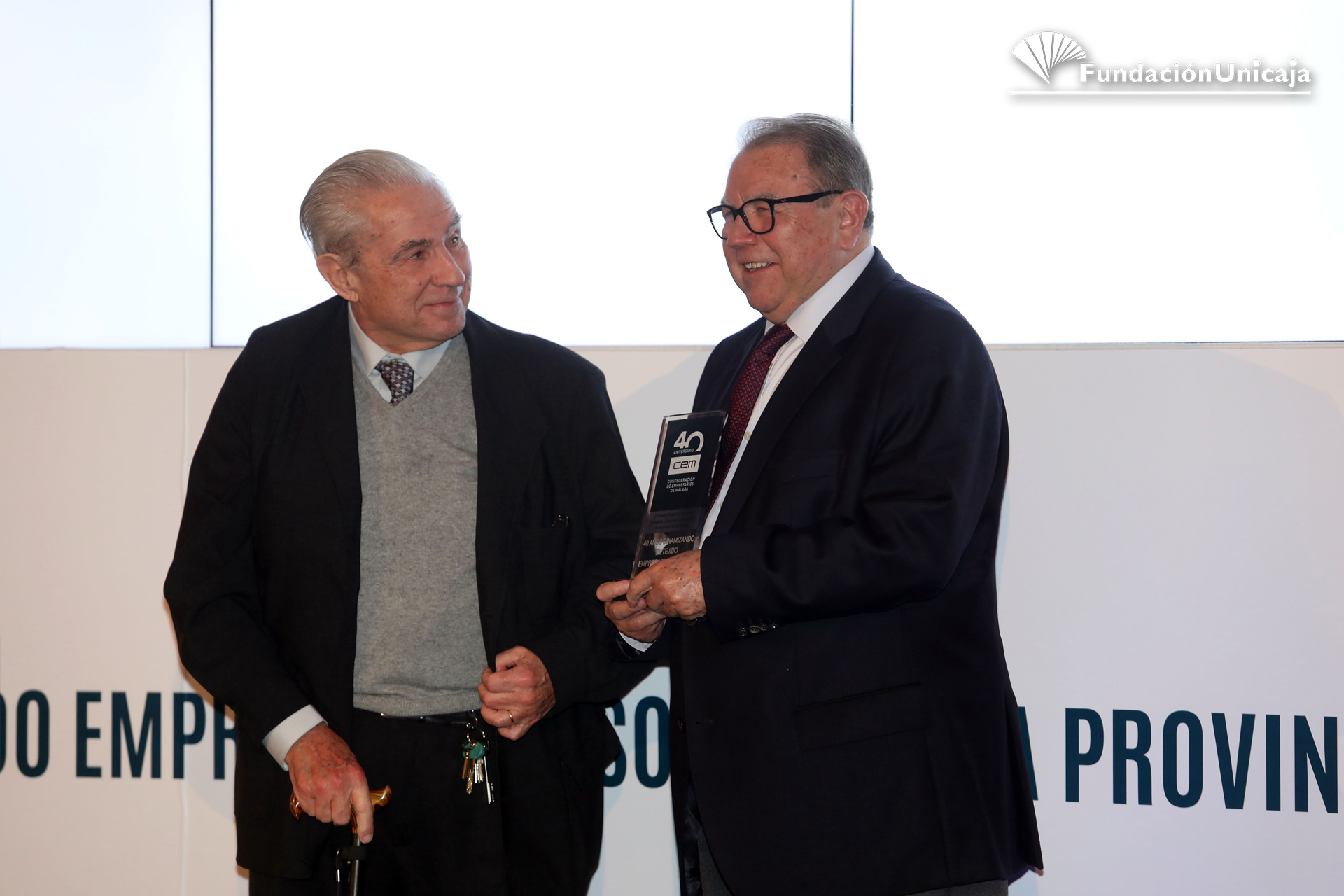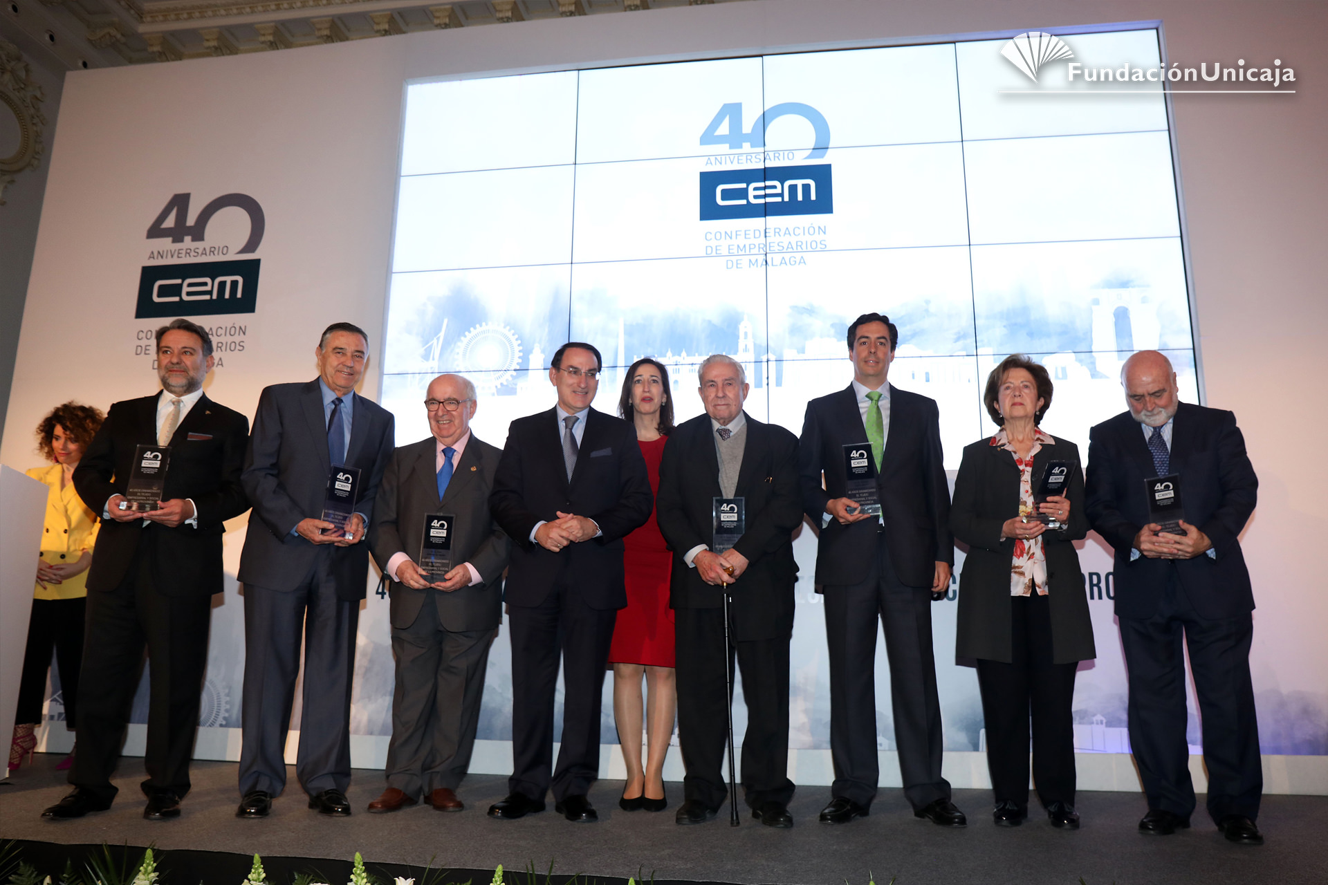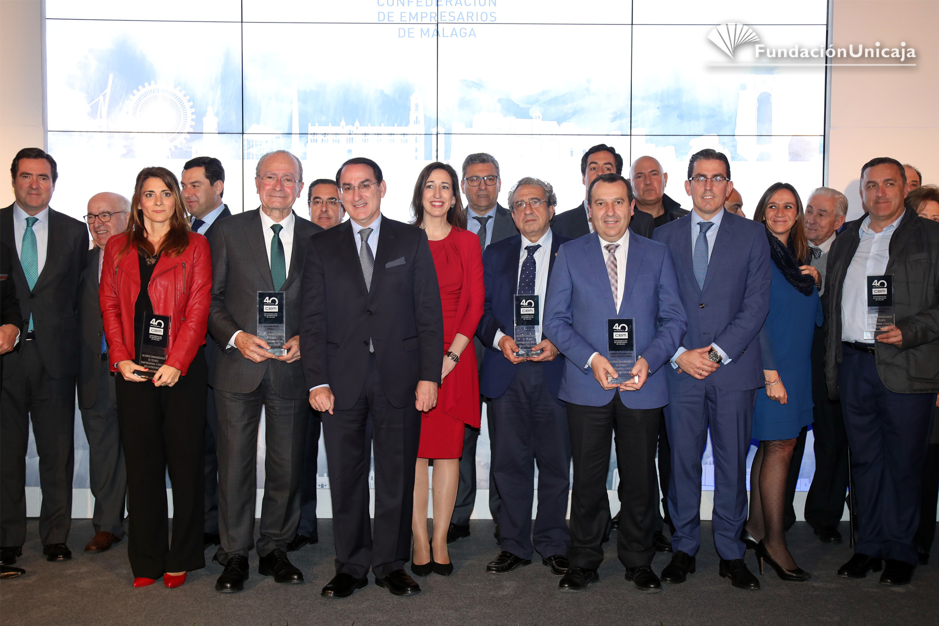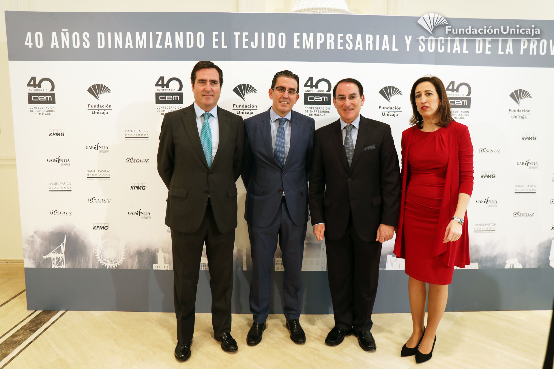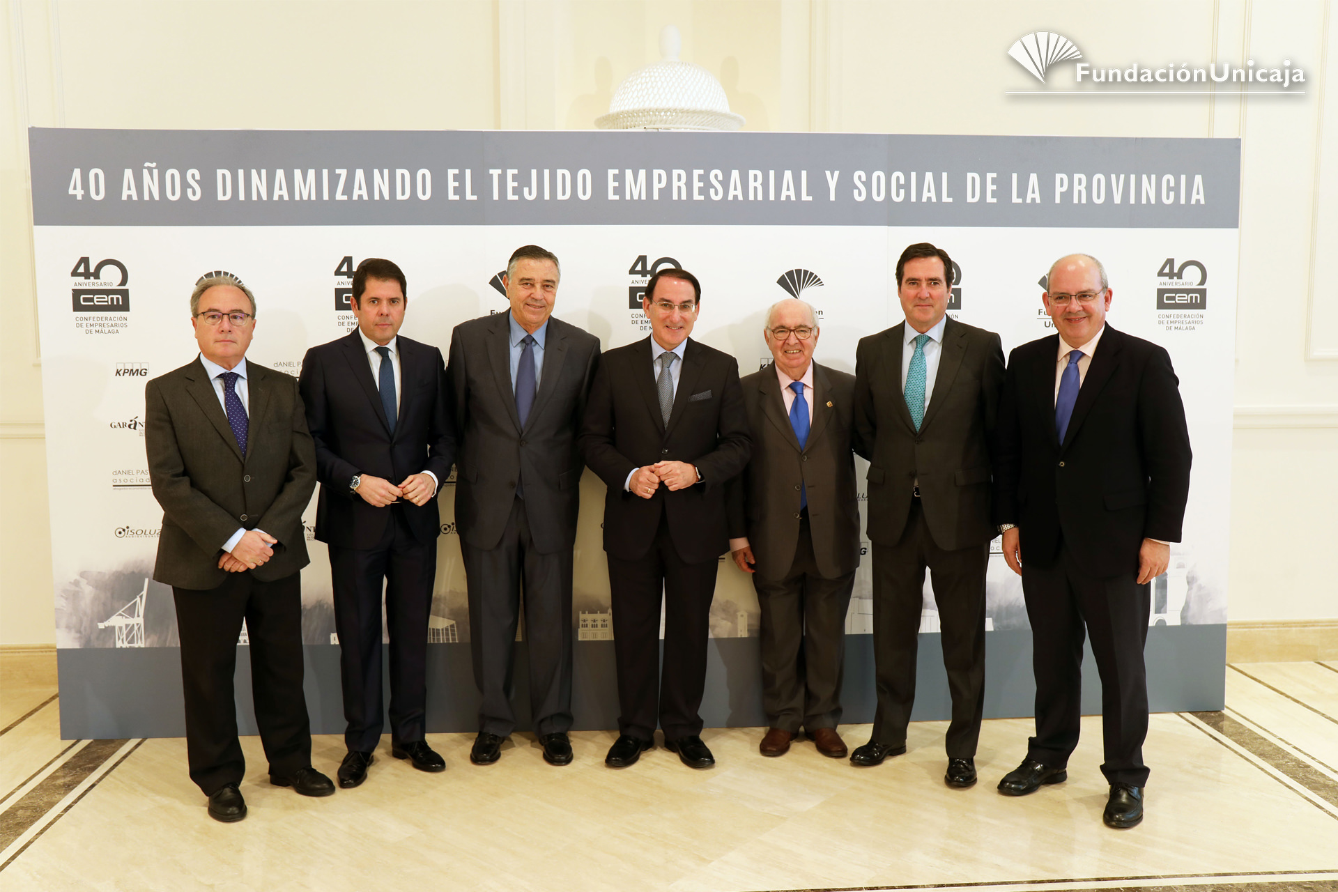 Fundación Unicaja ha estado presente, en calidad de entidad aliada y colaboradora, en la conmemoración de los primeros cuarenta años de existencia de la Confederación de Empresarios de Málaga (CEM), una organización, la patronal malagueña, que fue fundada en septiembre de 1977, en pleno despegue social y democrático, y que actualmente cuenta con una afiliación en la provincia superior al centenar de corporaciones y a las 45.000 pymes.