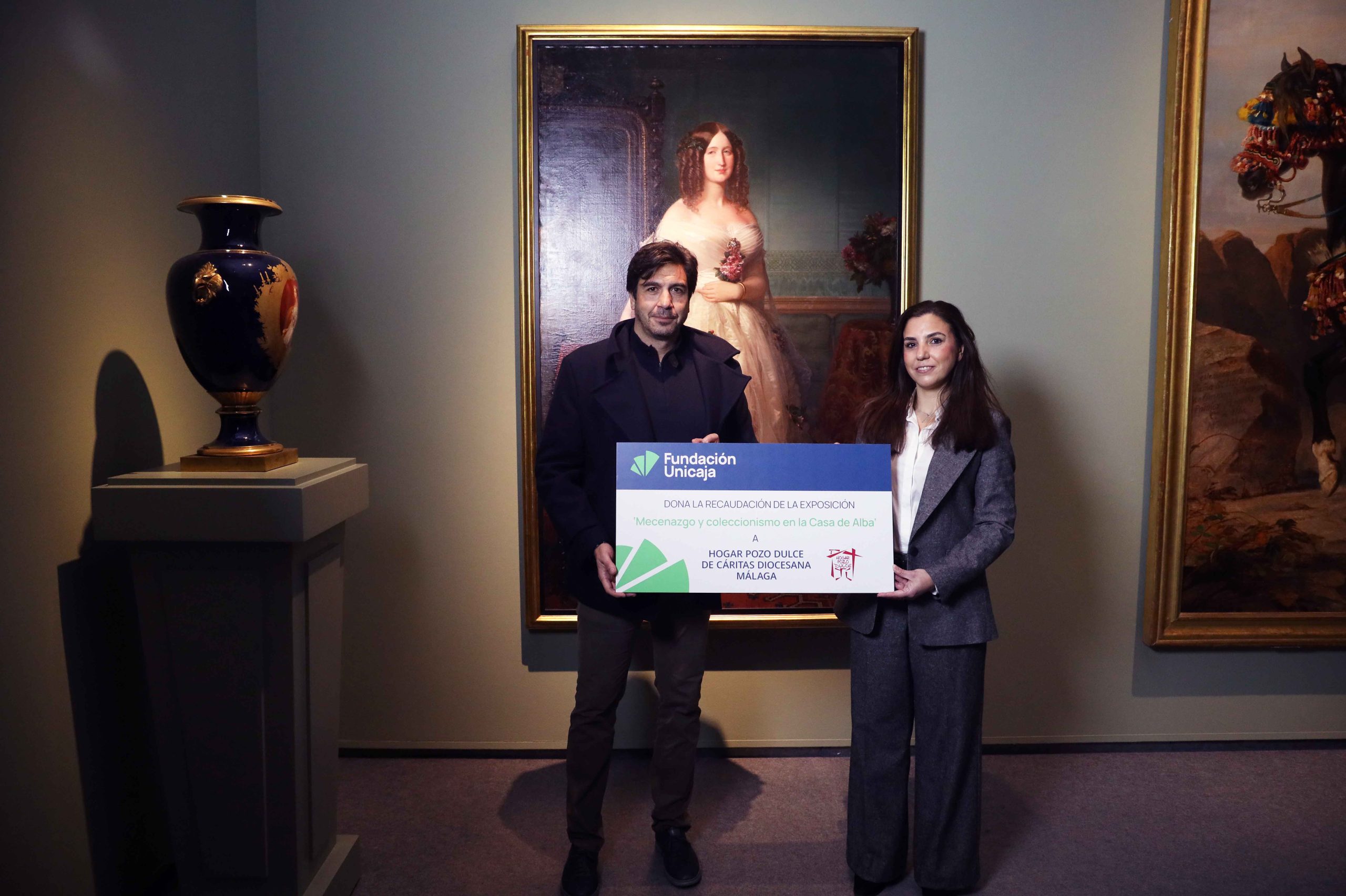 Fundación Unicaja ha hecho entrega de la recaudación de la exposición ‘Mecenazgo y coleccionismo en la Casa de Alba’ a Cáritas Diocesana de Málaga y al Asilo de las Hermanitas de los Pobres. La directora de División de Actividades, Comunicación e Imagen de la Fundación Unicaja, Cristina Rico, ha entregado el donativo de cerca de 70.000 euros, que se repartirá a partes iguales entre ambas asociaciones, al director de Cáritas Diocesana Málaga, José Miguel Santos, y a la Hermana colectora del Asilo Hermanitas de los Pobres, Sor Isabel Guerrero.