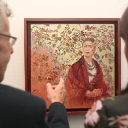 “Frida Kahlo. La vida como obra de arte” reúne las últimas creaciones del galerista, artista y coleccionista Fausto Velázquez. Se trata de una serie de retratos en los que el pintor sevillano reinterpreta a Frida, reflejando al mismo tiempo la pasión que siente por su rostro icónico y por su azarosa y dramática vida.