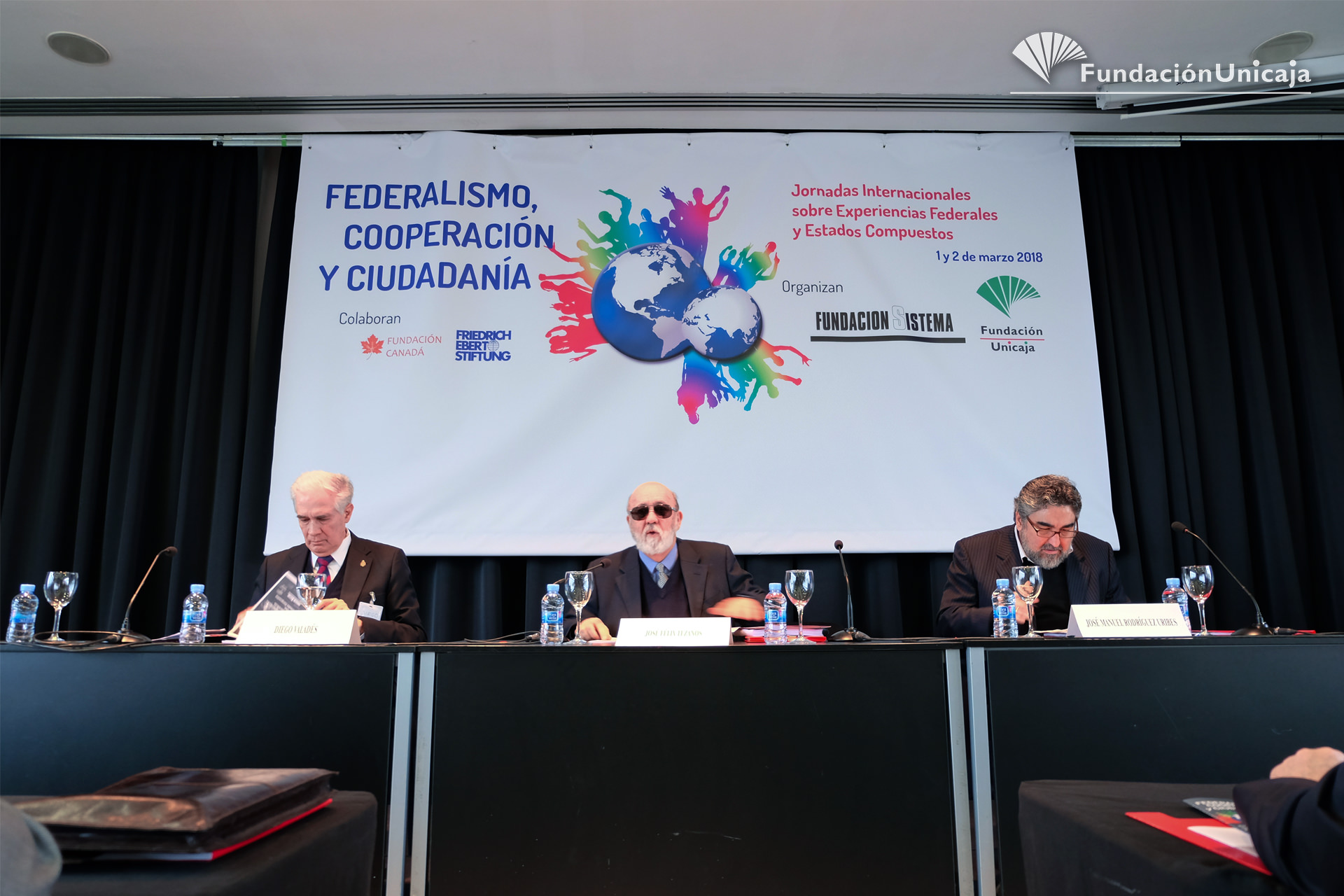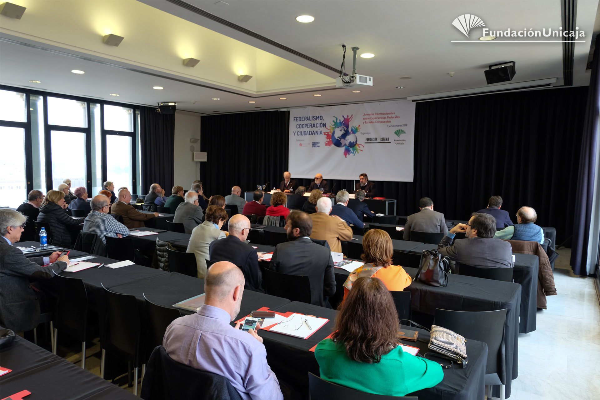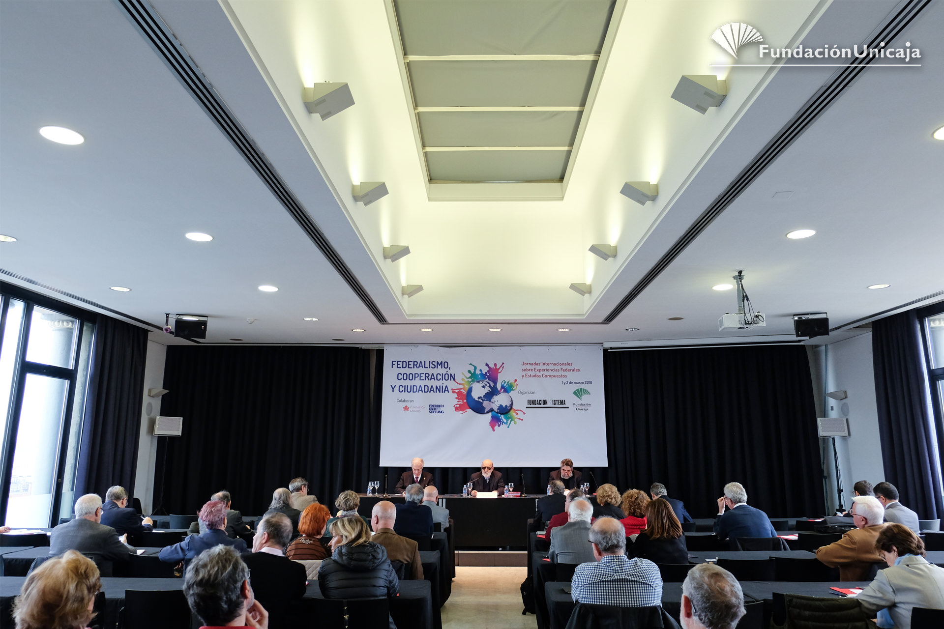 Fundación Unicaja ha inaugurado hoy en el Círculo de Bellas Artes de Madrid las jornadas internacionales sobre experiencias federales y estados descompuestos ‘Federalismo, Cooperación y Ciudadanía’, un encuentro organizado por la institución y por Fundación Sistema con el objetivo de reflexionar conjuntamente sobre los distintos modelos territoriales y el impacto de sus crisis en la convivencia.