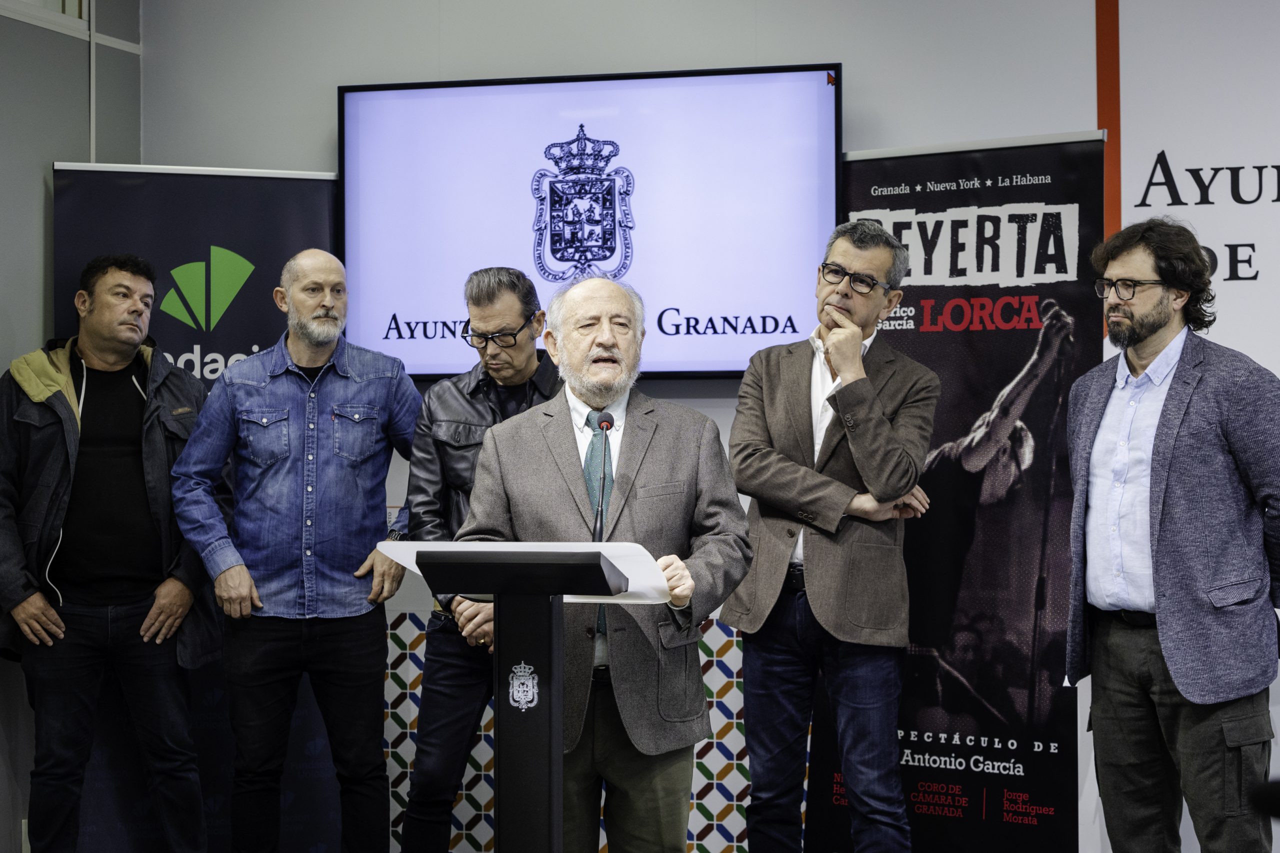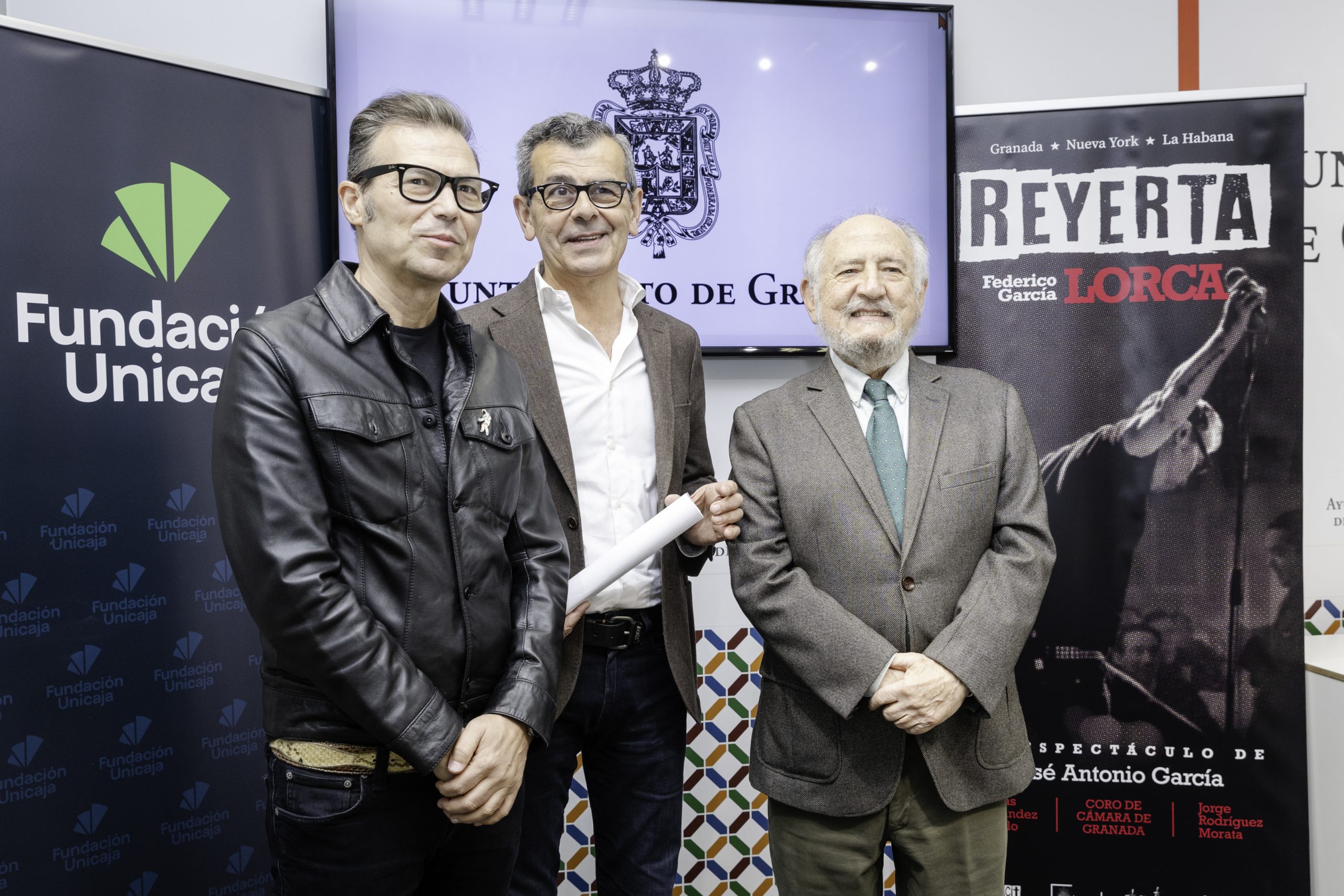 Fundación Unicaja patrocina el espectáculo ‘Reyerta’ de José Antonio García que propone una mirada a la obra de Federico García Lorca desde el rock. El Ayuntamiento de Granada ha acogido este martes la presentación del montaje, que ha contado con la participación de Alberto Fernández, patrono de la Fundación Bancaria Unicaja, el concejal de Cultura del Ayuntamiento de Granada, Juan Ramón Ferreira, y el director del Coro de Cámara de Granada, Jorge Rodríguez Morata. El espectáculo se estrenará los días 5 y 6 de abril en el Centro Federico García Lorca, a las 21:00 horas. Las entradas están a la venta en www.redentradas.es