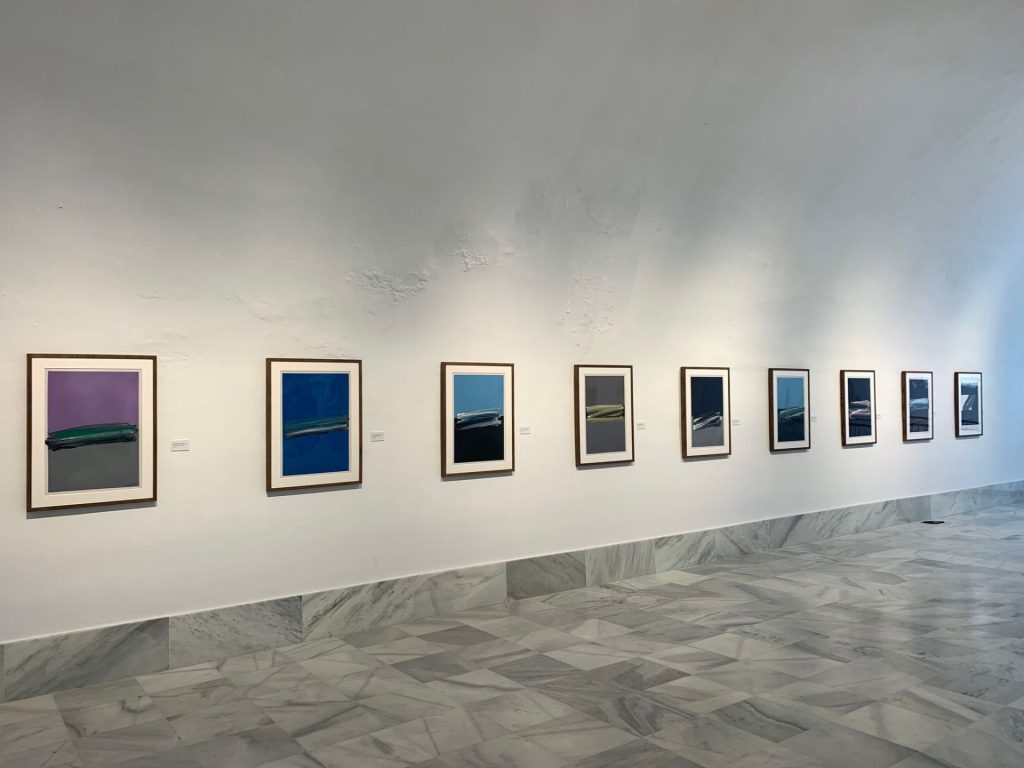 De entre la treintena de pinturas que se exponen en Huellas, hay que destacar que por primera vez sale del estudio del artista y precisamente para poder contemplarla en esta muestra en el ECCO de Cádiz, el políptico TAPIAL, de 2019, un óleo sobre metacrilato de unas dimensiones extraordinarias, esto es, 200 x 640 cm.