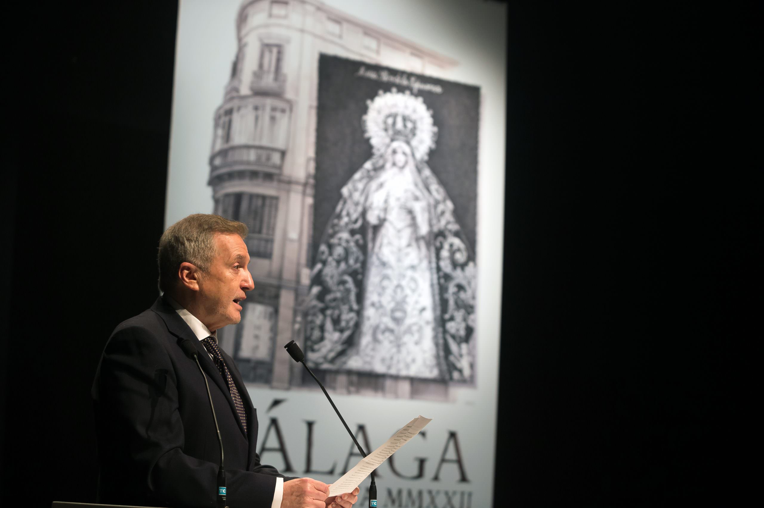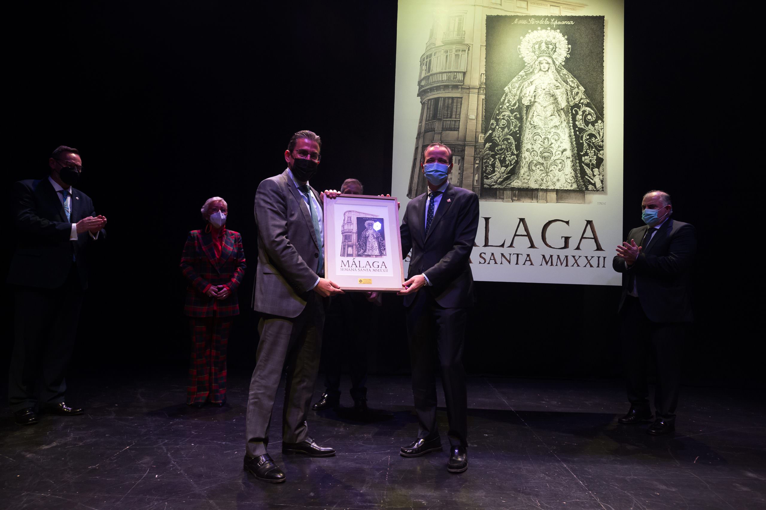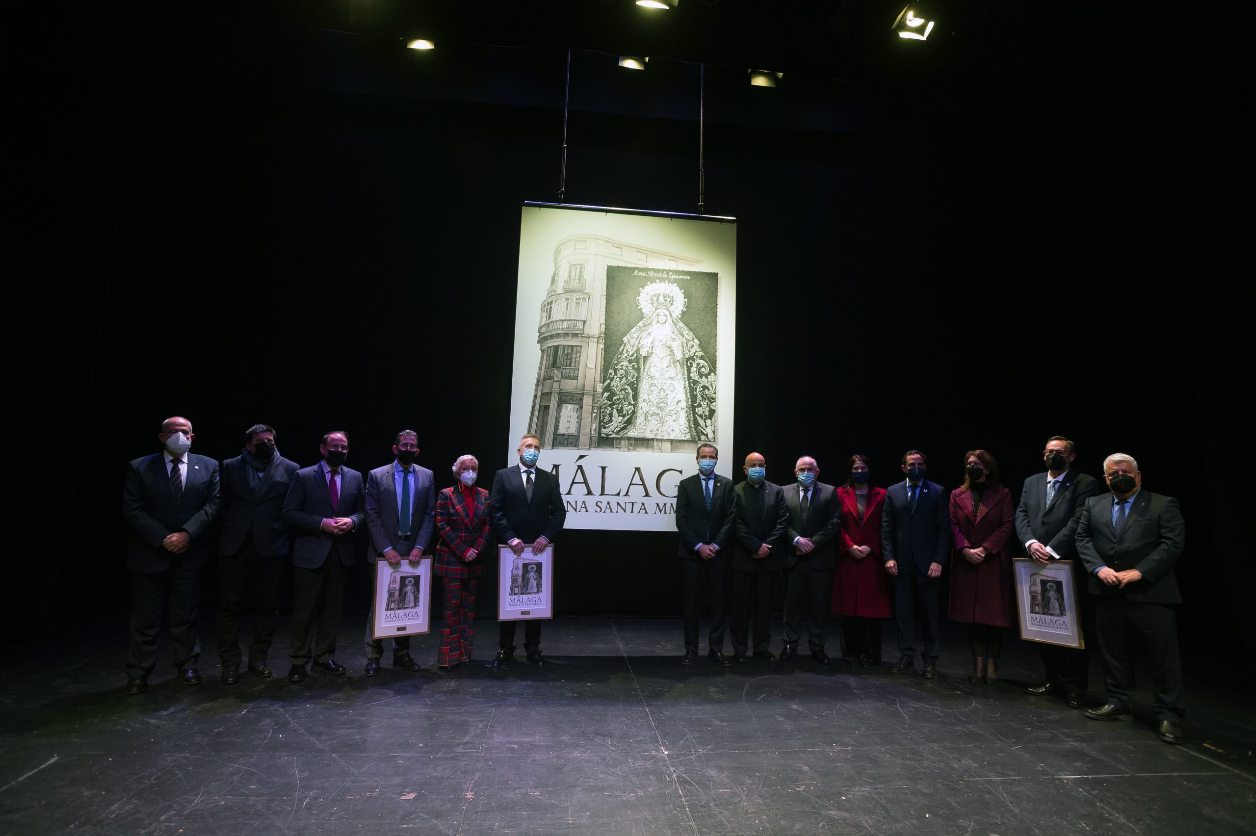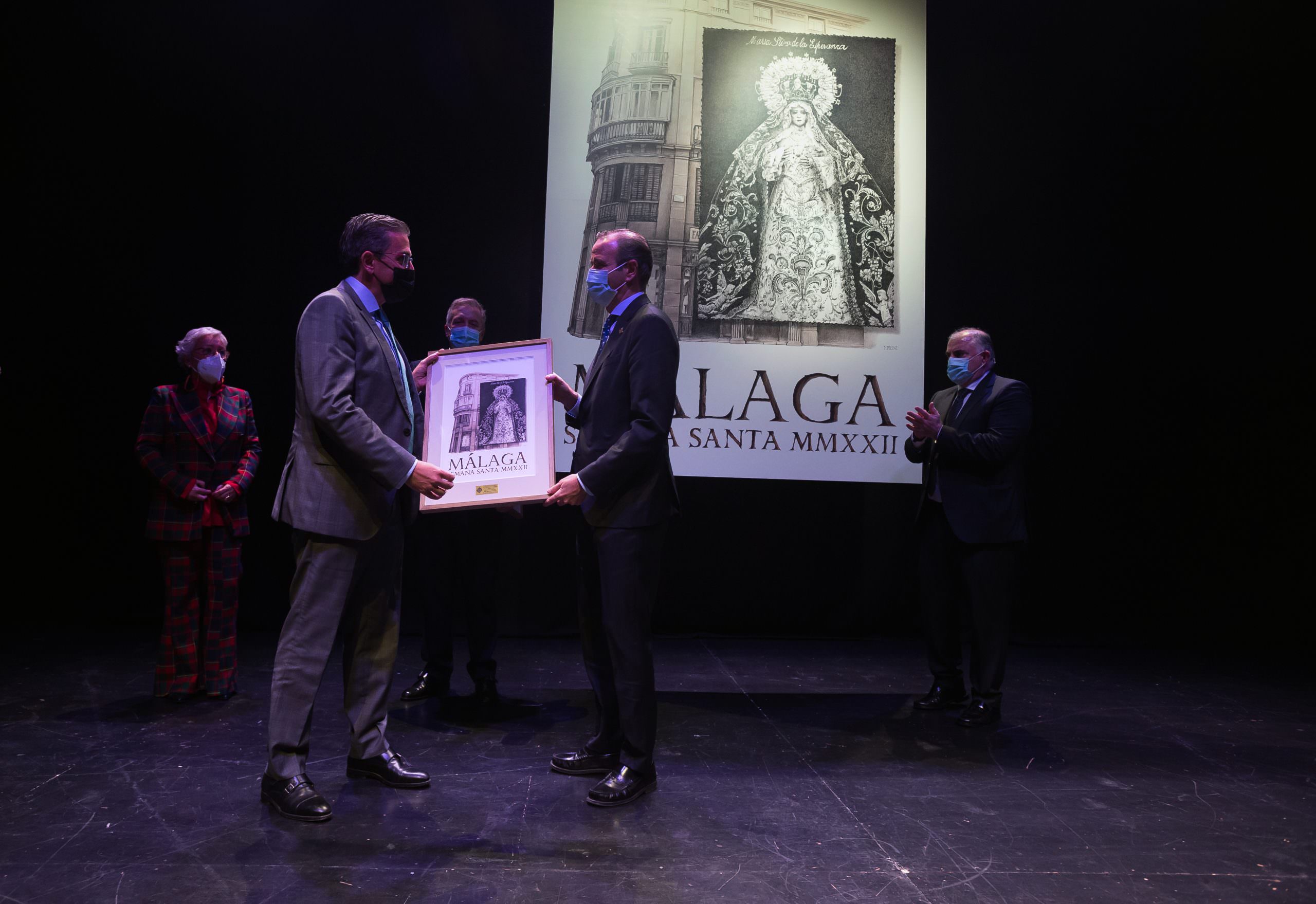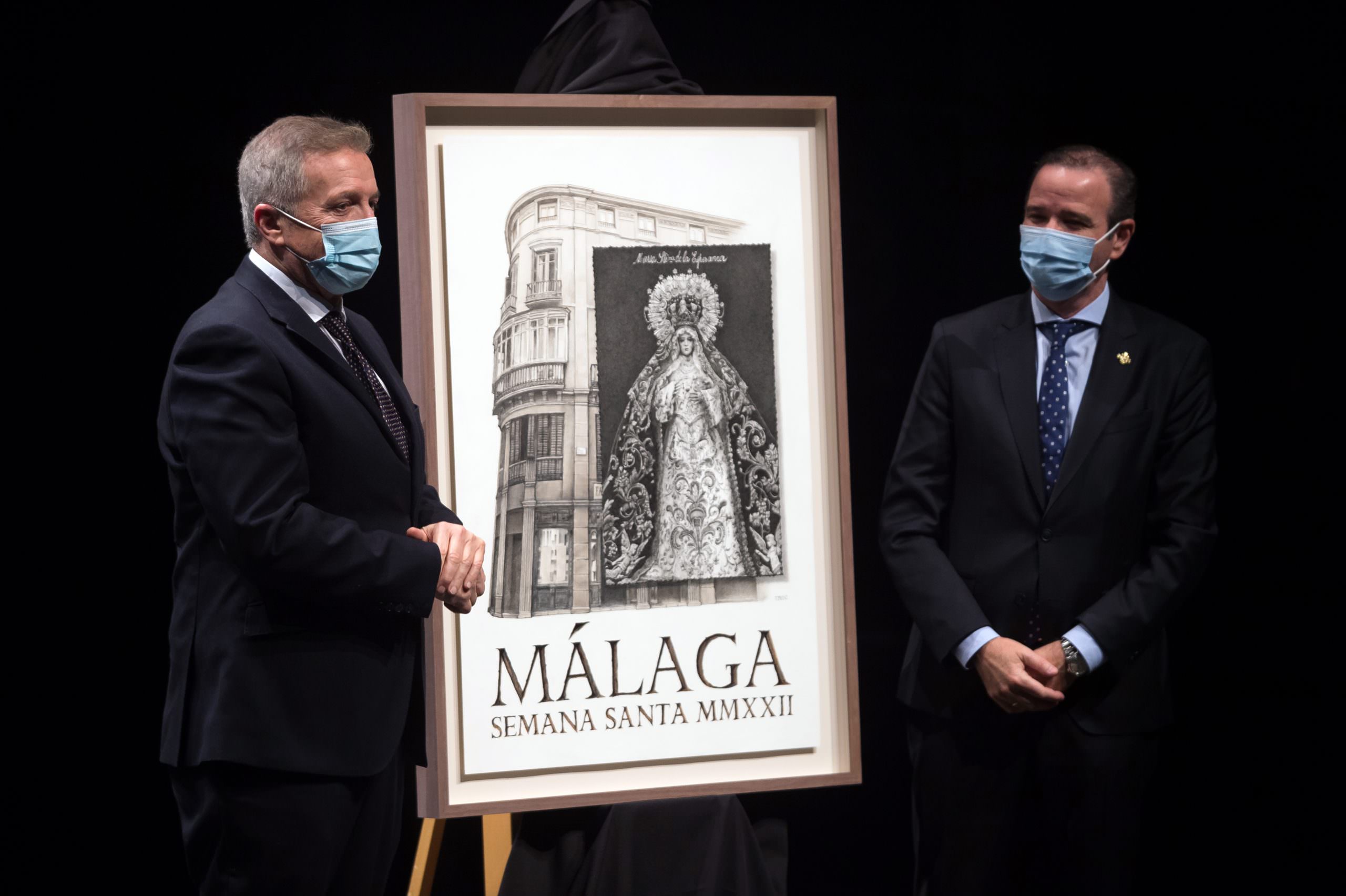 El cartel anunciador de la Semana Santa de Málaga 2022 fue presentado anoche en el Teatro Echegaray de Málaga en un acto que contó con la colaboración de la Fundación Unicaja. La Virgen de la Esperanza es la protagonista de la imagen de este año, obra del diseñador cofrade Fernando Prini, hermano de las archicofradías de Pasión y de los Dolores de San Juan.