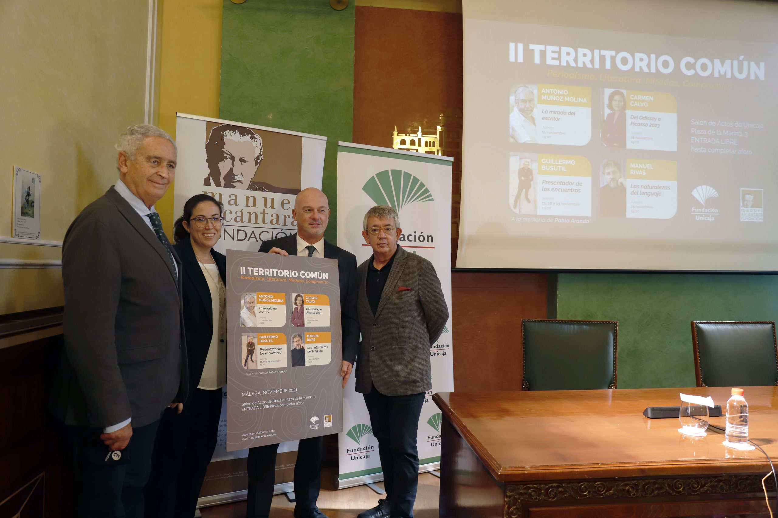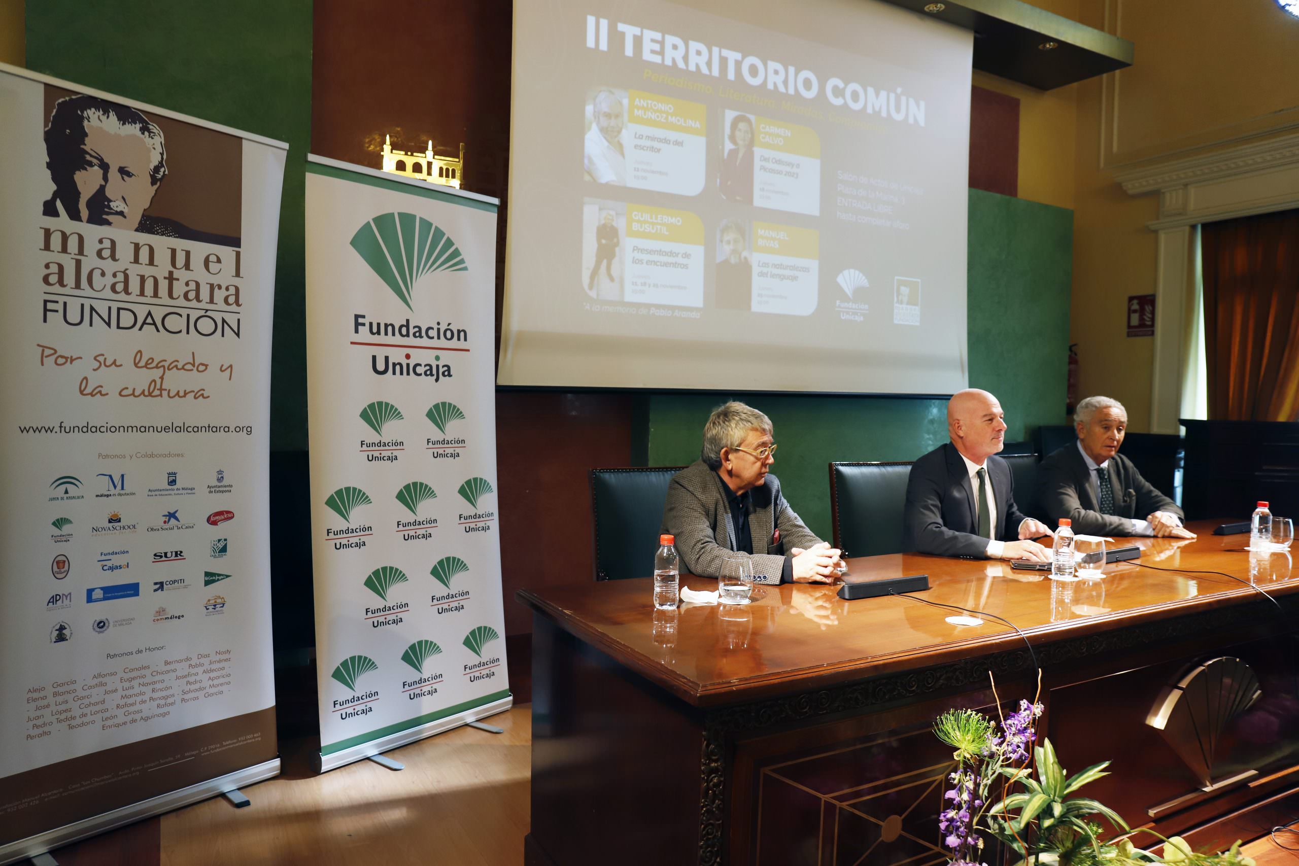 Fundación Unicaja patrocina una nueva edición del ciclo ‘Territorio Común’, que organiza la Fundación Manuel Alcántara y que contará con la presencia de la exministra Carmen Calvo y los escritores Antonio Muñoz Molina y Manuel Rivas. Así lo han dado a conocer este viernes el responsable de Publicaciones y Premios de la Fundación Unicaja, Francisco Cañadas; el presidente de la Fundación Manuel Alcántara, Antonio Pedraza; y el escritor y periodista cultural Guillermo Busutil.