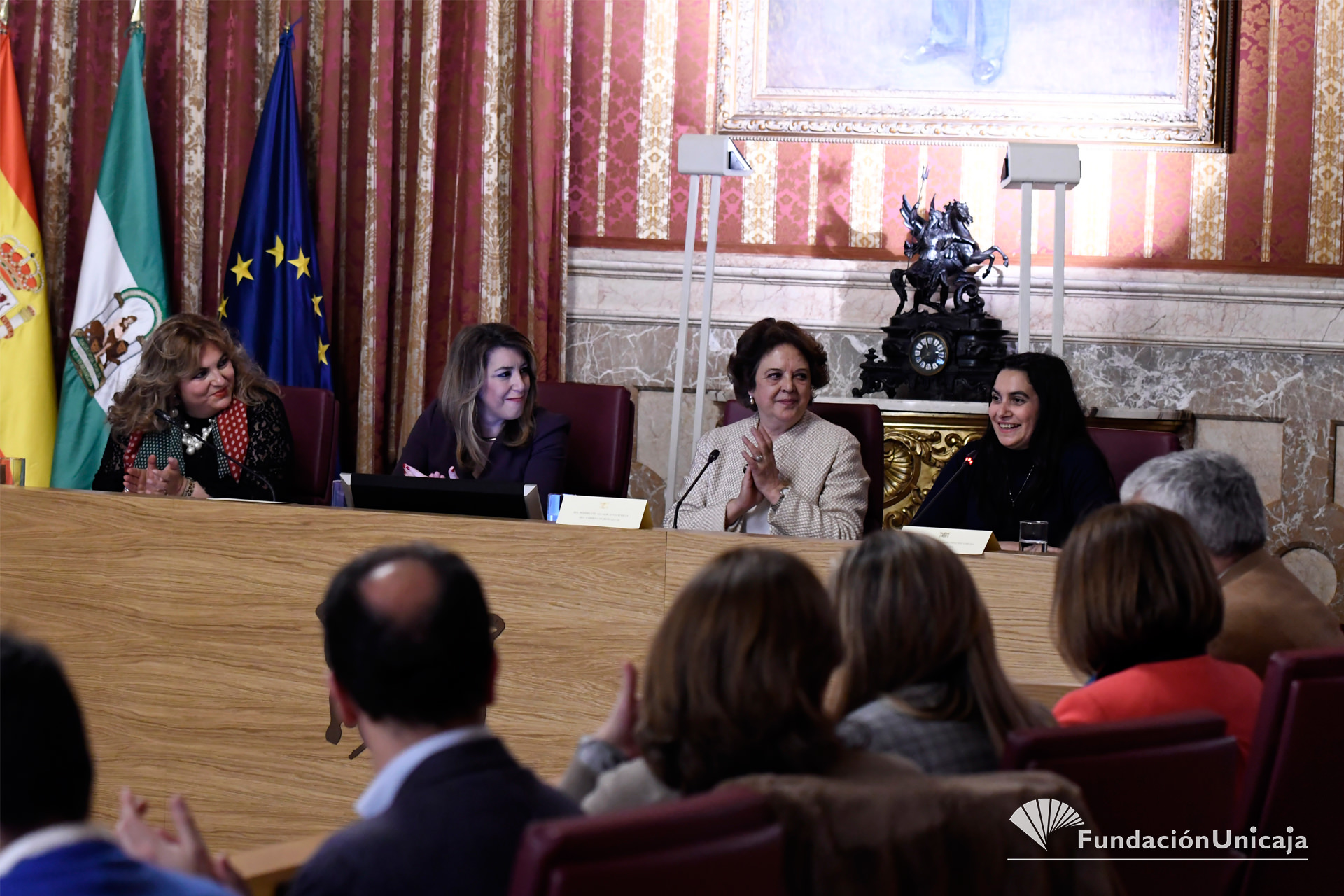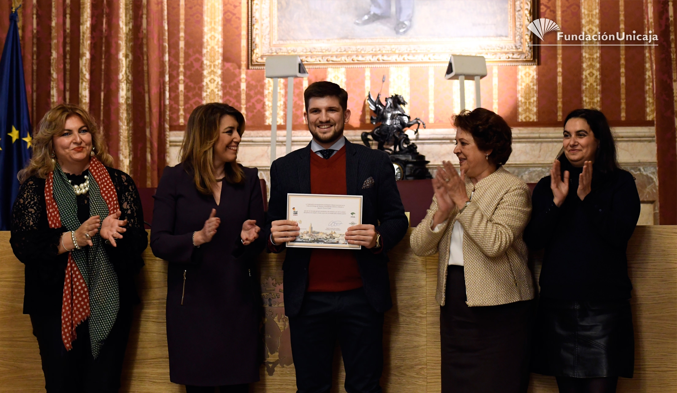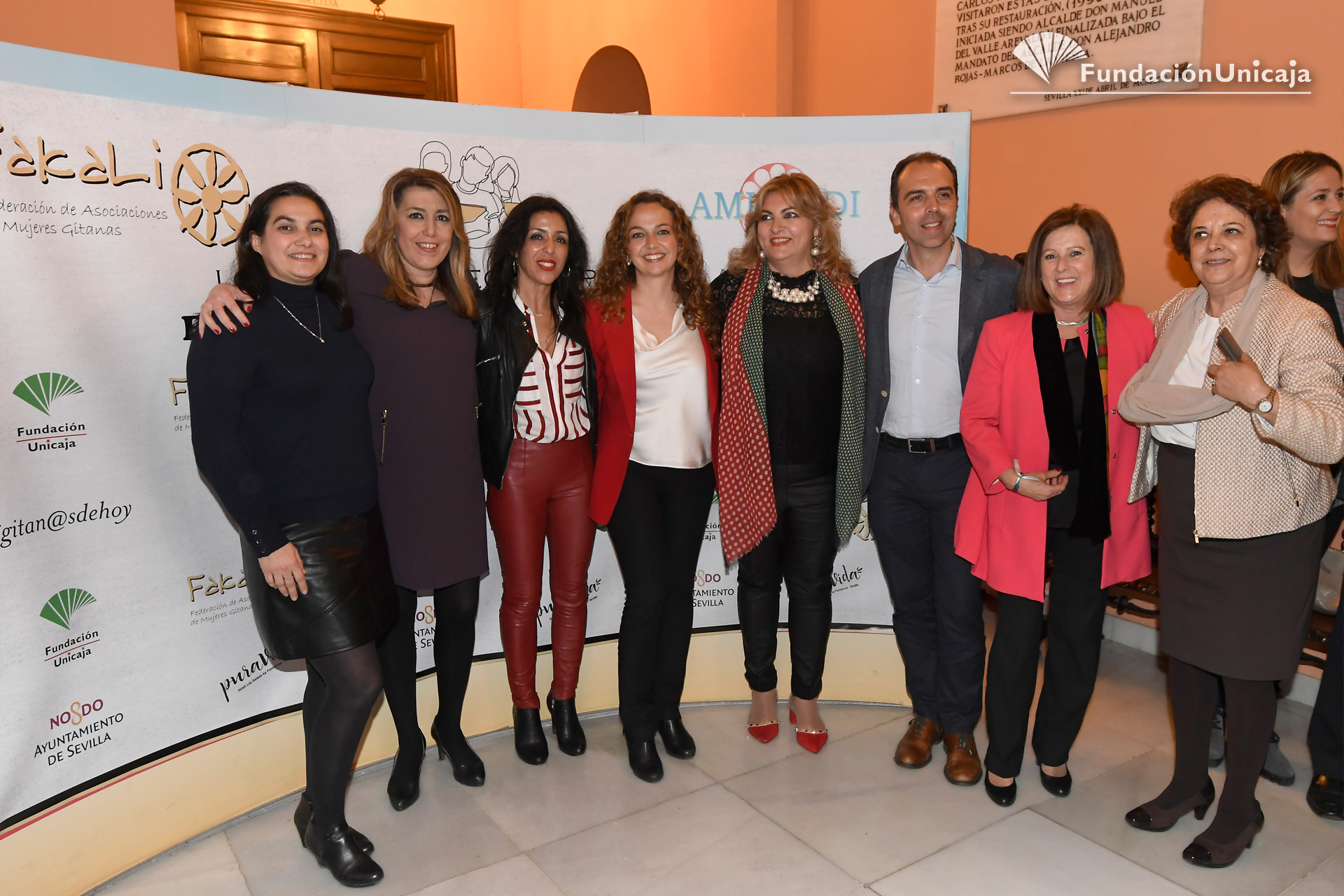 El acto, que ha tenido lugar en el Ayuntamiento de Sevilla, ha contado con la presencia de Sara Rodríguez, en representación de Fundación Unicaja, y de la presidenta de la Junta de Andalucía, Susana Díaz, además de la primera teniente alcalde de Sevilla, María del Carmen Castreño y la presidenta de Fakali-Amuradi, Beatriz Carrillo.
