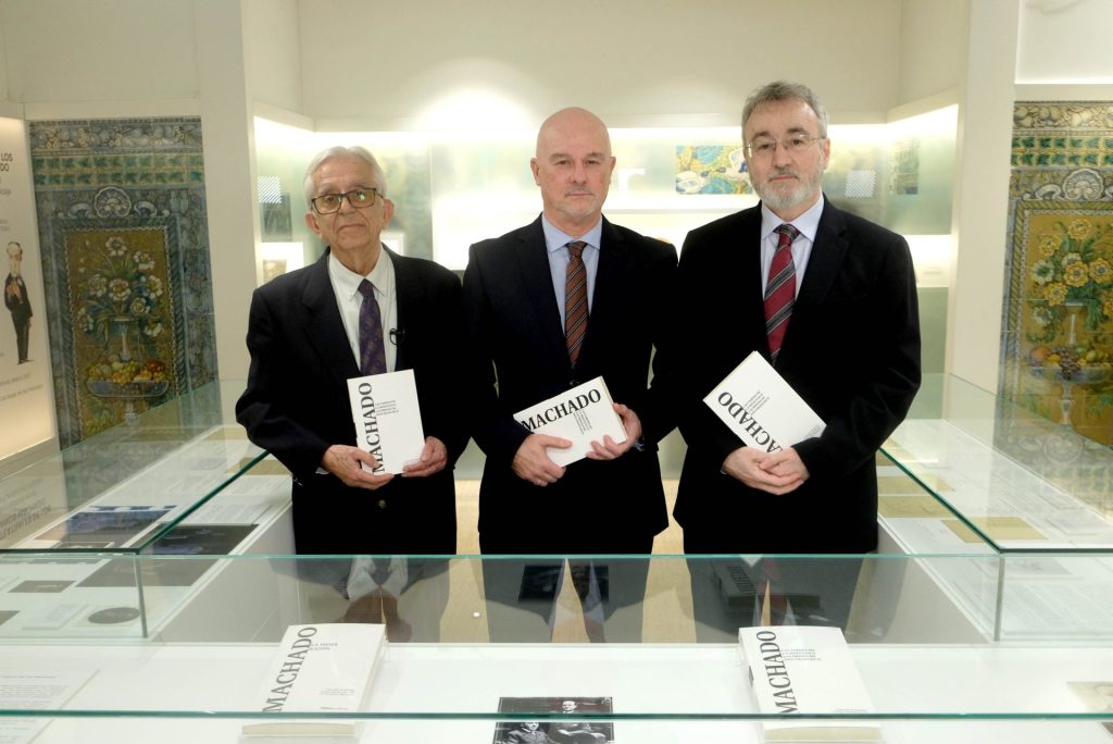 El responsable de Literatura de la Fundación Unicaja, Francisco Cañadas, y los investigadores Rafael Alarcón y Antonio Rodríguez Almodóvar han dado a conocer en el Centro Cultural Fundación Unicaja de Sevilla este hallazgo literario, enmarcado en la labor de divulgación de la Fundación Unicaja de su colección de manuscritos de los hermanos Machado.
