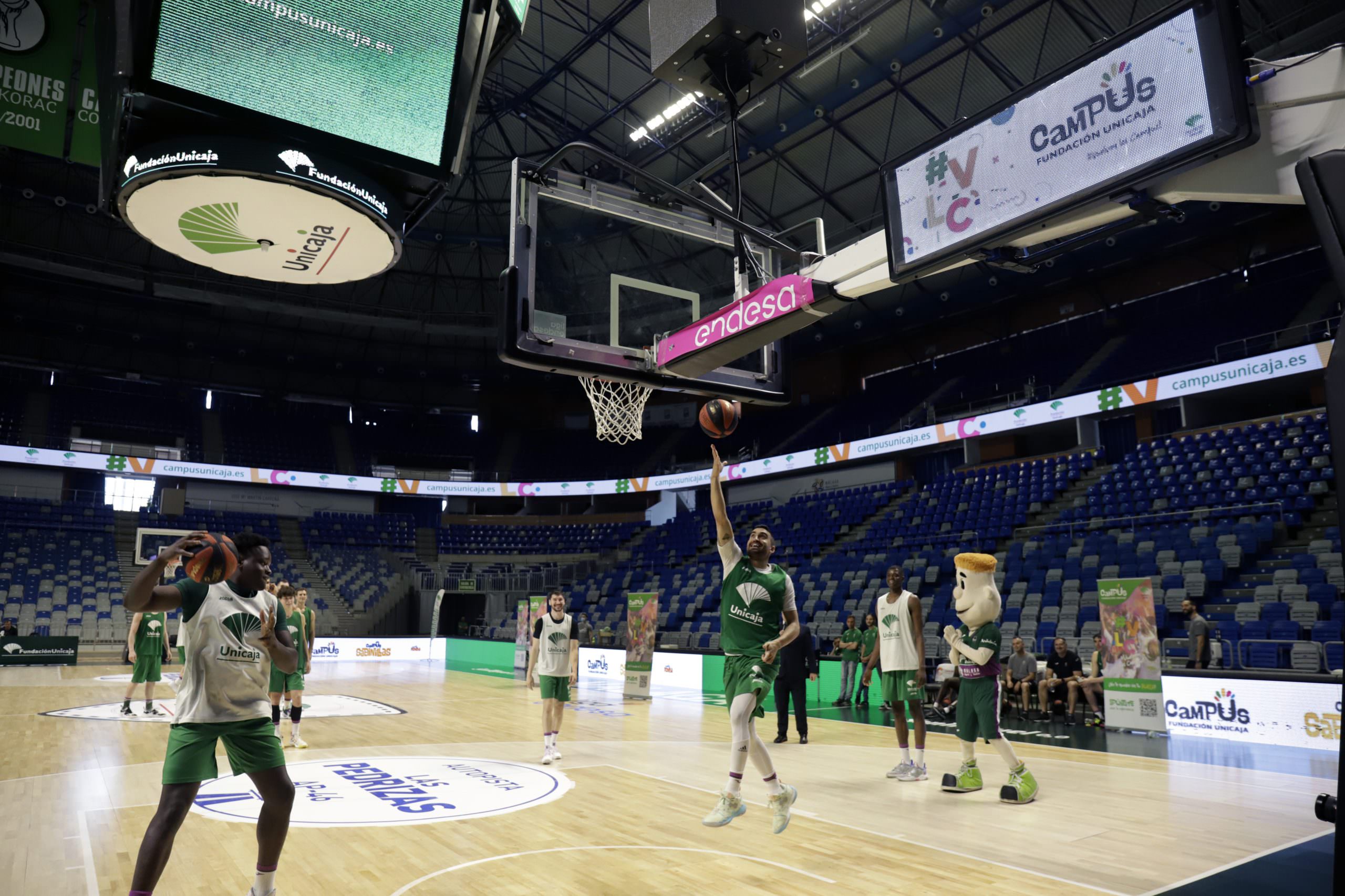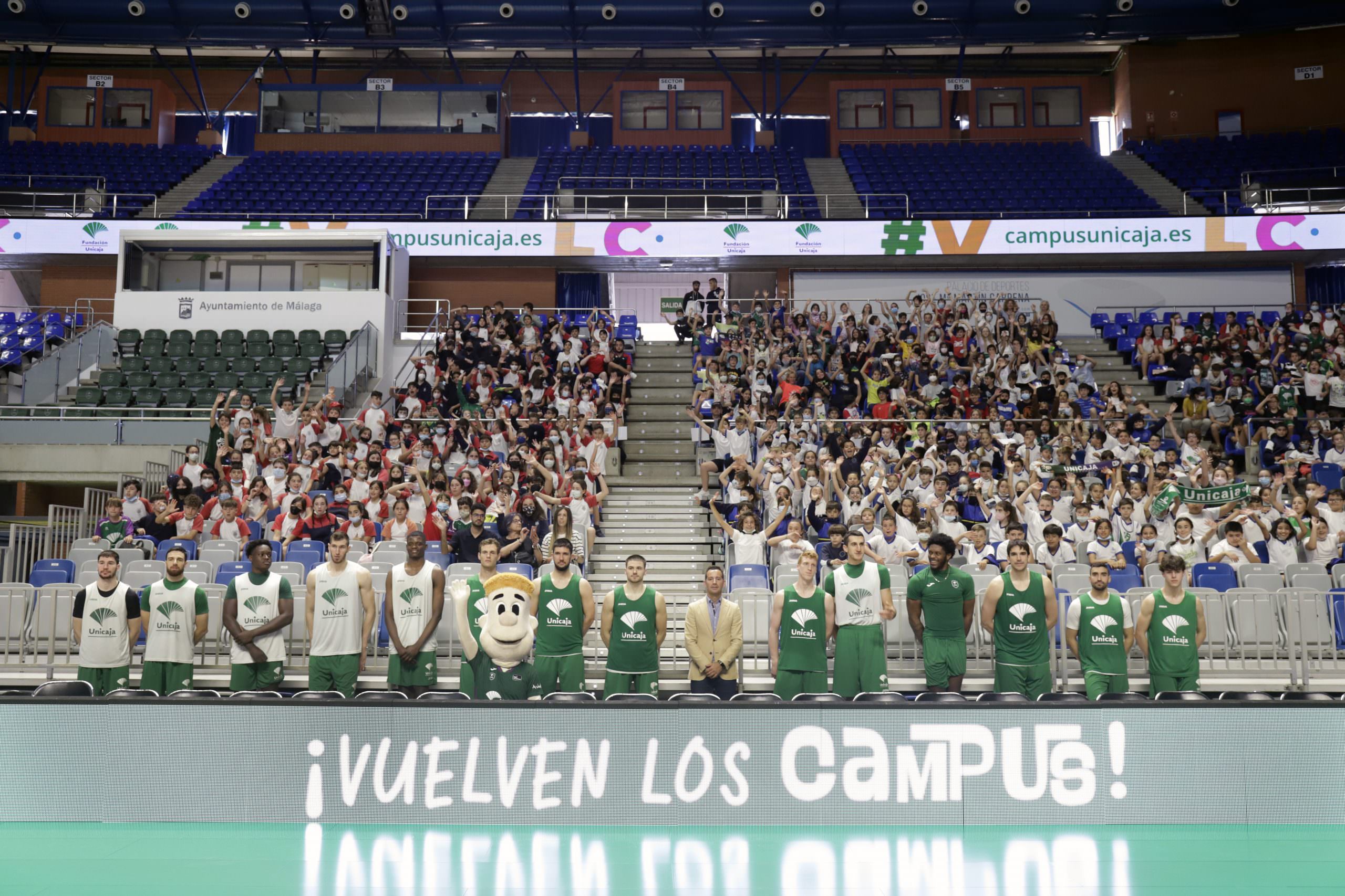 Fundación Unicaja ha presentado hoy sus Campus de verano durante un entrenamiento de puertas abiertas del Unicaja Baloncesto en el Palacio de Deportes José María Martín Carpena. Al evento han asistido alrededor de 900 alumnos del Colegio Fundación Unicaja Rosario Moreno, el Colegio Fundación Unicaja Sagrada Familia, el CEIP Vicente Aleixandre, el CEIP El Limonar, el CEIP Los Guindos, el CEIP Cayetano Bolívar y de las Escuelas Ave María.