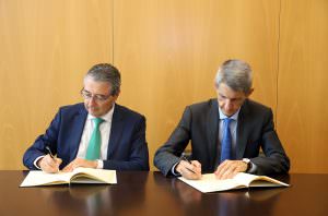 El presidente de la Fundación Bancaria Unicaja, José M. Domínguez, y el presidente de la Diputación Provincial de Málaga, Francisco Salado, han firmado el nuevo acuerdo de colaboración en un encuentro que han mantenido en la sede de la Diputación de calle Pacífico.