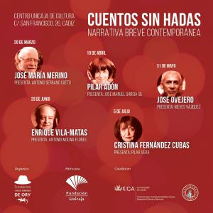 ‘Cuentos sin hadas’ es un ciclo, con sede fija en el Centro Unicaja de Cultura, coordinado por Fundación Unicaja y Fundación Carlos Edmundo de Ory y en el que también colaboran el Vicerrectorado de Extensión Cultural de Universidad de Cádiz y las bodegas Williams & Humbert, que ofrecerán una degustación de vinos a los asistentes en la charla inaugural y en la de clausura.