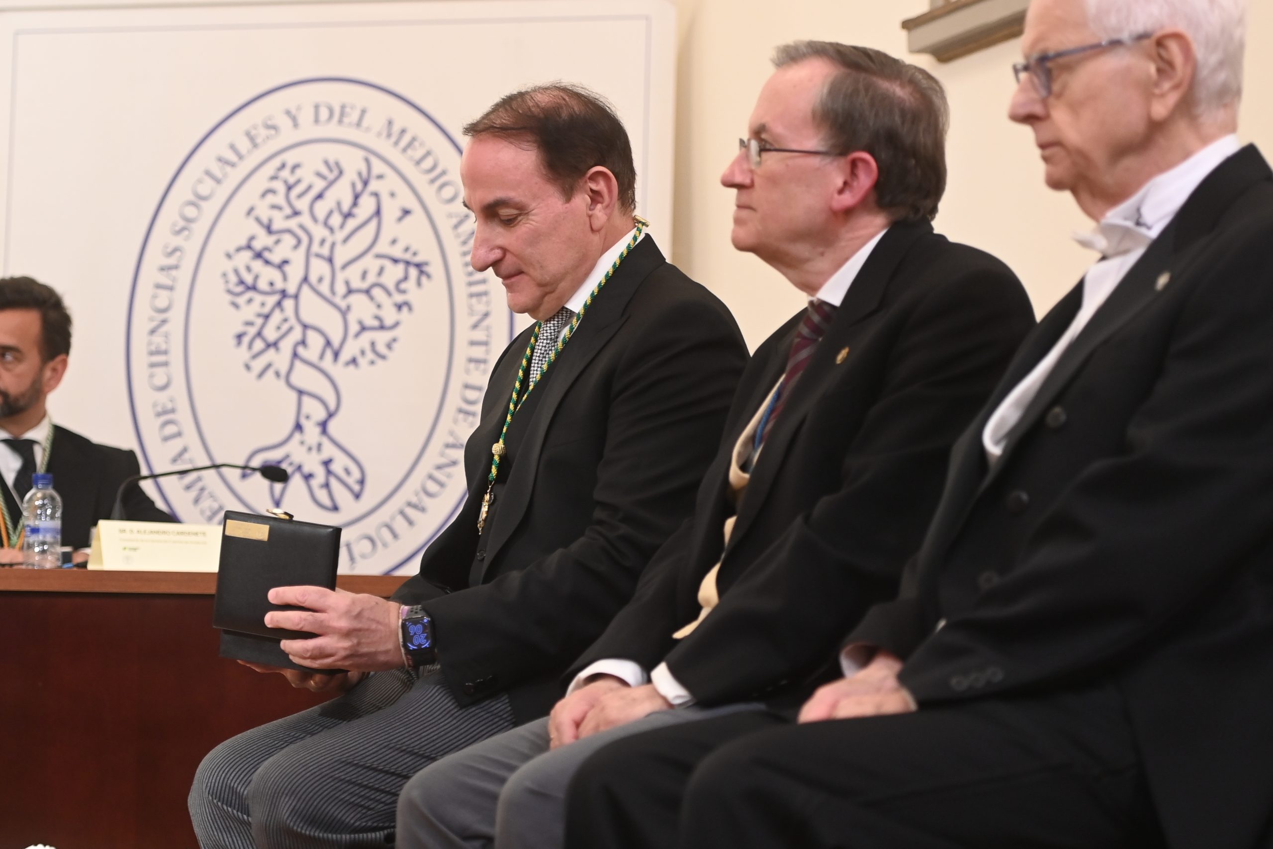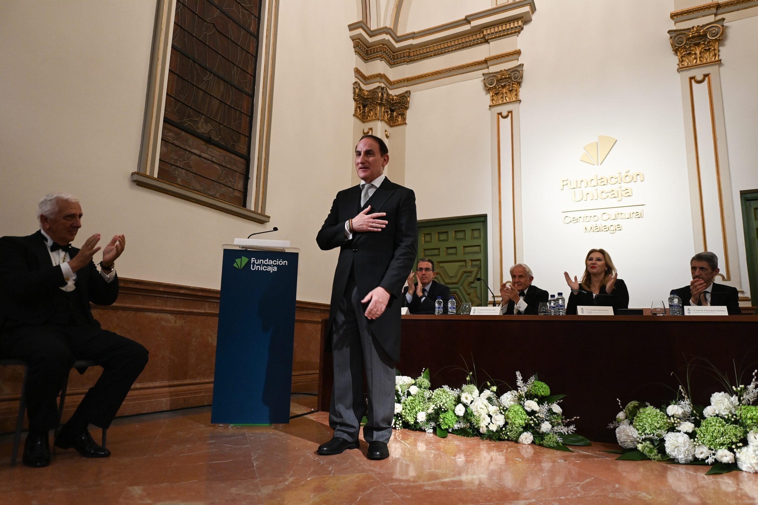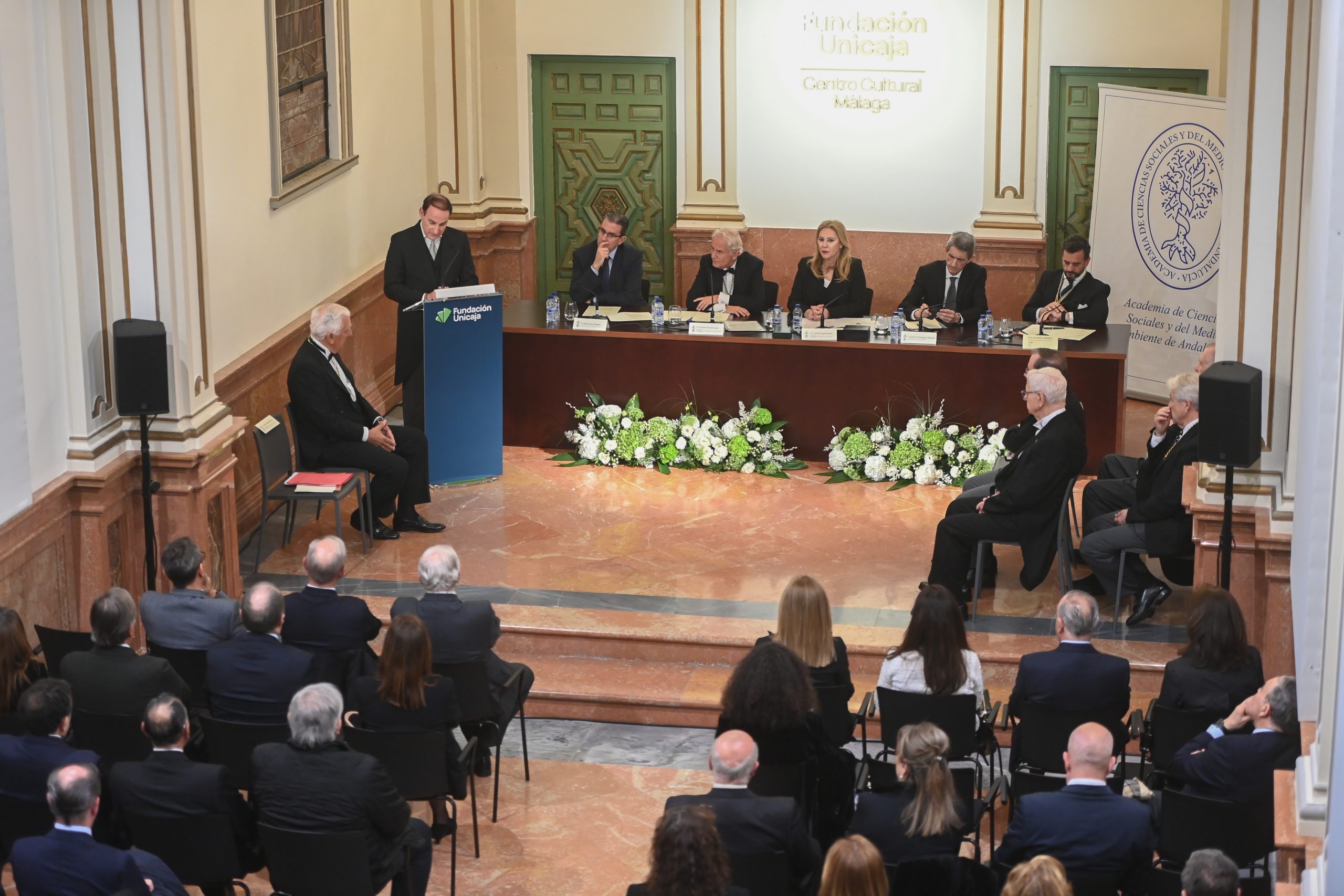 El acto ha contado con la presidencia de Carolina España Reina, consejera de Economía, Hacienda y Fondos Europeos de la Junta de Andalucía, que ha estado acompañada de José M. Domínguez Martínez, presidente de la Fundación Bancaria Unicaja; Sergio Corral Delgado, director general de la Fundación Bancaria Unicaja, Antonio Pascual Acosta, presidente de la Academia de Ciencias Sociales y del Medio Ambiente de Andalucía, y Manuel Alejandro Cardenete, presidente de la Cámara de Cuentas de Andalucía. También han estado presentes los patronos de Fundación Bancaria Unicaja Emilio Alba, Manuel Atencia y Ángela Callejón, así como la directora de División de Actividades, Comunicación e Imagen de Fundación Unicaja, Cristina Rico, junto a académicos, autoridades y representantes del ámbito social y empresarial, tanto de Málaga como de Andalucía.