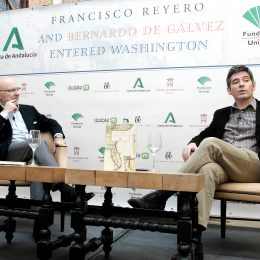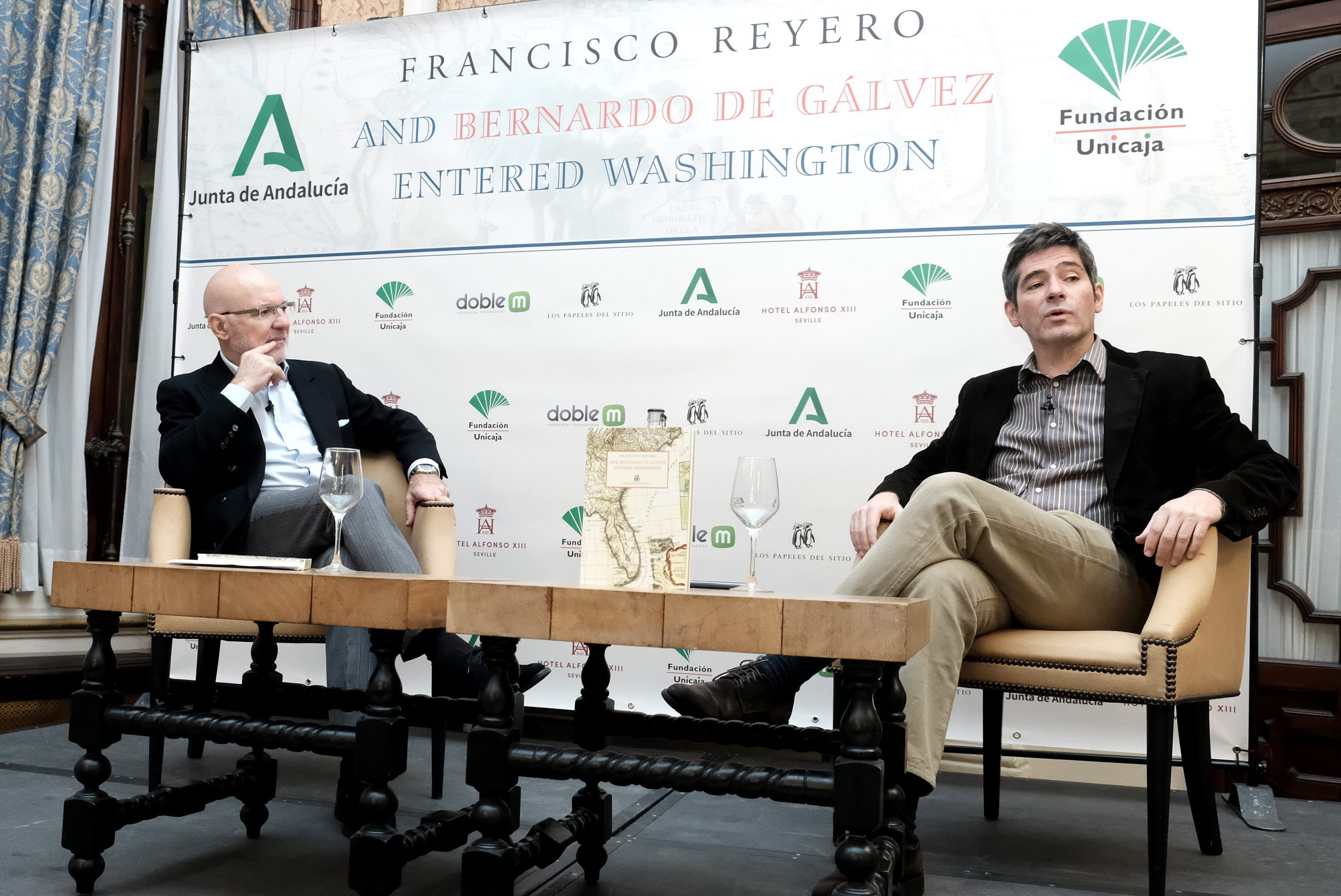 Fundación Unicaja vuelve a apostar por el libro ‘Y Bernardo de Gálvez entró en Washington’, obra del escritor Francisco Reyero, que ya patrocinó en su día y que ahora ve la luz en su versión inglesa ‘And Bernardo de Gálvez entered Washington’ (Los Papeles del Sitio, 2020), que este martes, 9 de noviembre, se ha presentado en Sevilla, con la participación de Rafael Muñoz, director de Actuaciones Socioculturales de la Fundación Unicaja; Patricia del Pozo, consejera de Cultura y Patrimonio Histórico de la Junta de Andalucía; el autor del libro, Francisco Reyero; y el periodista y conductor del acto, Jesús Vigorra. La presentación contó, además, con la presencia del consejero de Presidencia, Administraciones Públicas e Interior de la Junta de Andalucía y Portavoz de la Junta de Andalucía, Elías Bendodo.