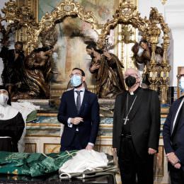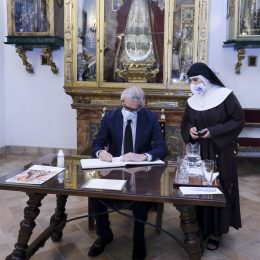 Hoy se ha clausurado la exposición con una eucaristía en la que también se ha bendecido la imagen de Nuestro Padre Jesús Nazareno del Perdón y las nuevas potencias que se han elaborado para el Nazareno, obra realizada en plata sobredorada y amatistas, estilo rocalla, por el artista sevillano Ramón León. Tras la misa oficiada por el arzobispo José Ángel Saiz Meneses, y unas palabras de agradecimiento de la madre abadesa del convento, Sor Lucía Durán, la comitiva ha realizado una visita guiada por la exposición.