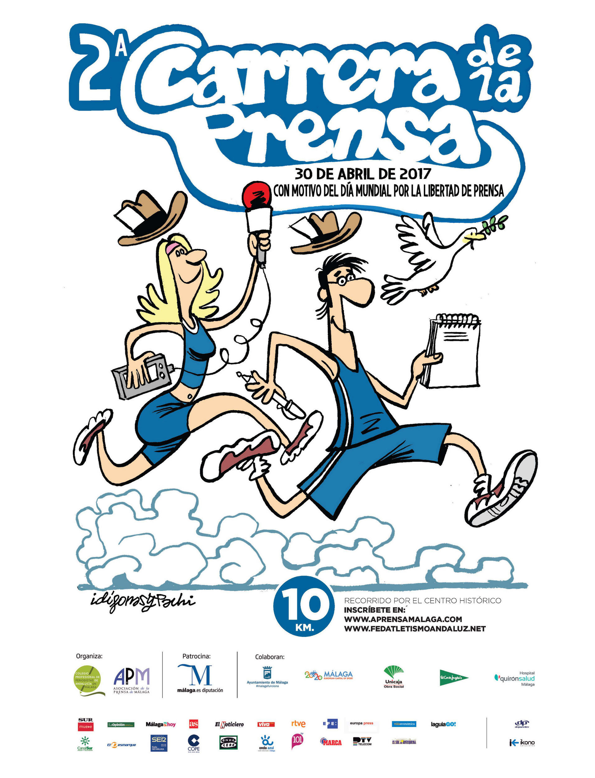 La Carrera de la Prensa de Málaga, que celebrará el próximo 30 de abril su segunda edición, es un acto deportivo, el único de estas características a nivel nacional, nacido el pasado año con la finalidad de conmemorar el Día Mundial de la Libertad de Prensa, que se celebra cada 3 de mayo desde que fuera aprobado por la Asamblea General de las Naciones Unidas en 1993. Aquellos interesados en participar en la Carrera de la Prensa se pueden inscribir a partir de mañana en las webs de la Asociación de la Prensa de Málaga (www.aprensamalaga.com) y en la de la Federación de Atletismo Andaluz (www.fedatletismoandaluz.net). La primera edición de la carrera logró el respaldo de la sociedad malagueña con la participación de 1.000 personas.