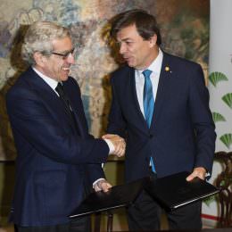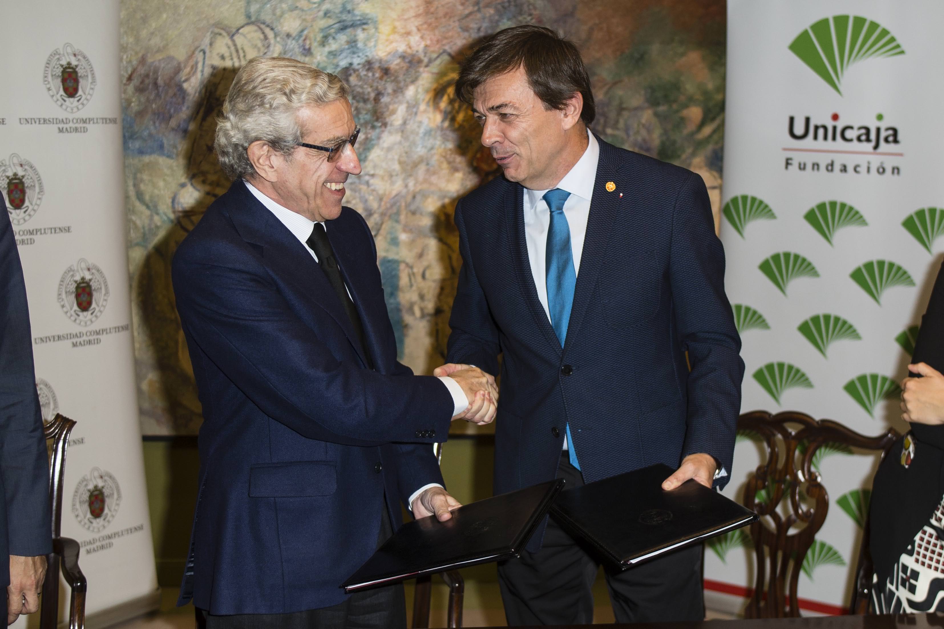 El Presidente de la Fundación Unicaja, Braulio Medel, y el Rector de la Universidad Complutense, Carlos Andradas, han firmado en la mañana de hoy el acuerdo alcanzado entre ambas entidades sobre el Colegio Mayor San Juan Evangelista. Previamente había sido ratificado por el Consejo de Gobierno y el Consejo Social de la Complutense y, asimismo, cuenta con la conformidad del Patronato de la Fundación Unicaja. Se pone fin así a una situación que bloqueaba cualquier proyecto de futuro para esta emblemática institución que marcó una época en la vida cultural universitaria de Madrid.