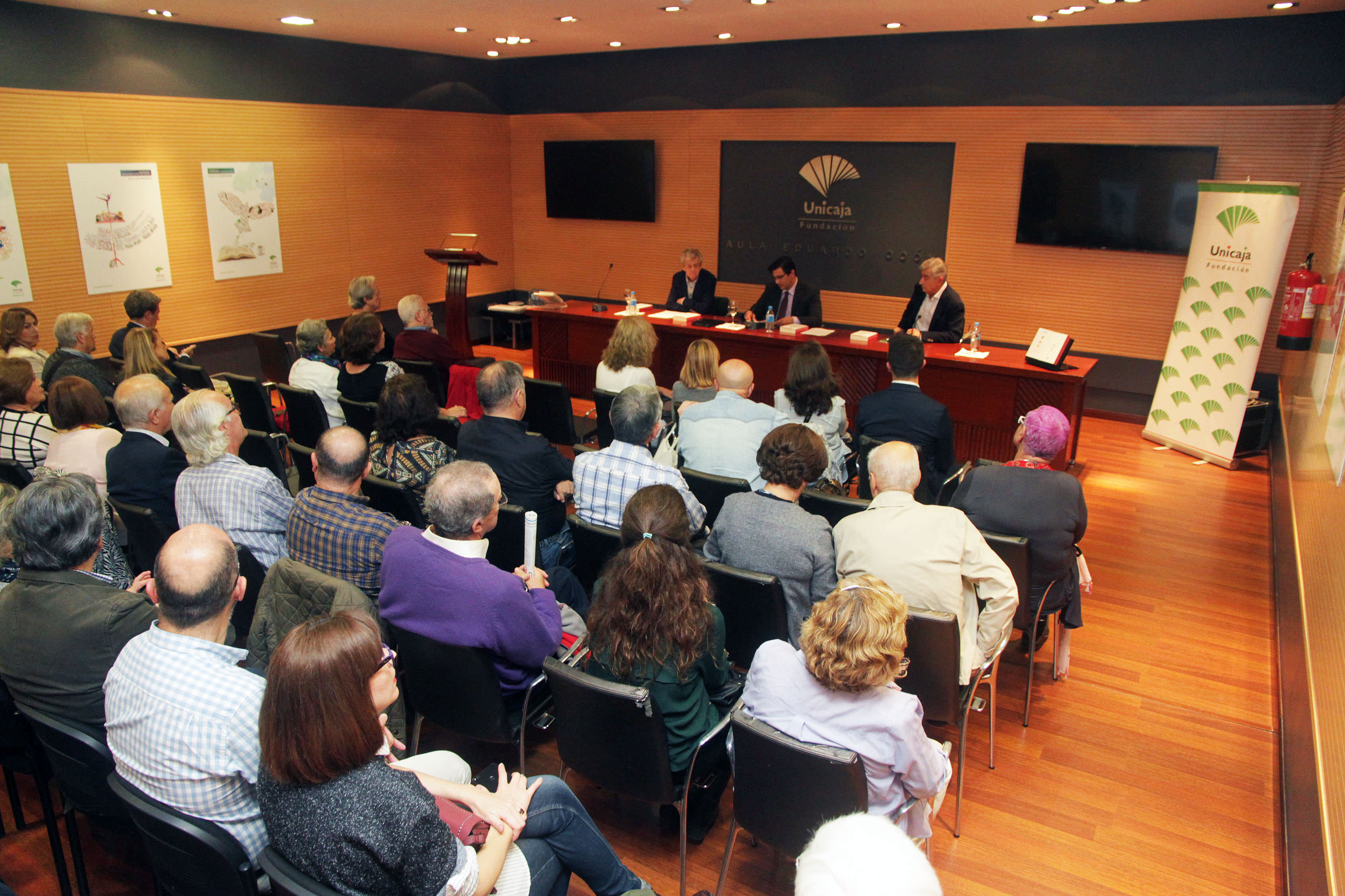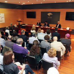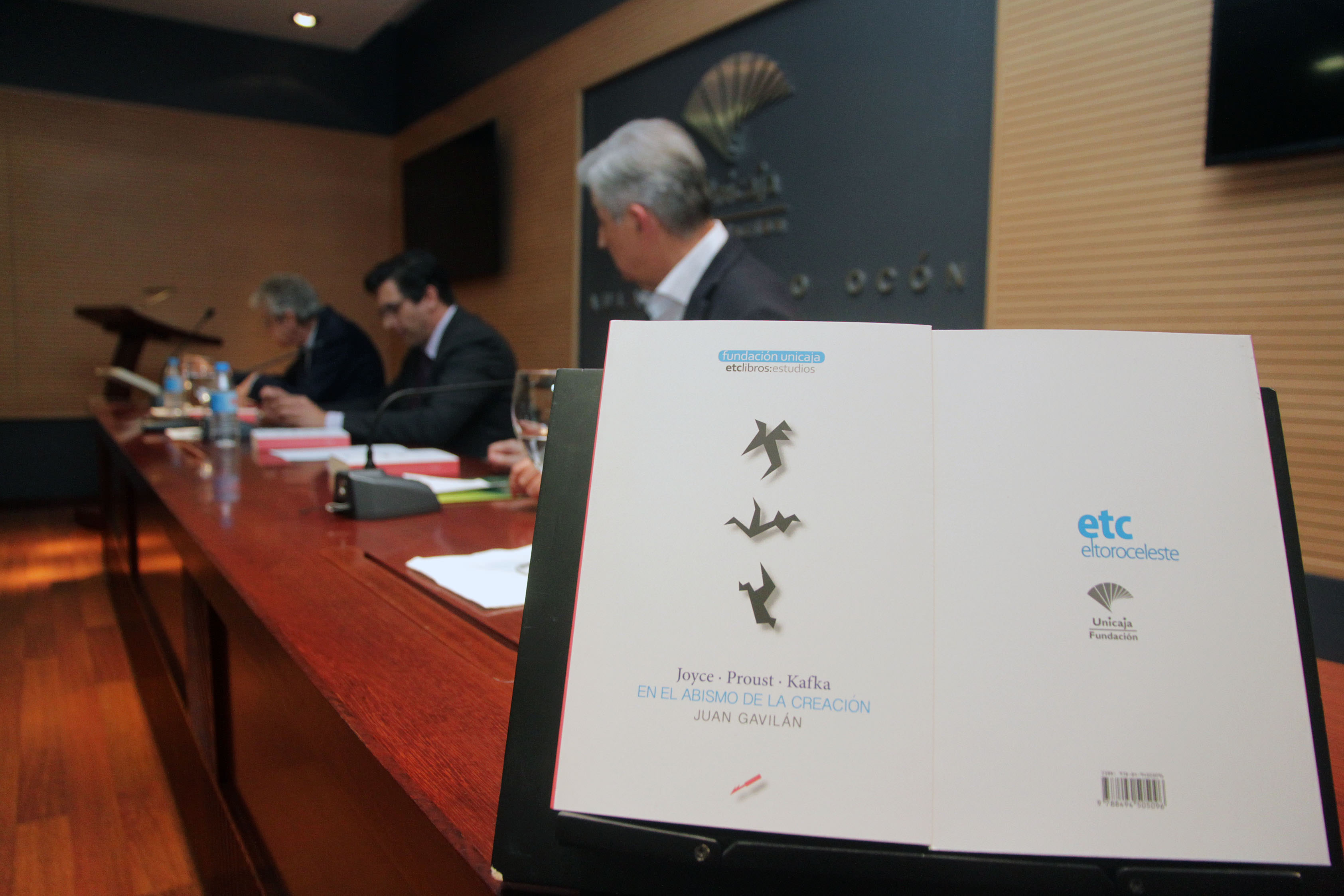 La Sala Eduardo Ocón (en la Sala Unicaja de Conciertos María Cristina) ha acogido hoy la presentación del libro “En el abismo de la creación”, escrito por Juan Gavilán Macías, coeditado por la Fundación Unicaja y El Toro Celeste. A la presentación han asistido Rafael Muñoz Zayas, responsable del área de Actuaciones Socioculturales de la Fundación Unicaja; Rafael Escudero, codirector de El Toro Celeste; Juan Antonio Villena, catedrático de Lingüística de la Universidad de Málaga; y el autor de la obra, Juan Gavilán.