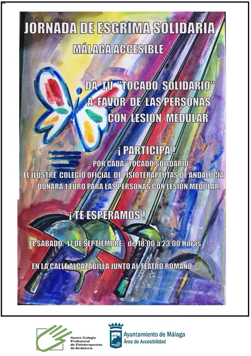 Más de 37 entidades se han unido para hacer realidad esta Jornada de Esgrima Solidaria ‘Málaga Accesible’: Ayuntamiento de Málaga, Colegio Oficial de Fisioterapeutas de Andalucía, Diputación de Málaga, Delegación de Cultura de la Junta de Andalucía, Aspaym (Asociación de personas con lesión medular y otras discapacidades físicas de Málaga), Antonio Casares Palma (autor del cartel), Club Esgrima Málaga Ciudad Jardín, Club Esgrima Fuengirola, Asociación Deportiva Jerónimo de Carranza, Club Sala de Armas Europea, Obra Social de Unicaja o la EMT.