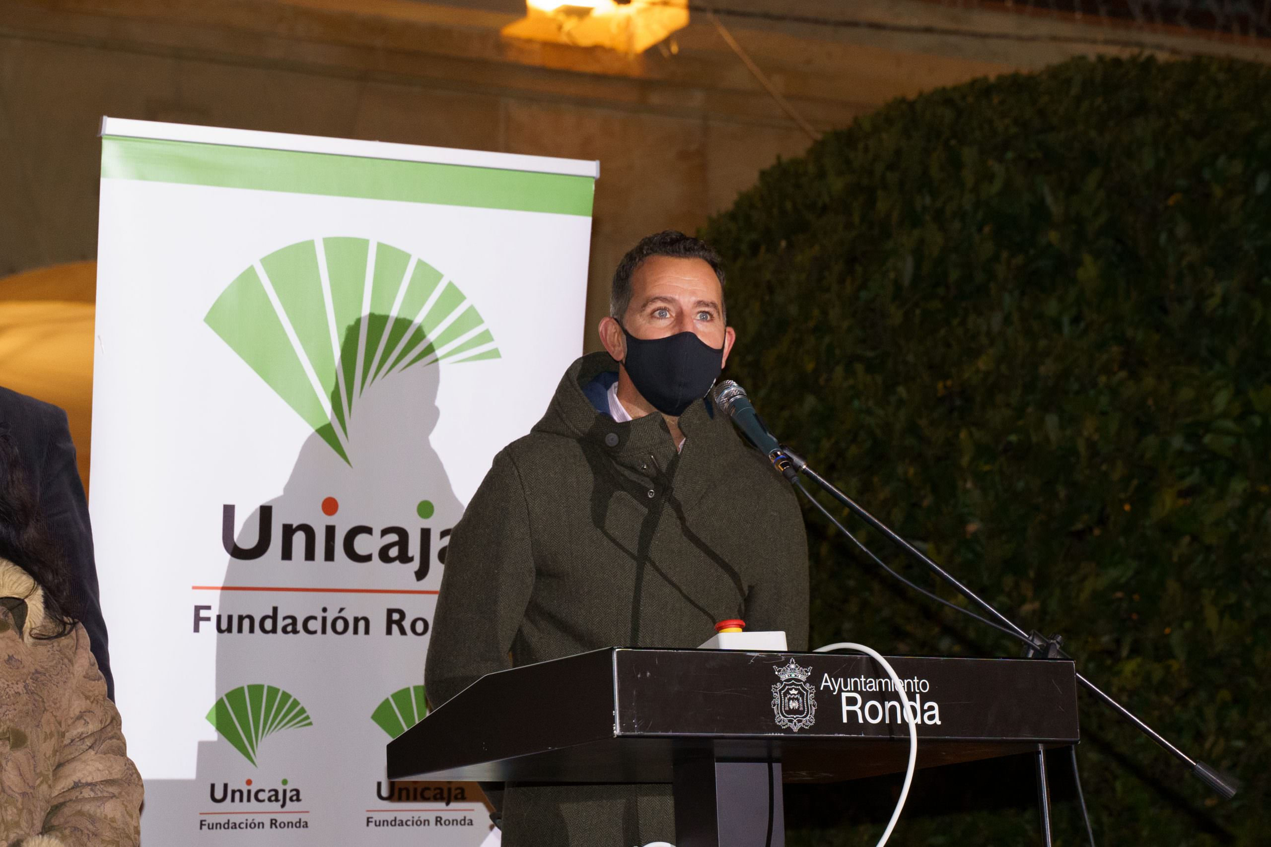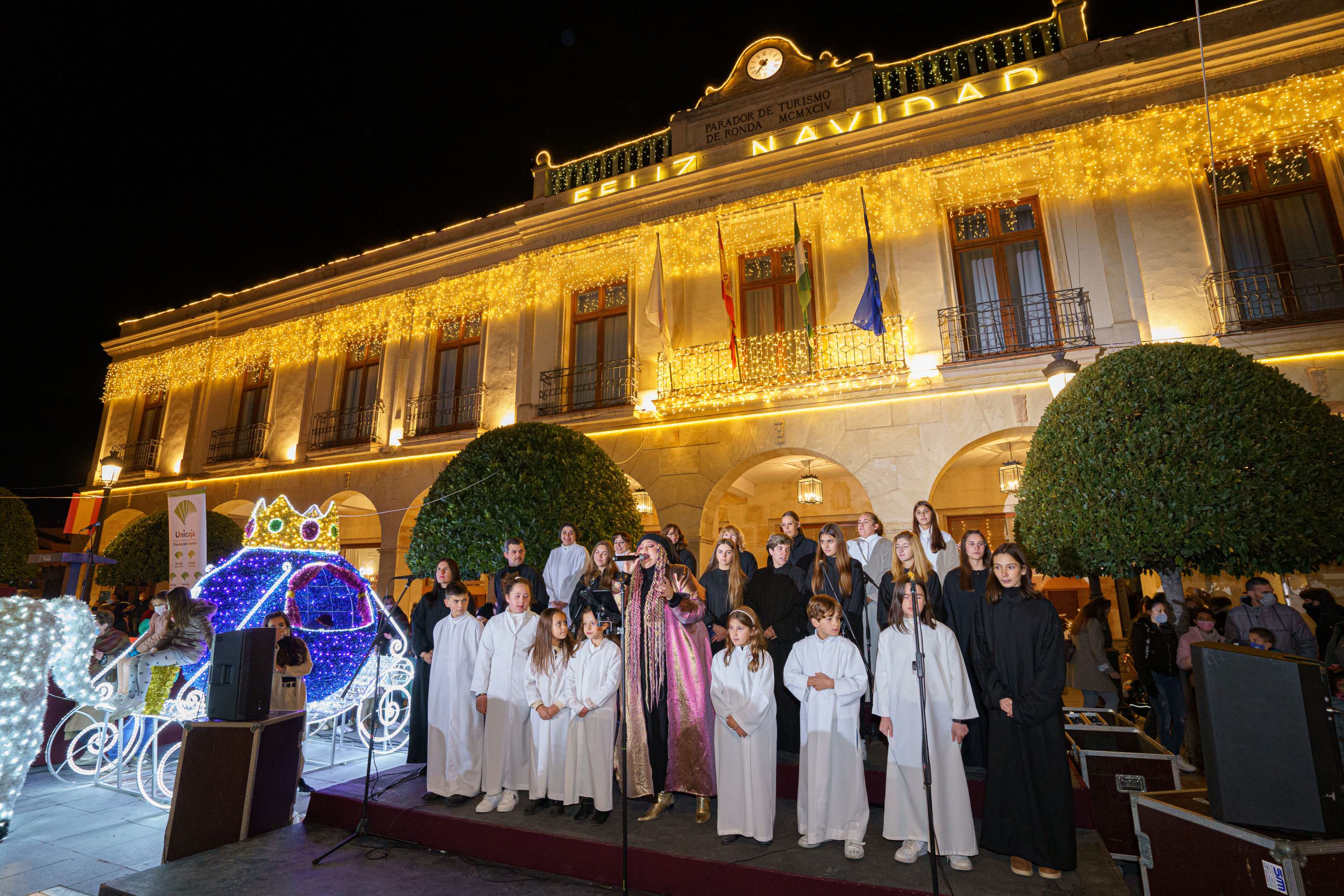 Las luces de Navidad de Ronda se han encendido este viernes por la noche en un gran acto celebrado en la Plaza de España, organizado por el Ayuntamiento y con el patrocinio de la Fundación Unicaja Ronda. El acto ha contado con la presencia de Manuel Dorado, responsable de Deporte, Ocio, Tiempo Libre y Medioambiente de la Fundación Unicaja, junto a diferentes autoridades y con la entrañable compañía de los Reyes Magos y los pajes reales, además de la Cartera Real y un pequeño Belén, que han desfilado por un gran escenario montado para la ocasión, donde hubo actuaciones musicales a cargo de un grupo de gospel.