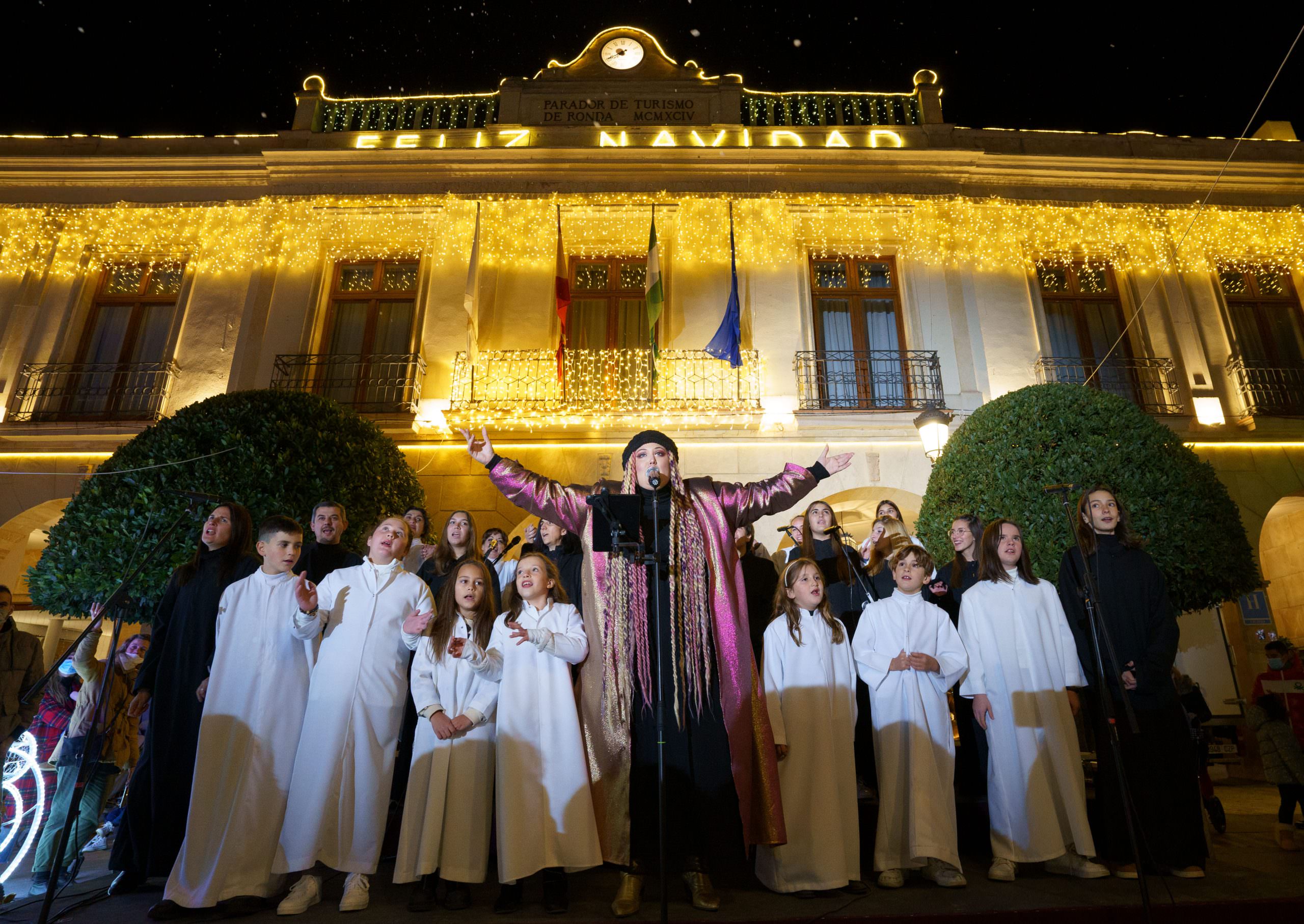 La Plaza de España se llenó de ilusión para proceder al primer gran acto de la Navidad en Ronda, que cuenta con una gran iluminación, con más de medio millón de puntos de luz LED y calles engalanadas para la ocasión. Los asistentes al acto de encendido pudieron disfrutar incluso de una gran nevada artificial al final del acto, que hizo las delicias de los más pequeños.