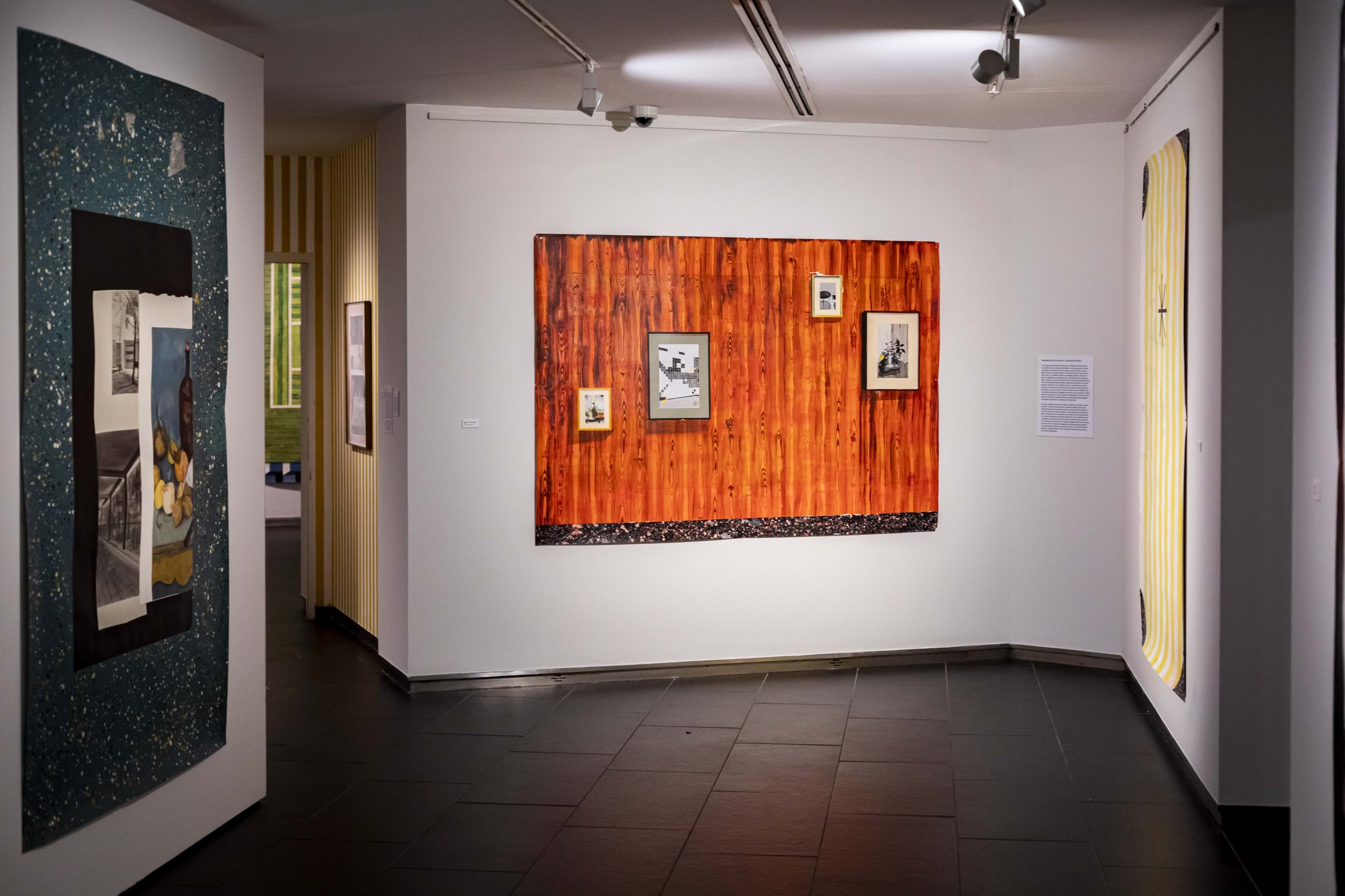 La muestra cuenta con dos grandes instalaciones, una de telas y otra de cerámicas, y se divide en cuatro secciones o grandes ejes temáticos que giran en torno a la idea de viaje, la música, la memoria personal y obsesiones entrecruzadas: ‘Paraíso, evasión (el viaje)’, ‘Fragmentos (zoom-in), cuasi-bodegones y música’, ‘Memoria familiar: Los Pencales’ y ‘Obsesiones entrecruzadas: tenis, moda y Roma’. El recorrido se cierra con una videocreación.