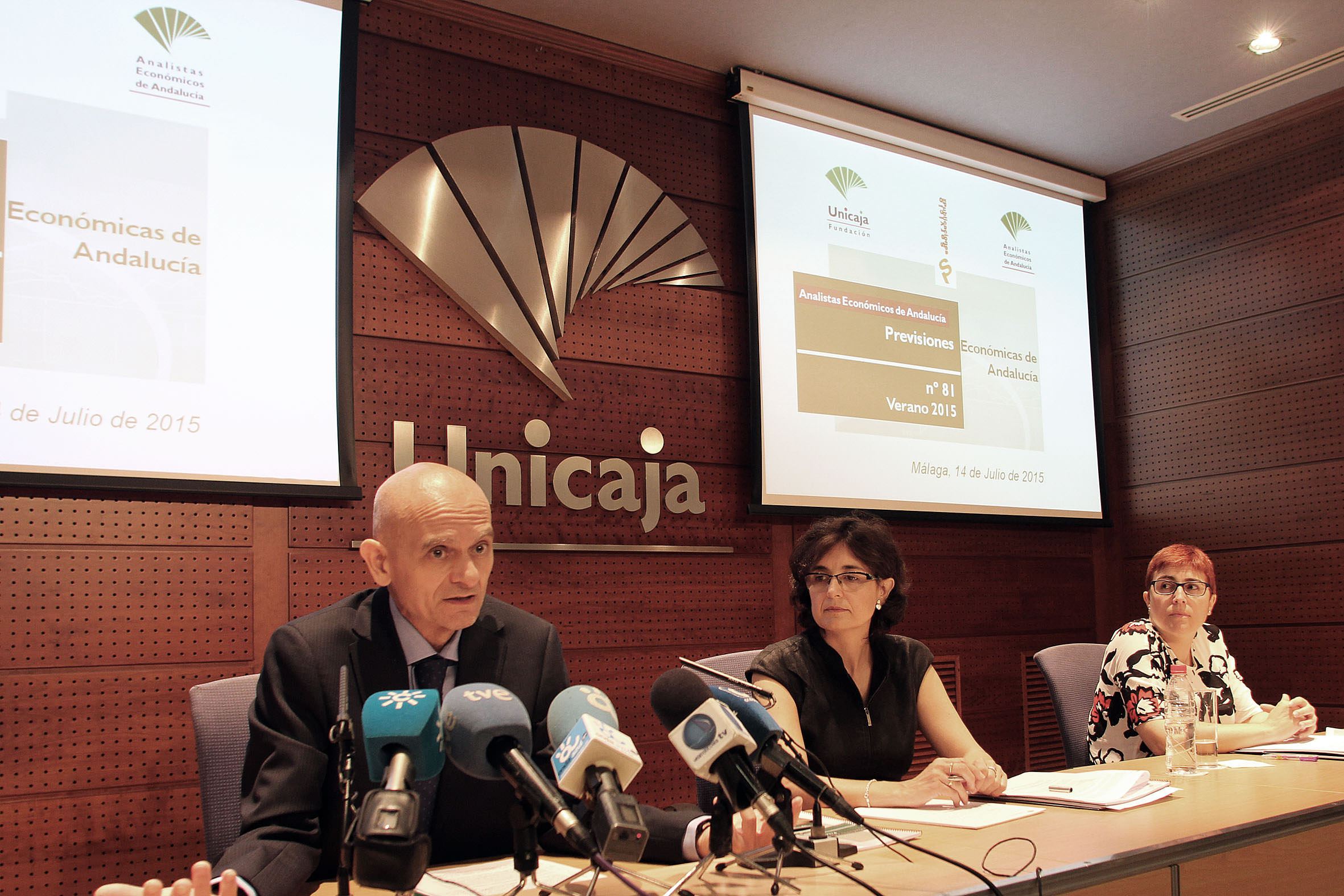 Analistas Económicos de Andalucía, sociedad de estudios del Grupo Unicaja, ha presentado hoy el último número (81) de su publicación trimestral “Previsiones Económicas de Andalucía”, correspondiente a verano 2015. En este Informe, en el que periódicamente se realiza un análisis de la evolución reciente de las economías internacional y nacional, de Andalucía y de sus provincias, se incluyen las previsiones para 2015 relativas al crecimiento económico y sus componentes, así como a las principales variables del mercado de trabajo para España y Andalucía, junto con estimaciones y perspectivas de crecimiento para las provincias andaluzas.