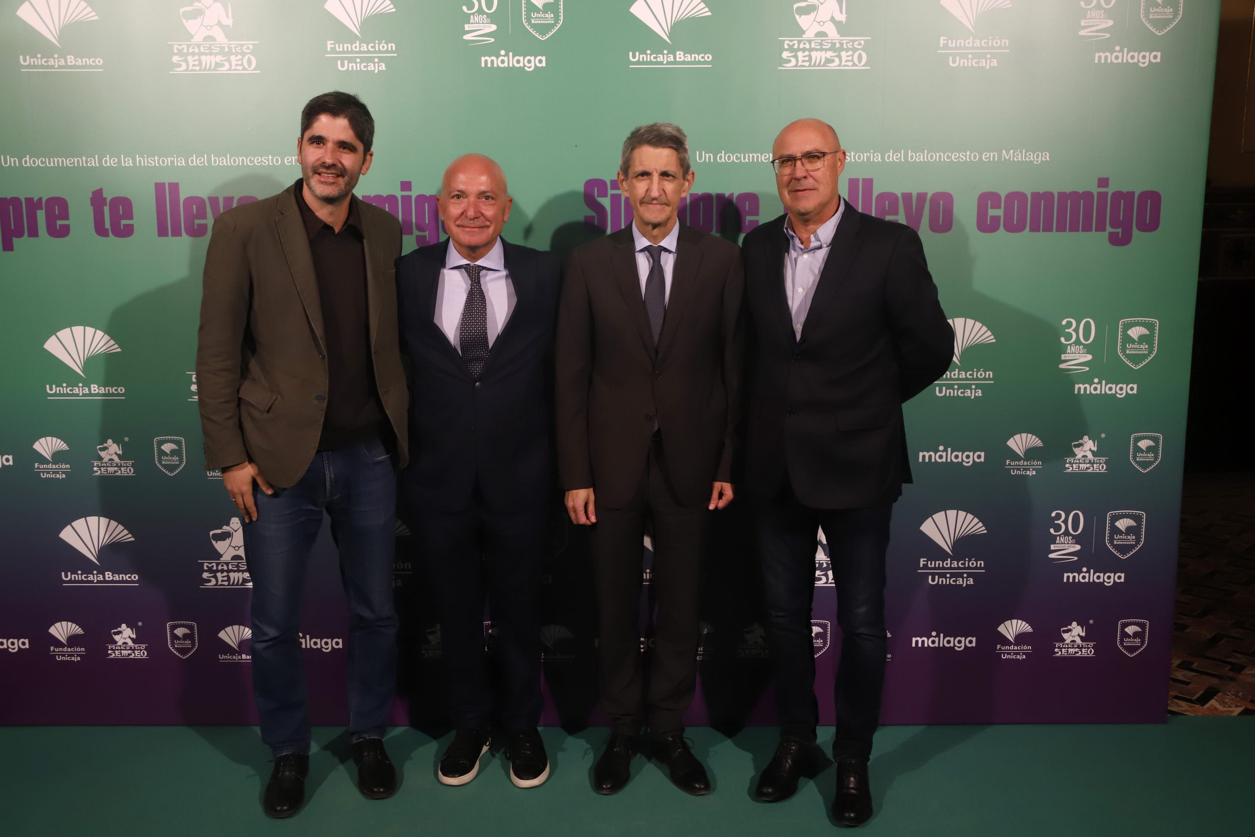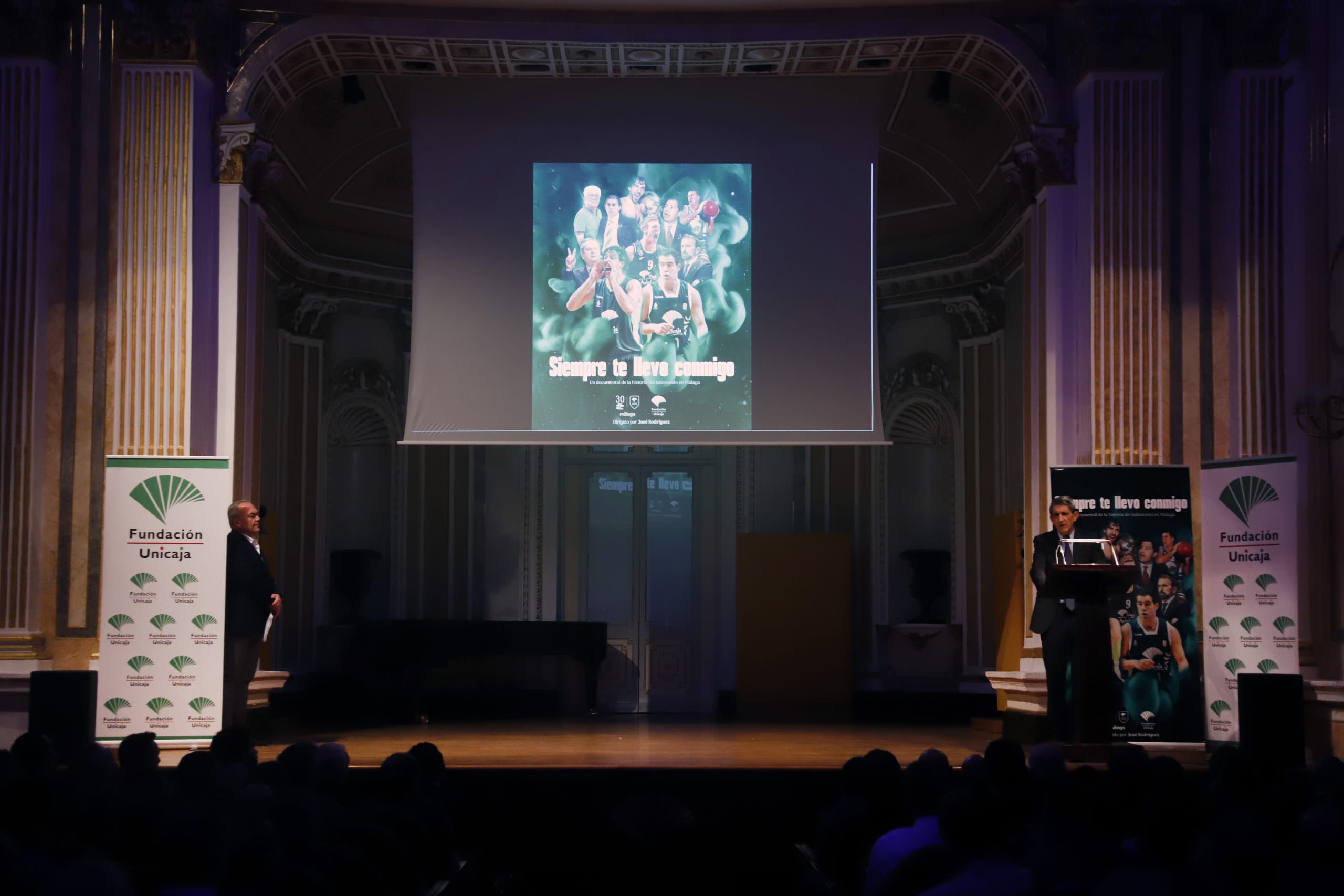 La Sala Unicaja de Conciertos María Cristina acogió anoche la presentación del documental ‘Siempre te llevo conmigo’, que hace un repaso a la historia del Unicaja Baloncesto desde sus inicios hasta la actualidad, con el testimonio de los principales protagonistas. La Fundación Unicaja ha patrocinado esta película dirigida por Jose Rodríguez y realizada por la productora malagueña Maestro Semseo.