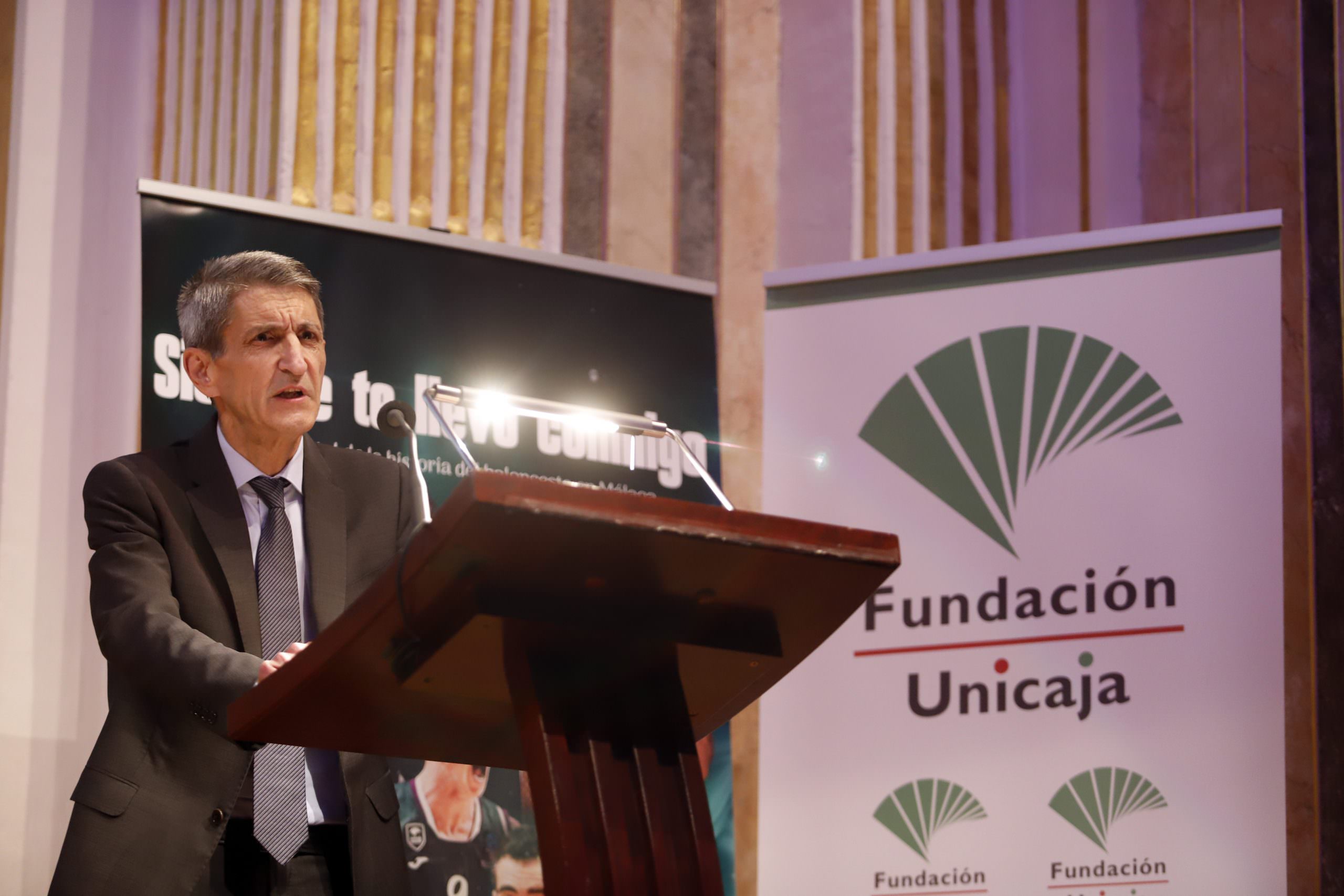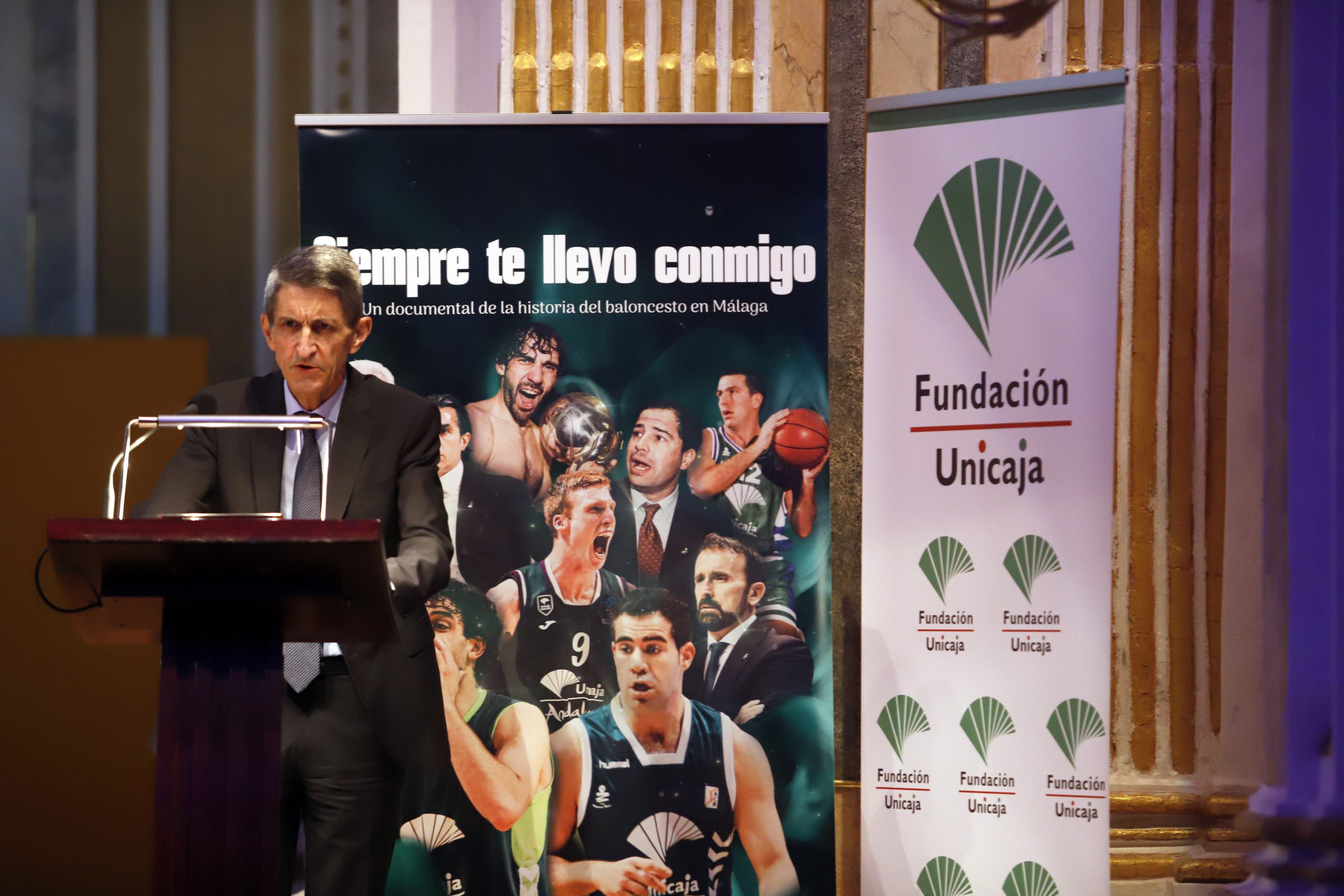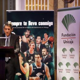 El presidente de la Fundación Bancaria Unicaja, José M. Domínguez, intervino en la presentación del documental junto al presidente del Unicaja Baloncesto, Antonio Jesús López Nieto. El acto también contó con la asistencia de directivos y patronos de la Fundación Unicaja.