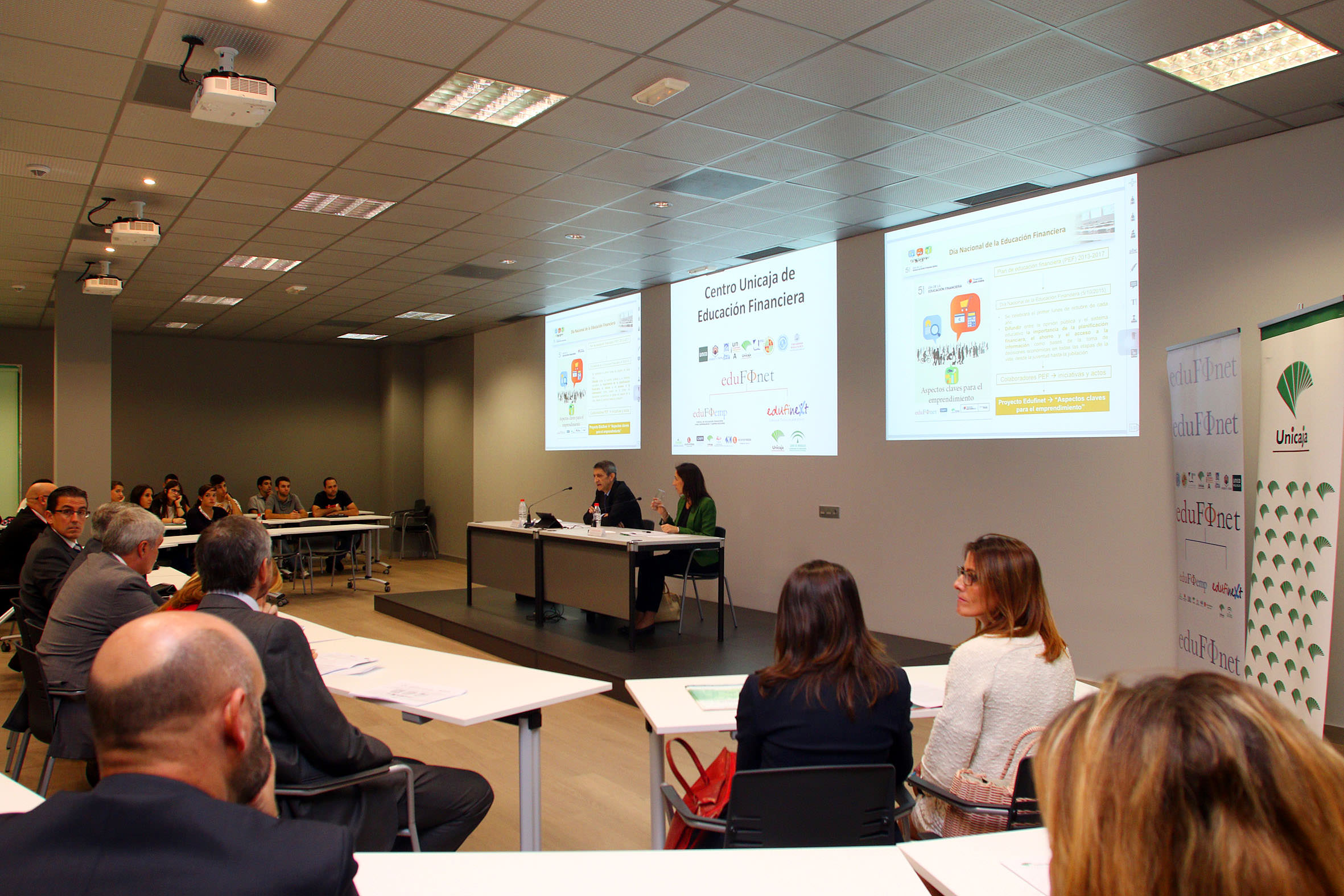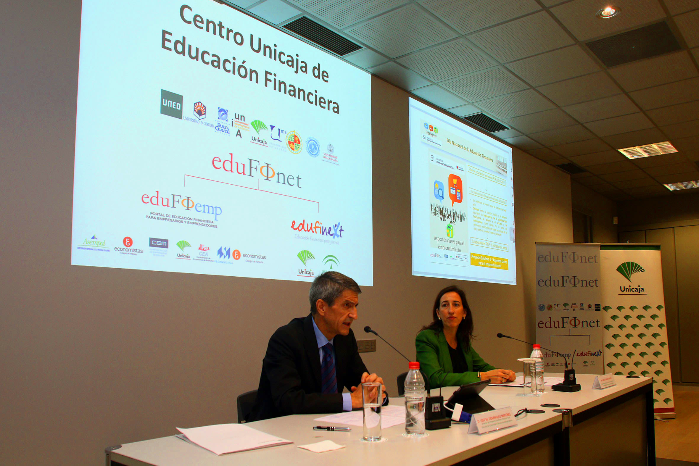 Unicaja celebra hoy el primer Día de la Educación Financiera, una jornada promovida con carácter nacional por el Plan de Educación Financiera que impulsa la CNMV, el Banco de España, el Tesoro Público y la Dirección General de Seguros y Pensiones, y que desde hoy tendrá lugar cada año el primer lunes de octubre. Así, con motivo del primer Día de la Educación Financiera, el Proyecto Edufinet de la Fundación Bancaria Unicaja ha organizado hoy en Málaga, con la colaboración de la Confederación de Empresarios de Málaga (CEM), y con la asistencia de un centenar de personas, una jornada gratuita sobre los “Aspectos claves para el emprendimiento”, dirigida a empresarios, emprendedores y autónomos, además de a la ciudadanía en general interesada en la creación de empresas. Asimismo, representantes del Proyecto de educación financiera Edufinet de Unicaja, participan hoy en Madrid en el acto central de la celebración del I Día de la Educación Financiera en la sede del Banco de España, y que ha sido presentado por el Gobernador del Banco de España, por el Secretario de Estado de Economía y por la Vicepresidenta de la CNMV.
