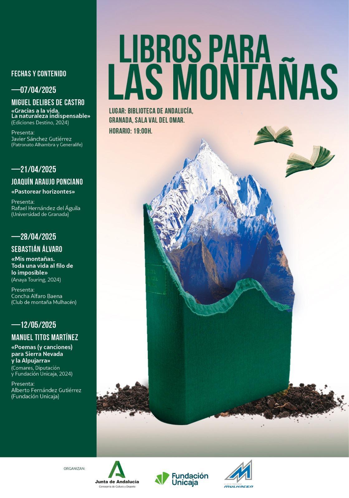 Fundación Unicaja patrocina el ciclo ‘Libros para las montañas’, que se celebrará en la Biblioteca de Andalucía de Granada a las 19:00 horas con entrada libre hasta completar aforo.