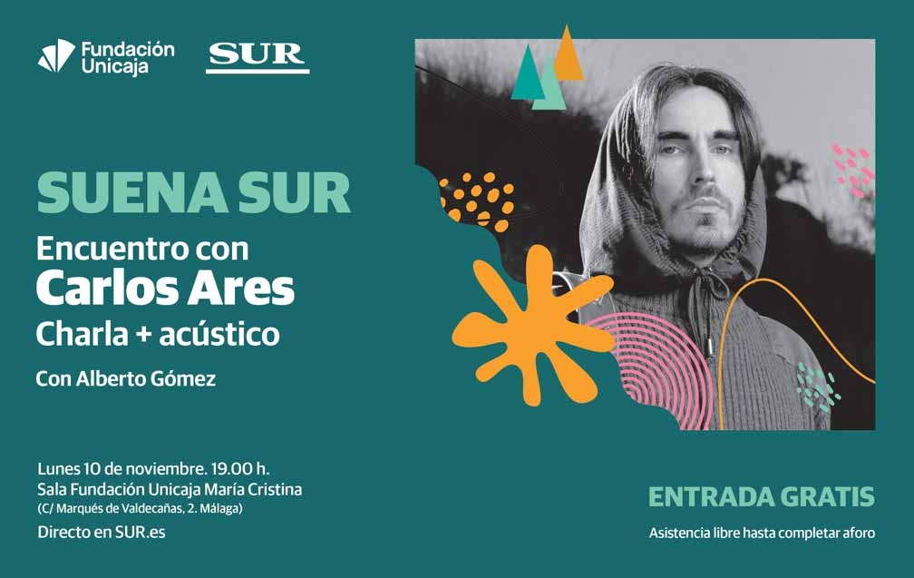 La Sala Fundación Unicaja María Cristina de Málaga acogerá el lunes 10 de noviembre a las 19:00 horas un encuentro y acústico con el compositor, productor y multinstrumentista Carlos Ares dentro del ciclo ‘Suena Sur’ que organiza Diario Sur con el patrocinio de Fundación Unicaja. La entrada es libre hasta completar aforo.