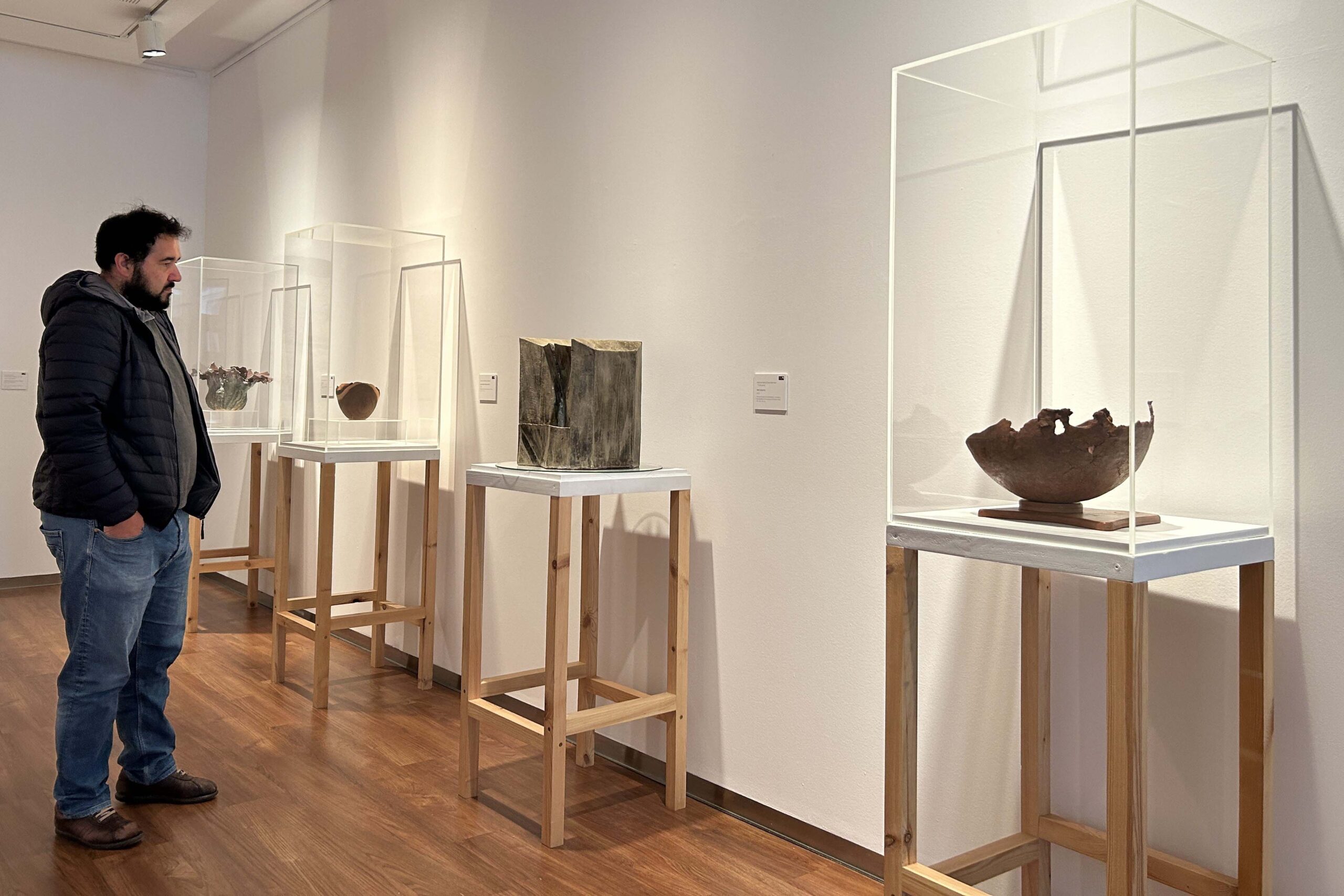 La exposición exhibe cerca de una treintena de piezas en seis disciplinas diferentes: cerámica, cuero, forja, talla en madera, tapices y textiles y orfebrería y joyería, categorías del premio, de reconocido prestigio por su trayectoria, dotación de premios y trascendencia. Así, se pueden contemplar los trabajos galardonados este año de: Alfonso Hidalgo Góngora y Laura Hidalgo Cruz por ‘Cruce de culturas’ (categoría Cerámica), José Antonio Pereira por ‘Soledad’ (categoría Cuero), Francisco Garrido por ‘Las alas del renacimiento que miran al sur’ (categoría Forja), Juan Manuel Molina por ‘Con razón’ (categoría Talla en madera), Ilia Mitxelena por ‘Velut umbra’ (categoría Orfebrería y joyería) y Laura Siles por ‘Iruten Har Nuzu. El ritual y el tejido, el canto y la reunión’ (categoría Tapices y textiles). También están presentes las obras ‘O Ser Dela’, de Pablo Rodríguez y ‘Rosetón gótico’ de Juan Carlos García, premios especiales Fundación Unicaja Jaén y Premio Jaén -vinculado a creadores nacidos o residentes en la provincia de Jaén- de esta edición.
